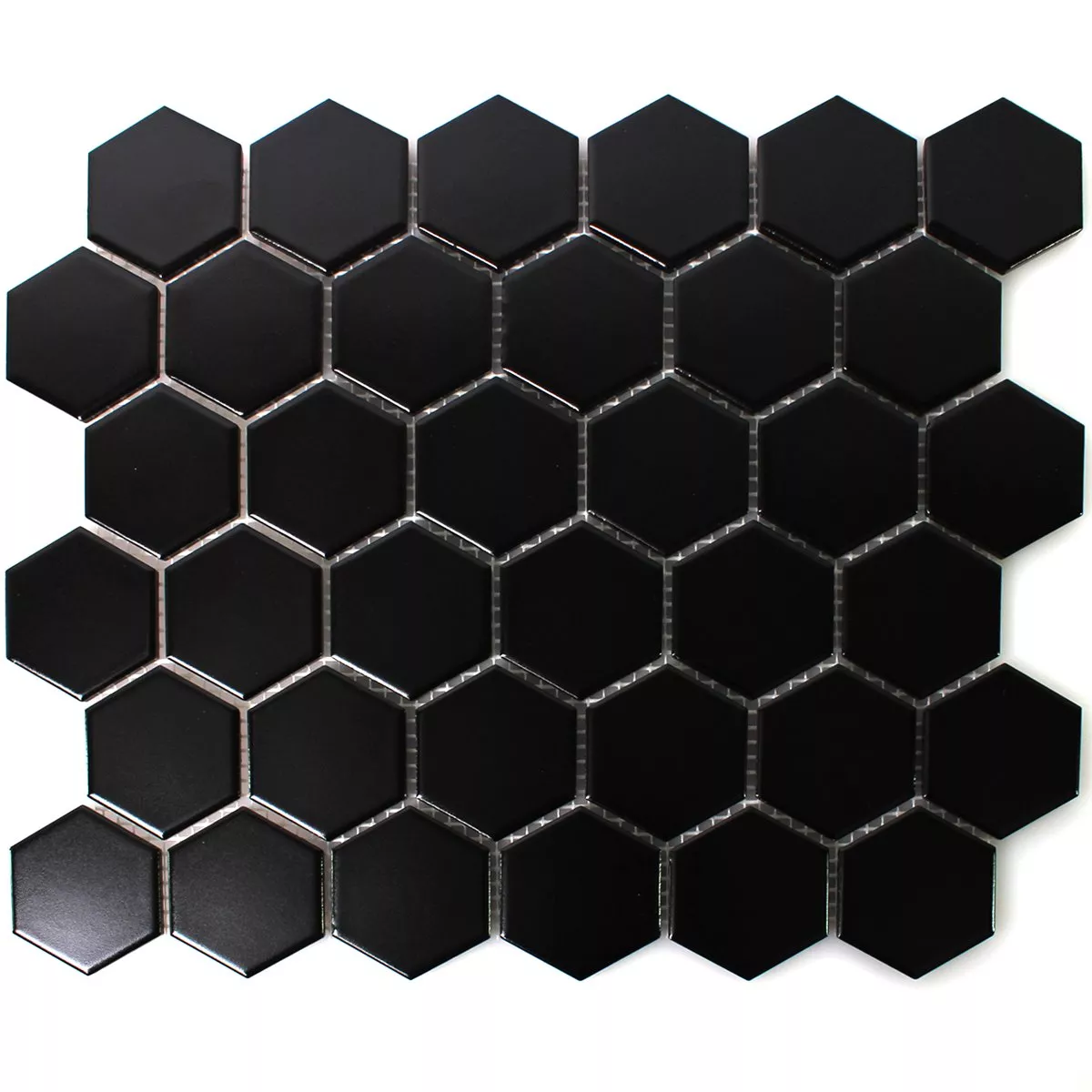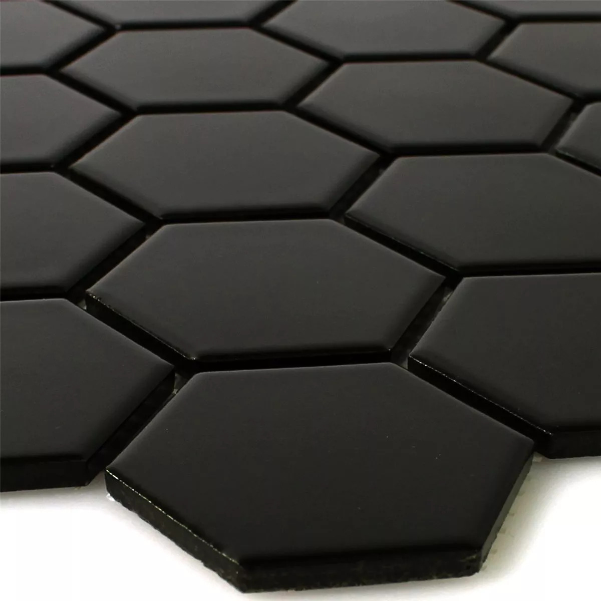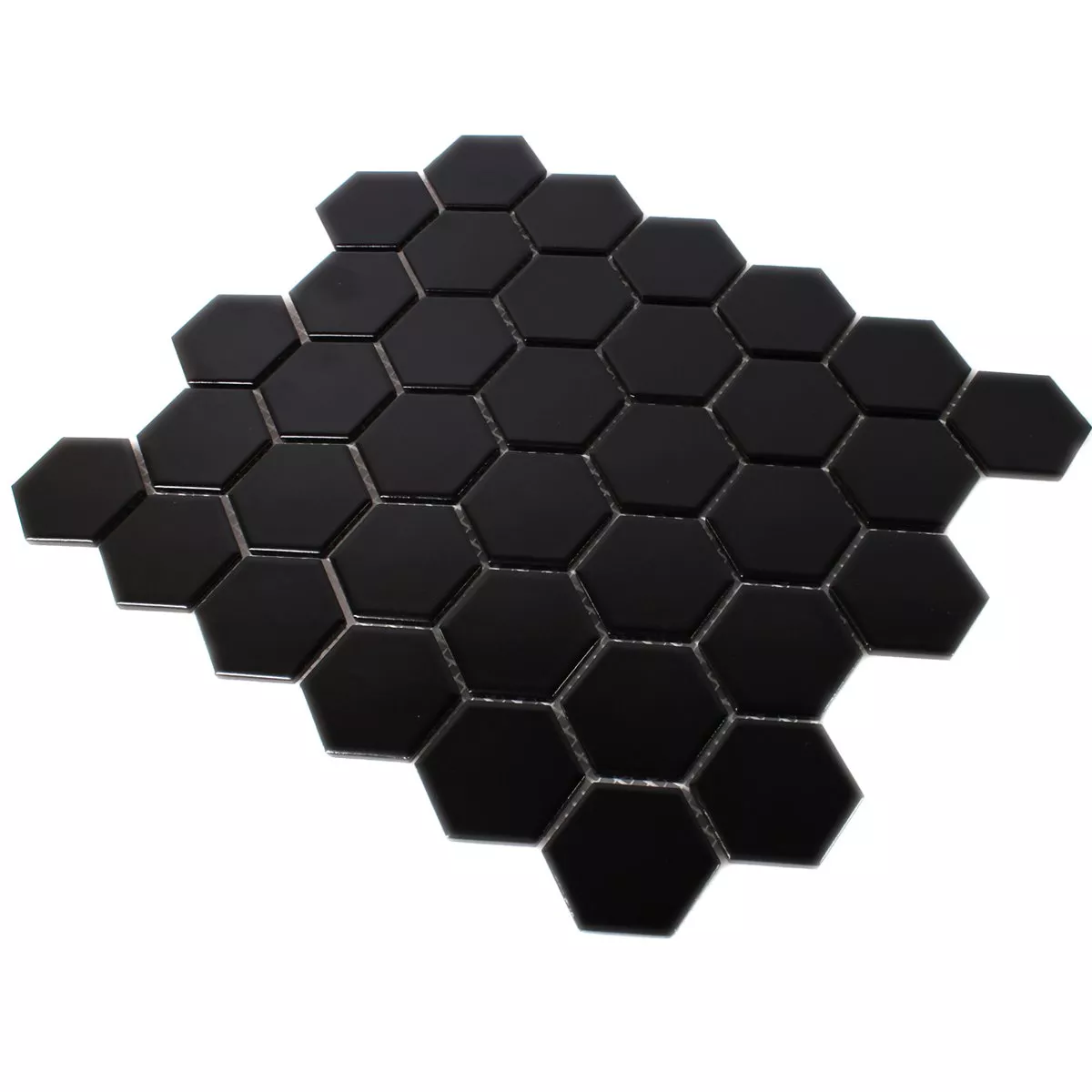 Keramik Mosaikfliesen Hexagon Salamanca Schwarz Matt H51