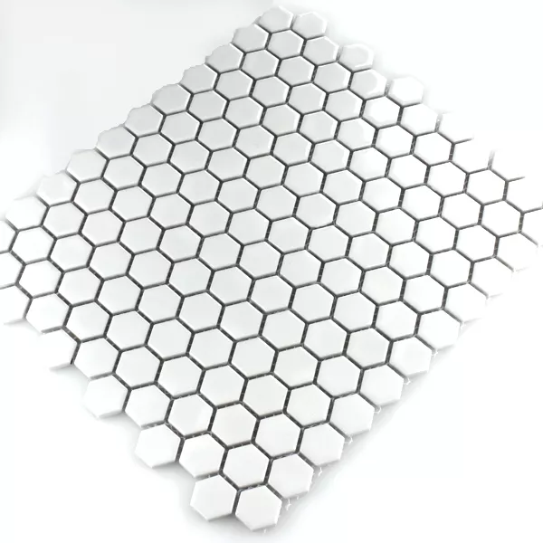 Keramik Mosaikfliesen Hexagon Salamanca Weiß Matt H23