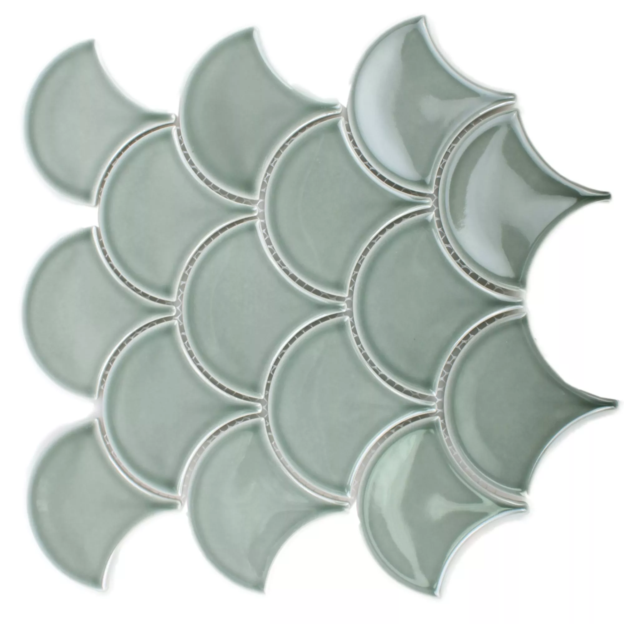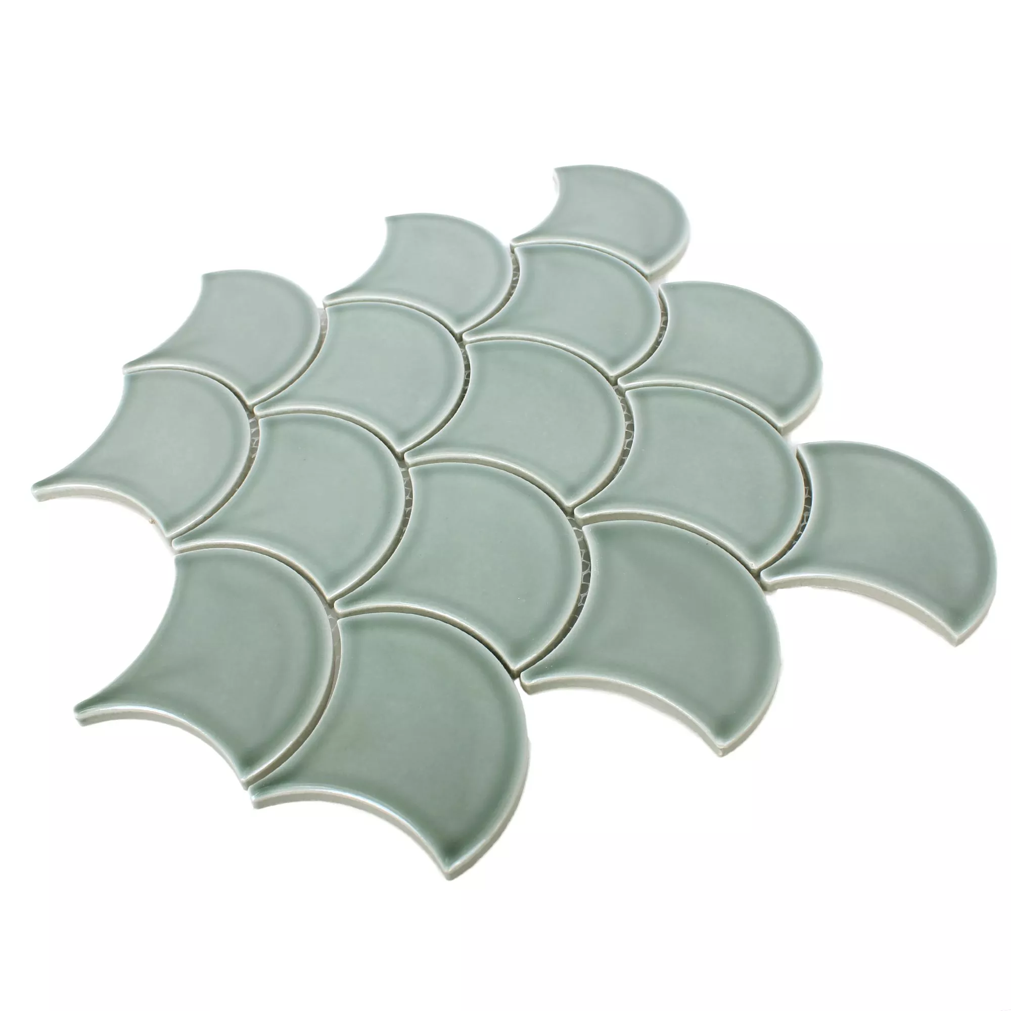 Die Keramik Mosaikfliesen Madison in der Farbe Grün bestechen durch ihre ungewöhnliche Form. Die Mosaikfliesen haben eine glänzende Oberfläche und werden aus Keramik gefertigt. Sie eignen sich besonders für den Innen-und Nassbereich und werden als Wandfliesen eingesetzt.