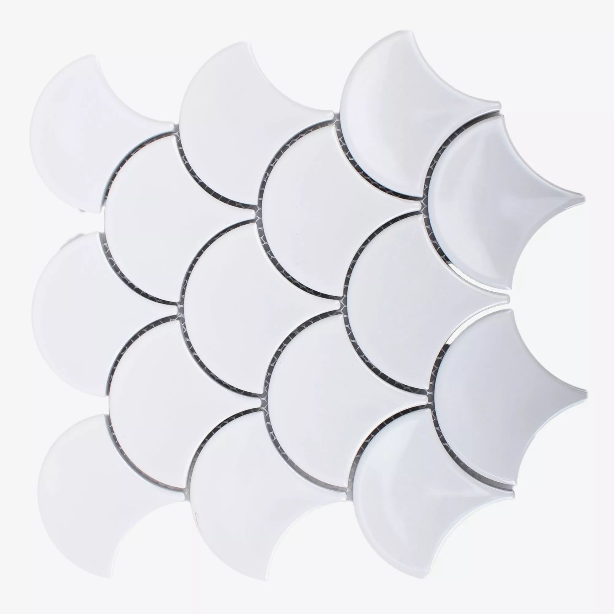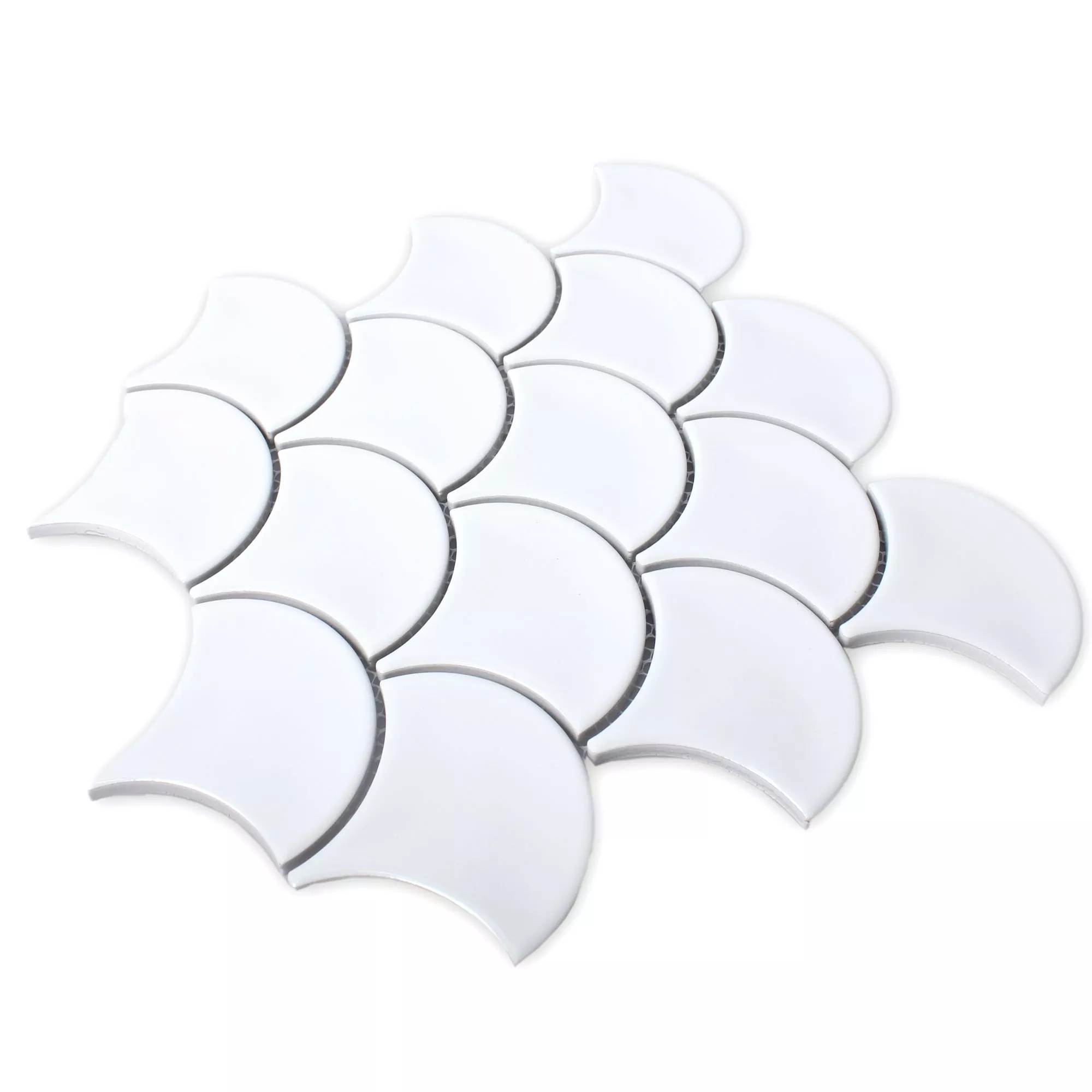 Die Keramik Mosaikfliesen Madison in der Farbe Weiß bestechen durch ihre ungewöhnliche Form. Die Mosaikfliesen haben eine glänzende Oberfläche und werden aus Keramik gefertigt. Sie eignen sich besonders für den Innen-und Nassbereich und werden als Wandfliesen eingesetzt.
