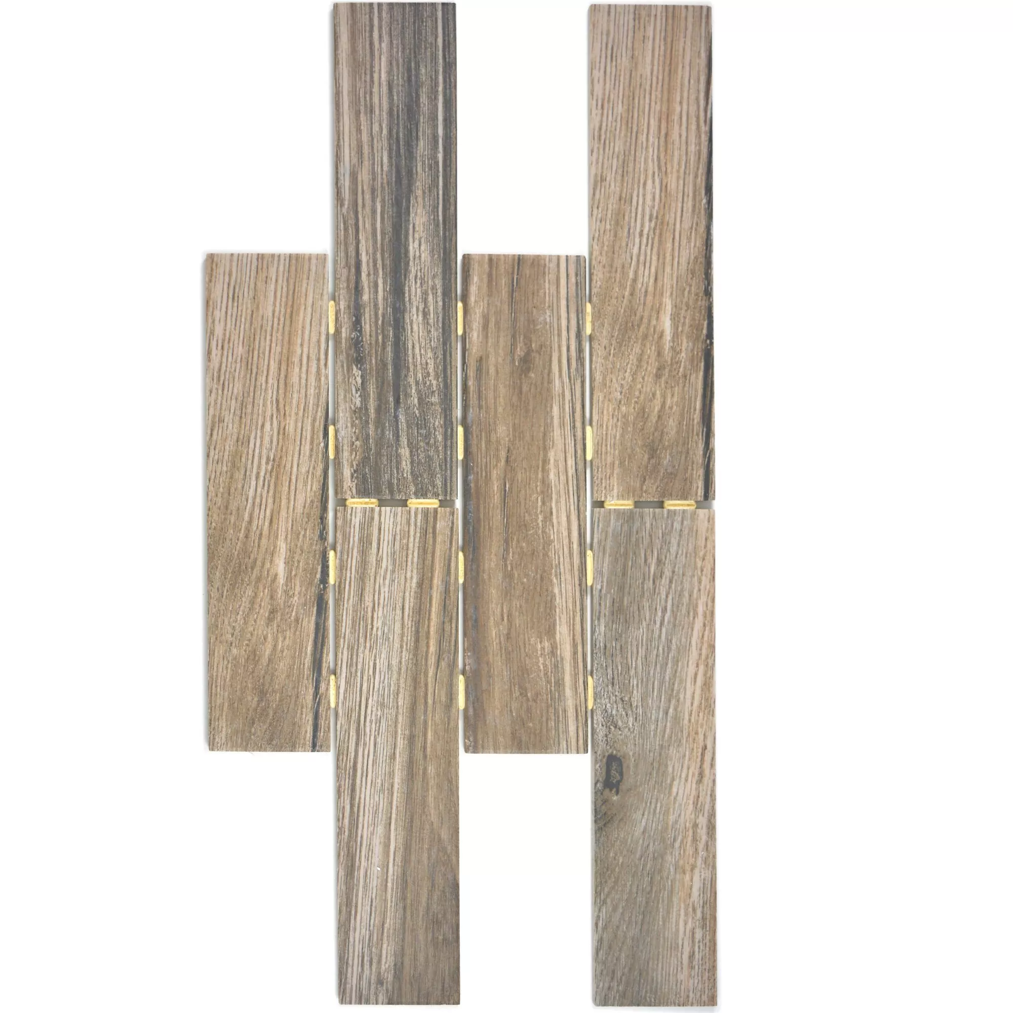 Die Fliese ist in einem rechteckigen Format von 60x240mm gestaltet und hat eine Stärke von 6mm. Jede Matte misst 25,2x36,7cm und deckt eine Fläche von 0,092m² ab. Ein Paket enthält 0,92m², was Ihnen ausreichend Material für Ihre Projekte bietet. Die Punktverklebung der Fliesen erleichtert die Verlegung und sorgt für eine präzise Platzierung.