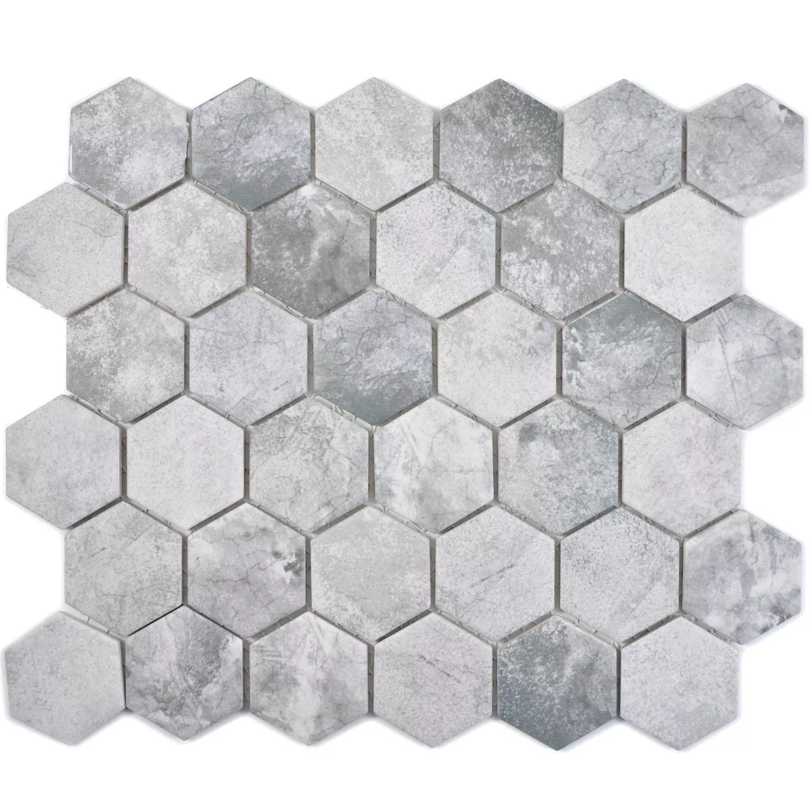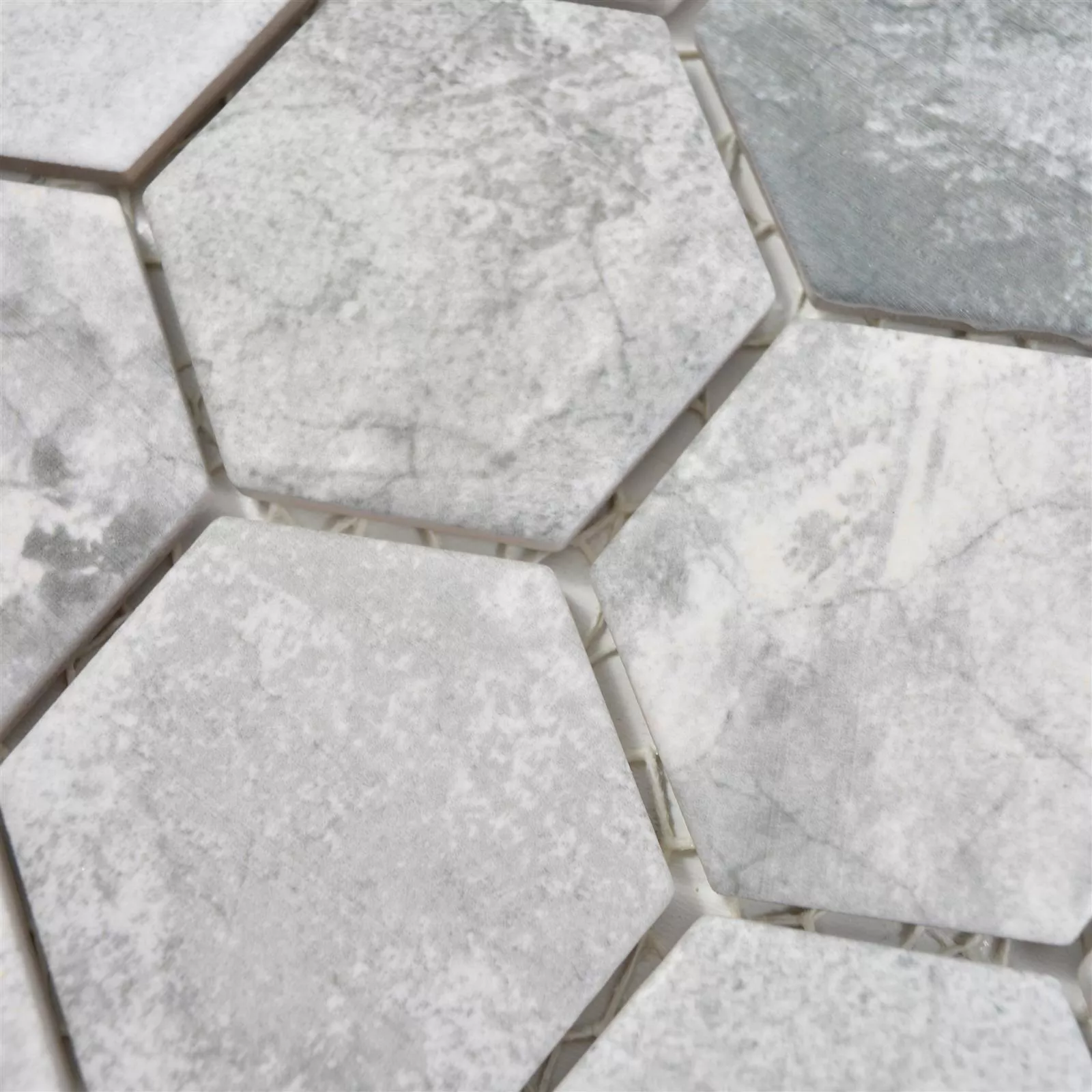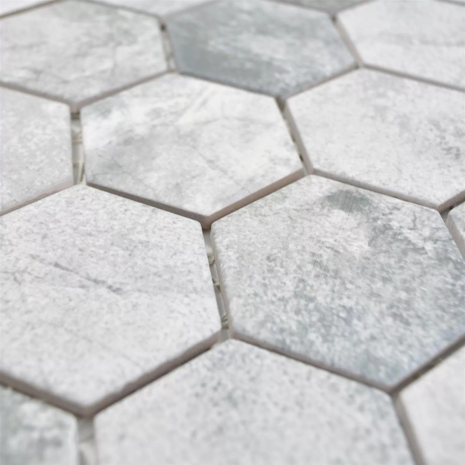 Keramikmosaik Comtessa Hexagon Zementoptik Hellgrau