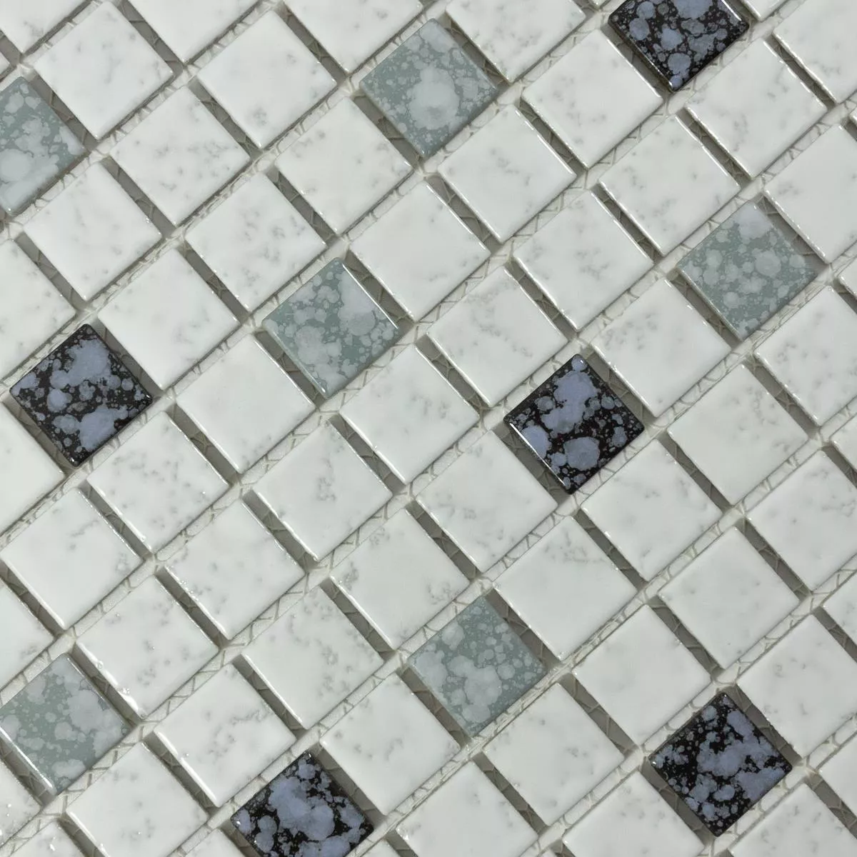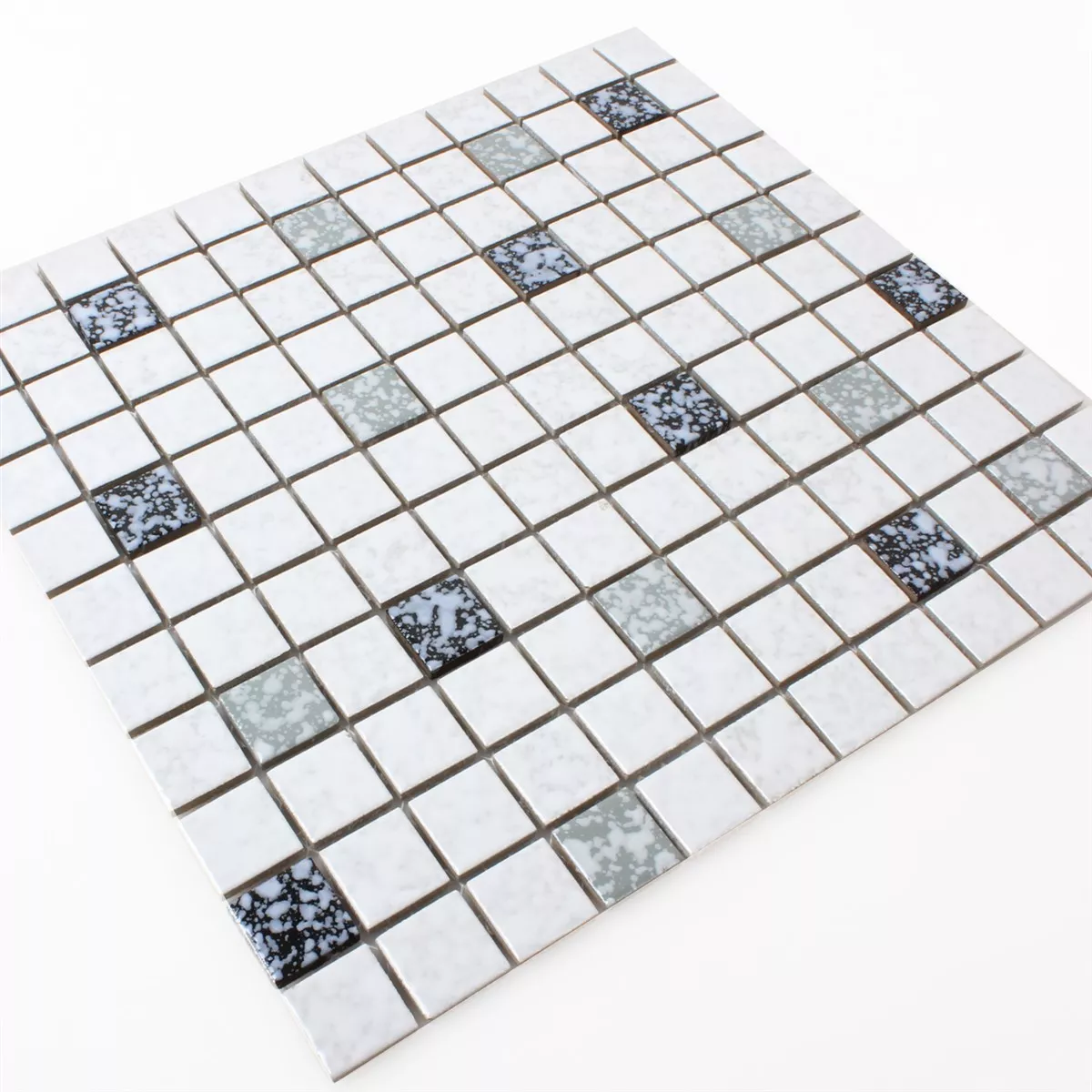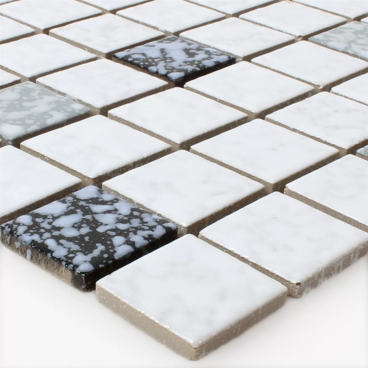 Keramikmosaik Fliesen Smila Weiß Schwarz Gehämmert