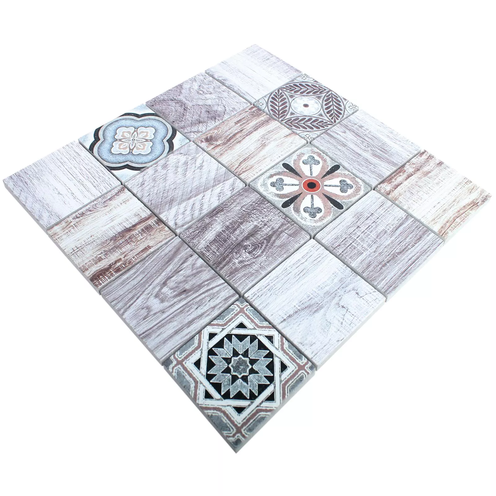 Mit dem kreativen Mix des Mosaiks Yaren gestalten Sie stilvoll Ihre Böden und Wände. Eine Mosaikmatte dieser Ausführung beinhaltet hellbraun getönte Fliesen mit unterschiedlicher, detailreicher Holzmaserung. Sie imitiert realitätsnah Holzdielen, sogar Astlöcher, Schnitte und Kerben im Holz werden wiedergegeben. Vier weitere Natursteine bilden das Highlight des Mosaiks. Sie sind mit unterschiedlichen Kachelmustern in klassischem Stil gestaltet. Schwarze, blaue und orange Farbtupfer in diesen Fliesen erweitern das an Holz orientierte Farbschema um lebendige Akzente. In der Anwendung ermöglichen die gleich großen Marmorfliesen dieser originellen Zusammenstellung ein einheitliches und gleichzeitig abwechslungsreiches Gesamtbild. Jede Fliese des Mix hat ein individuelles Oberflächenmuster, so dass sich Ihnen bei ihrer Anordnung die größtmögliche Freiheit für die Umsetzung Ihrer persönlichen Vorstellungen bietet.