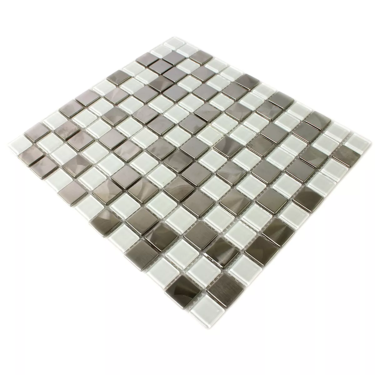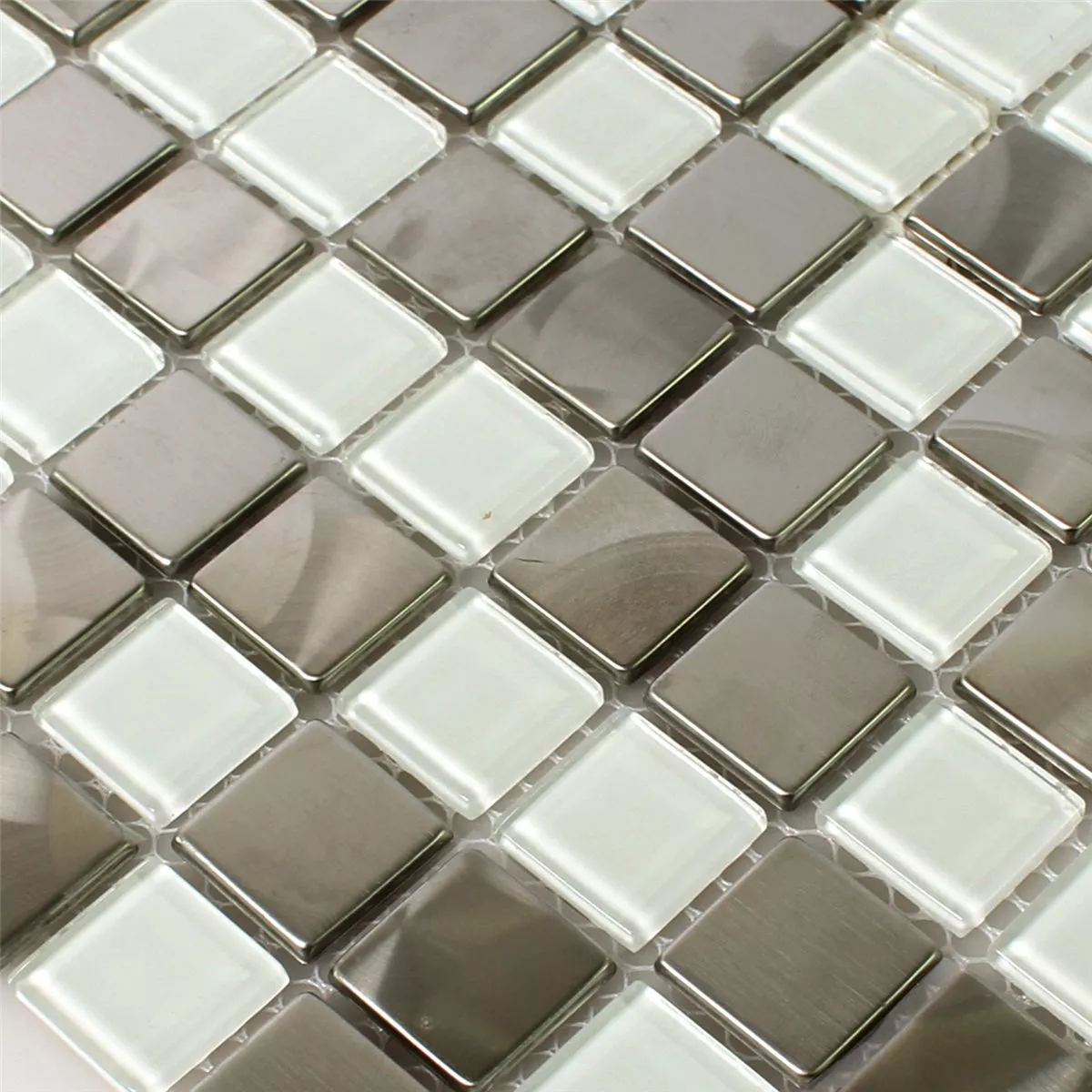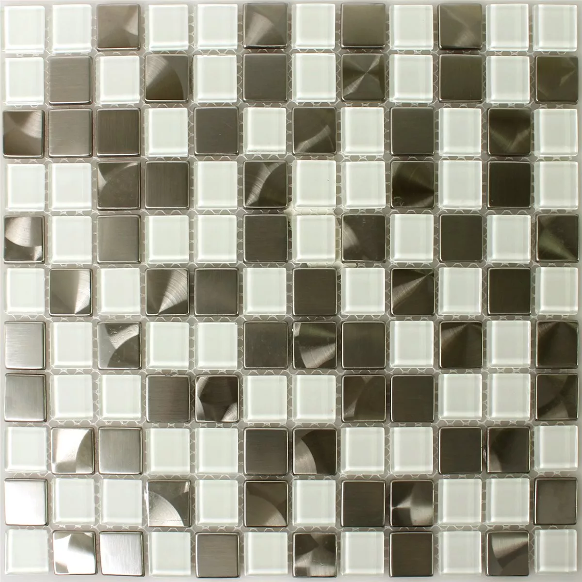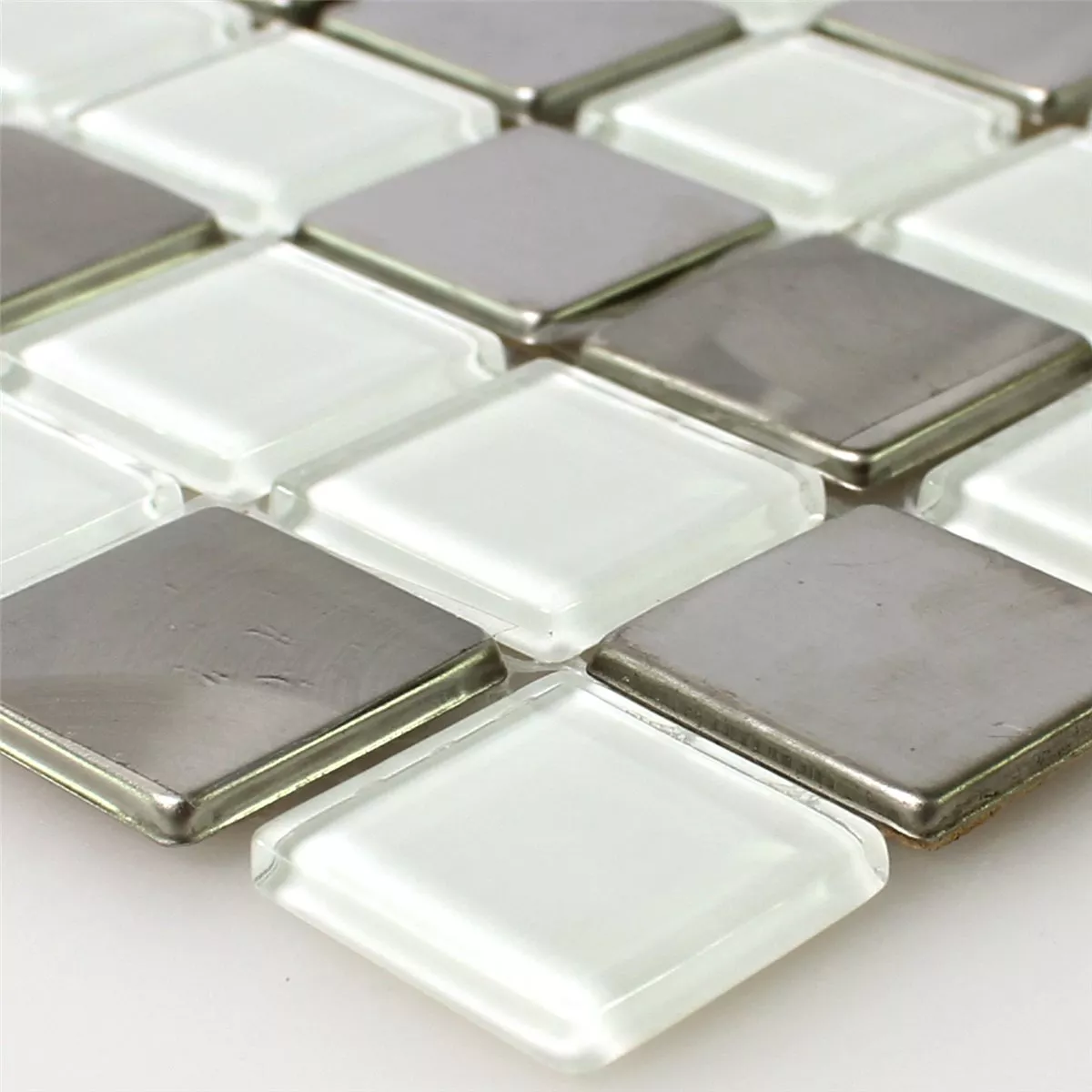 Glas Edelstahl Metall Mosaikfliesen Astoria Weiß Silber