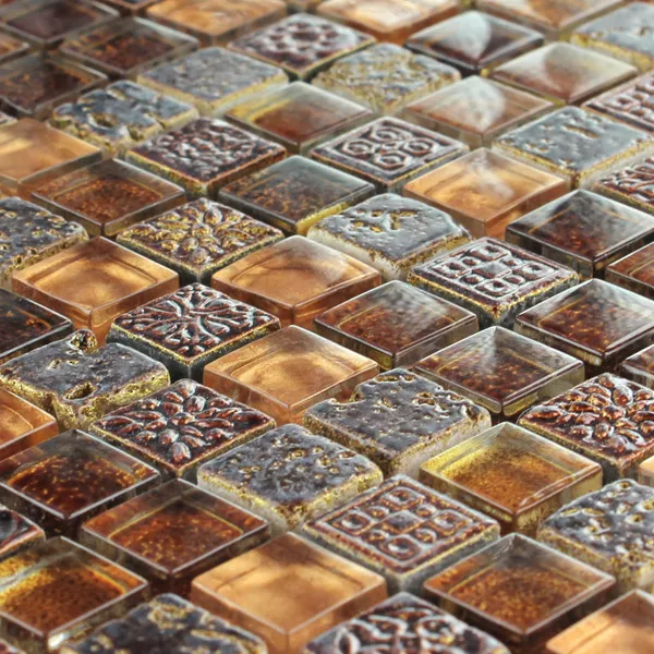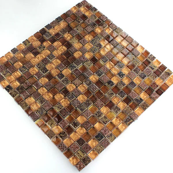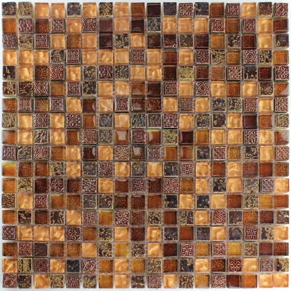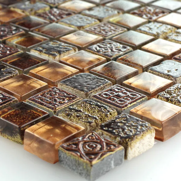 Mosaikfliesen Escimo Glas Naturstein Mix Braun Gold