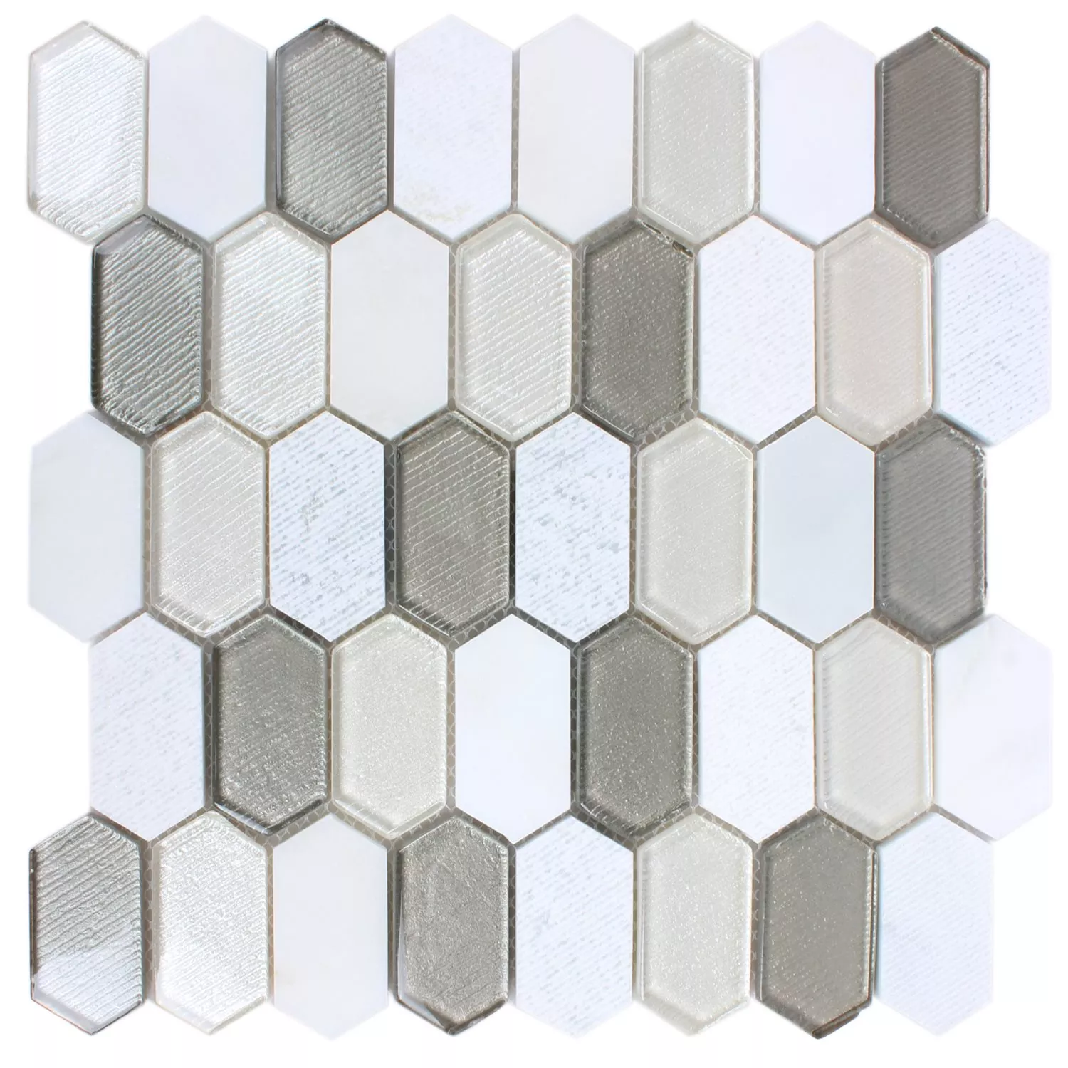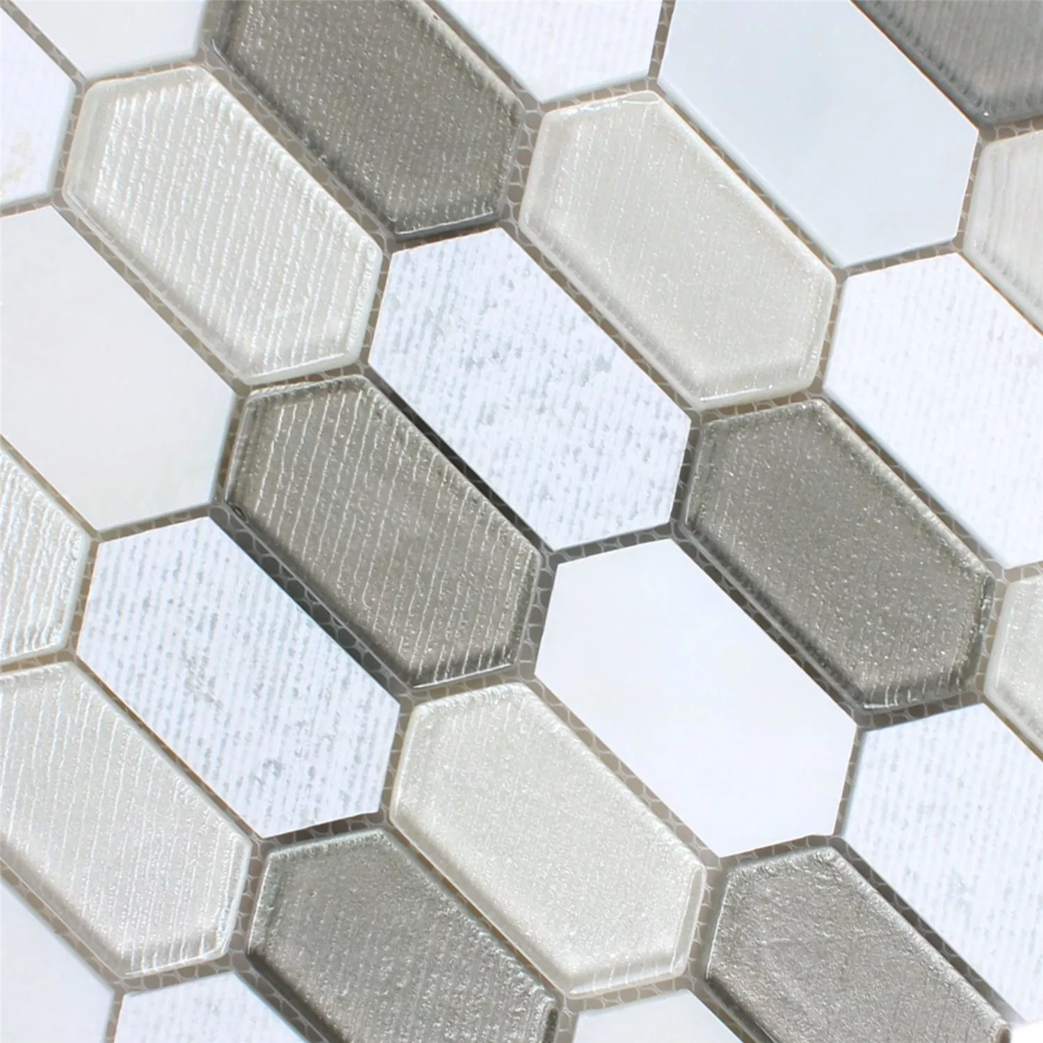 Mosaikfliesen Februata Hexagon Weiss Beige Grau