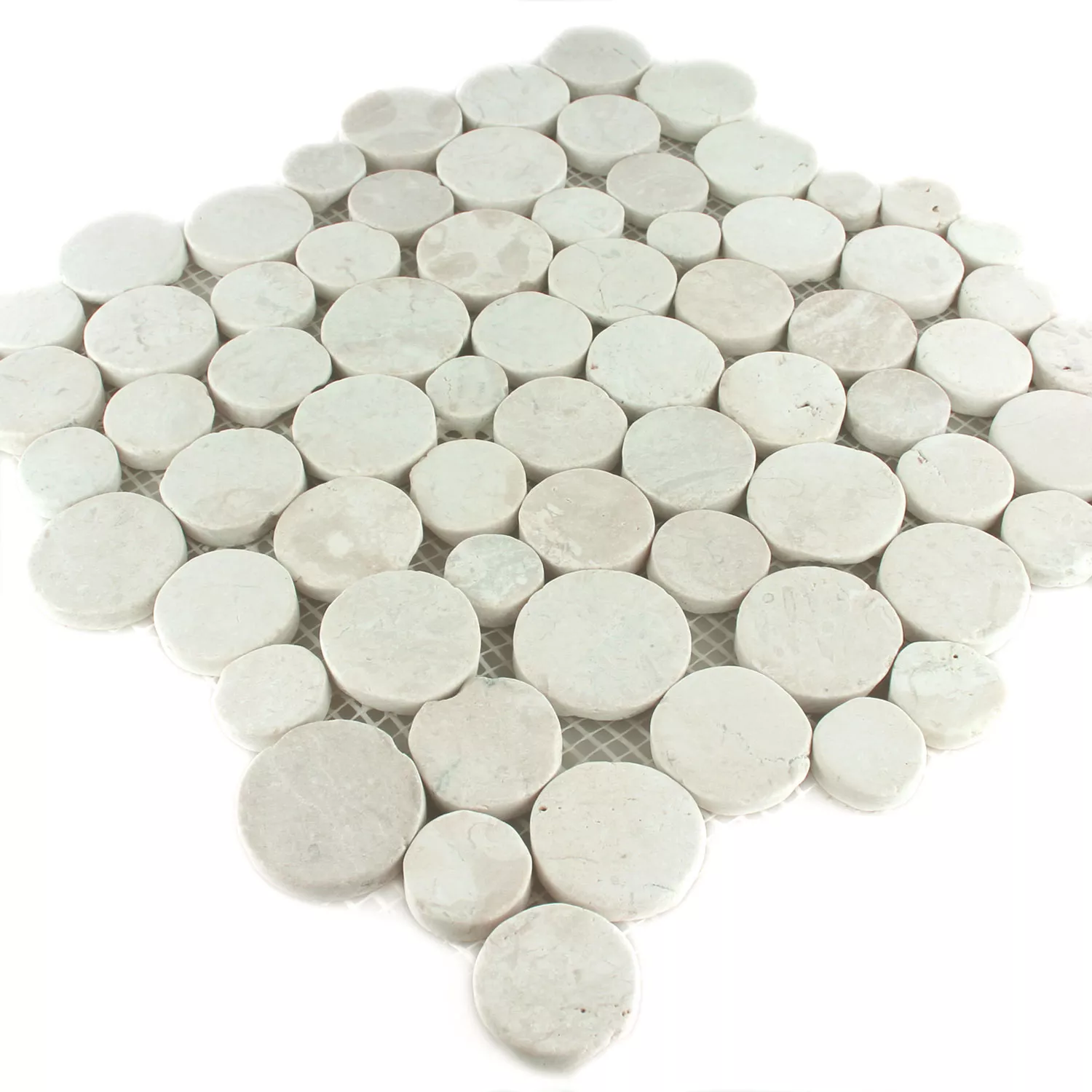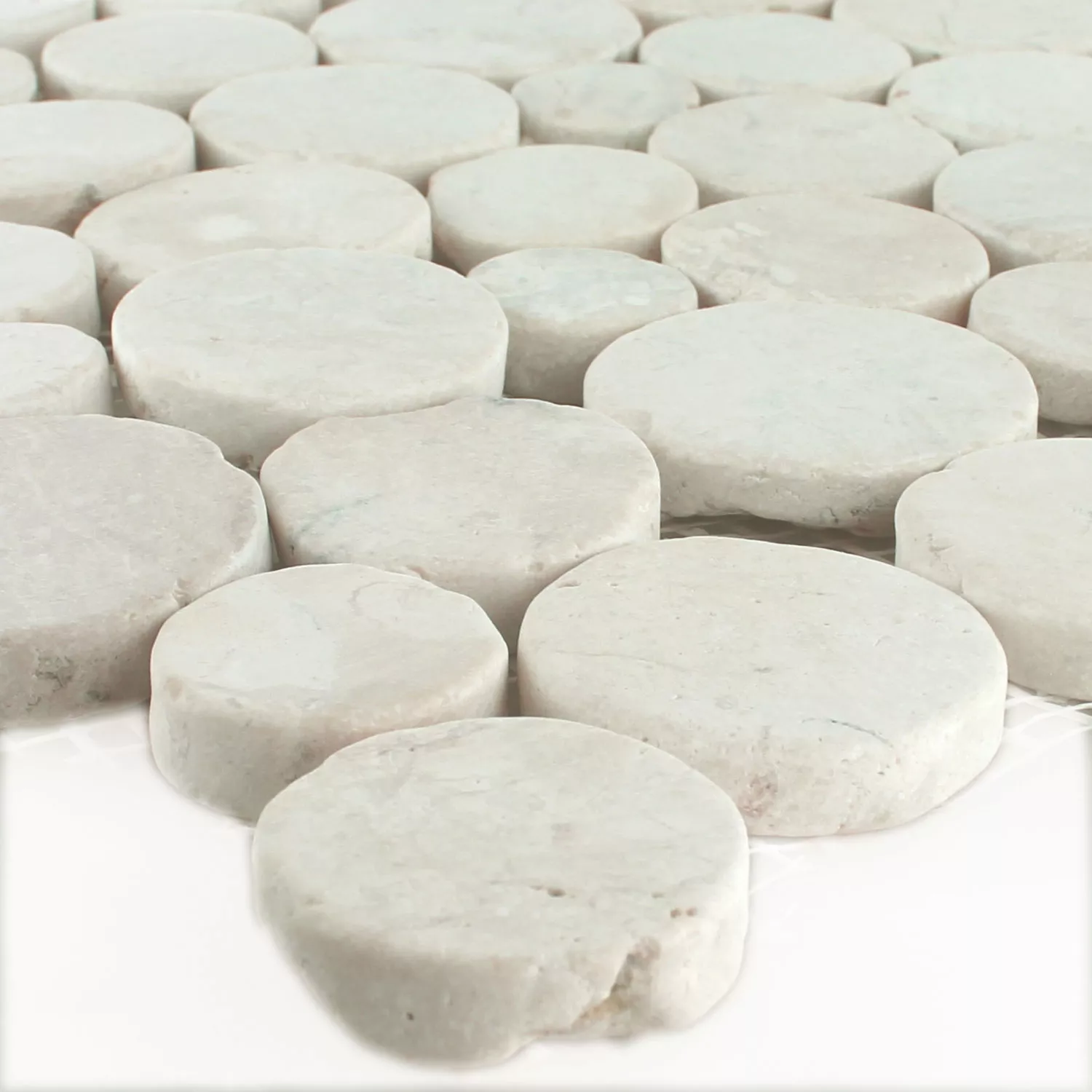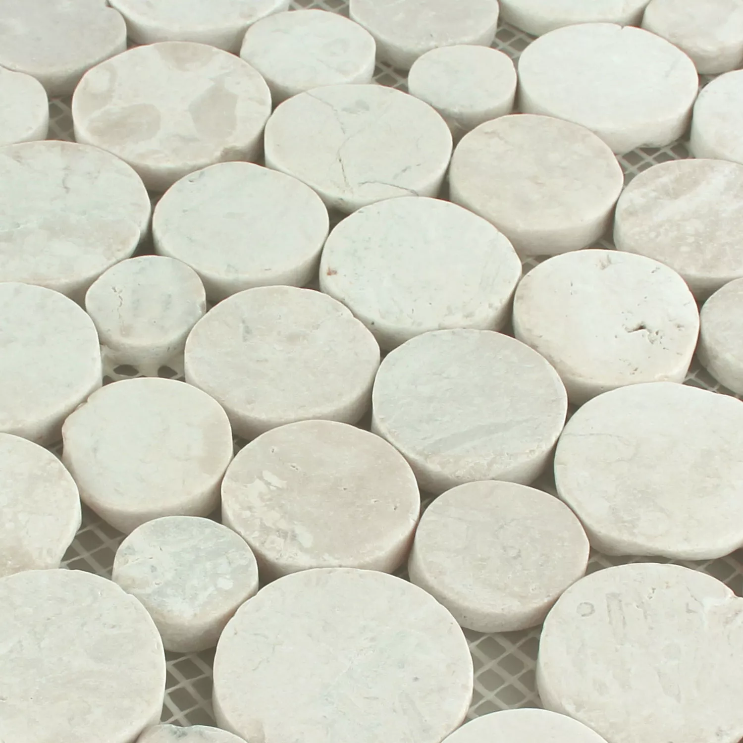Mosaikfliesen Flusskiesel Coin Rund Weiss