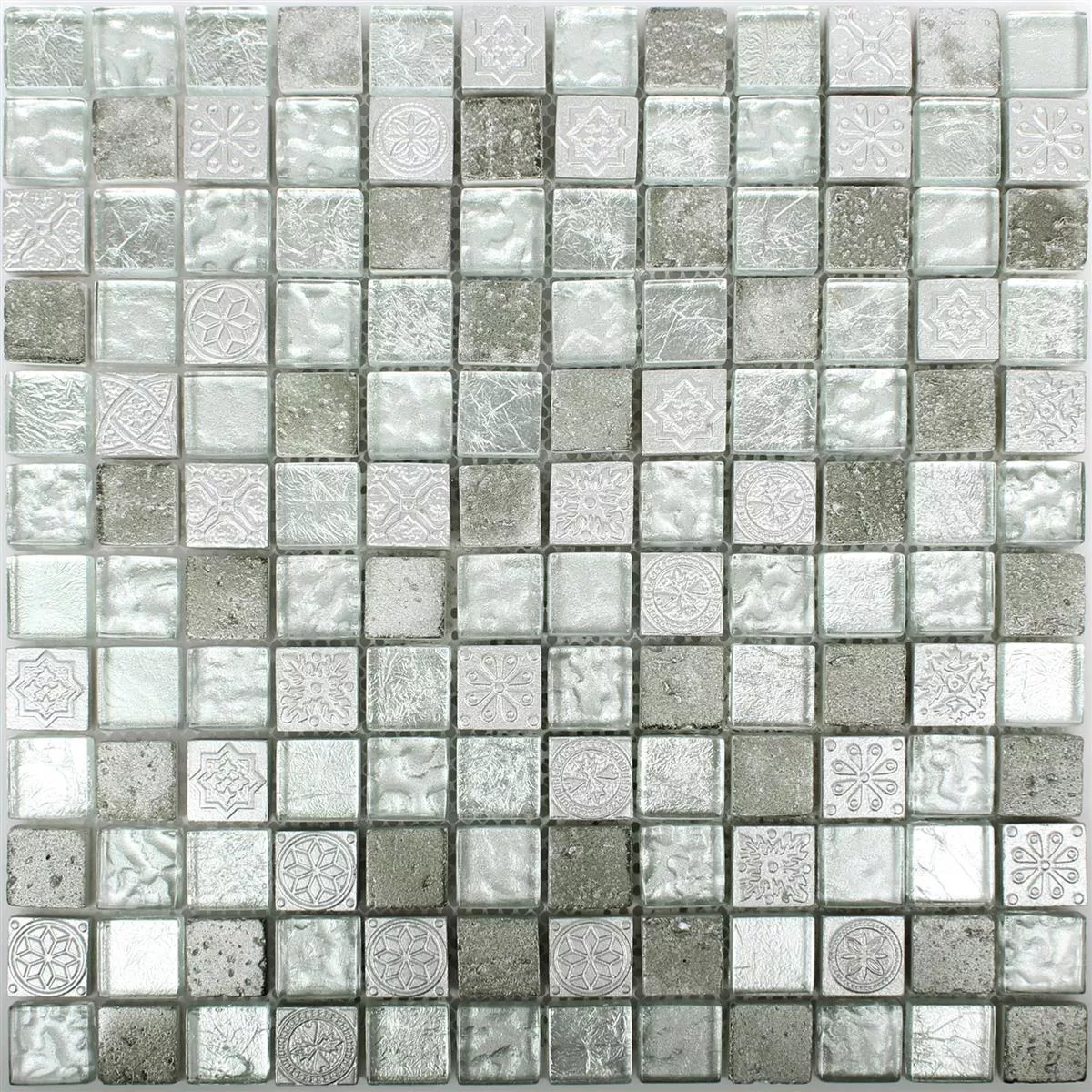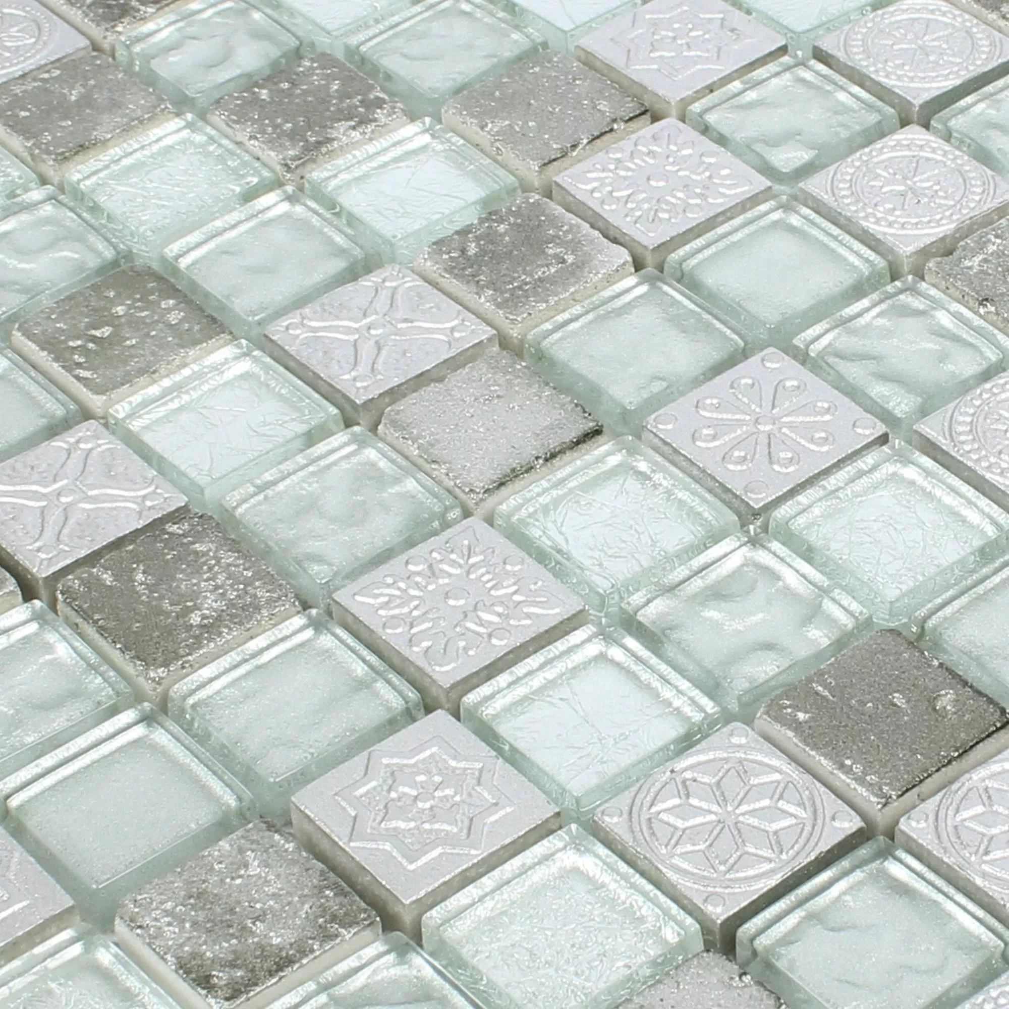 Mosaikfliesen Georgia Glas Naturstein Mix Silber