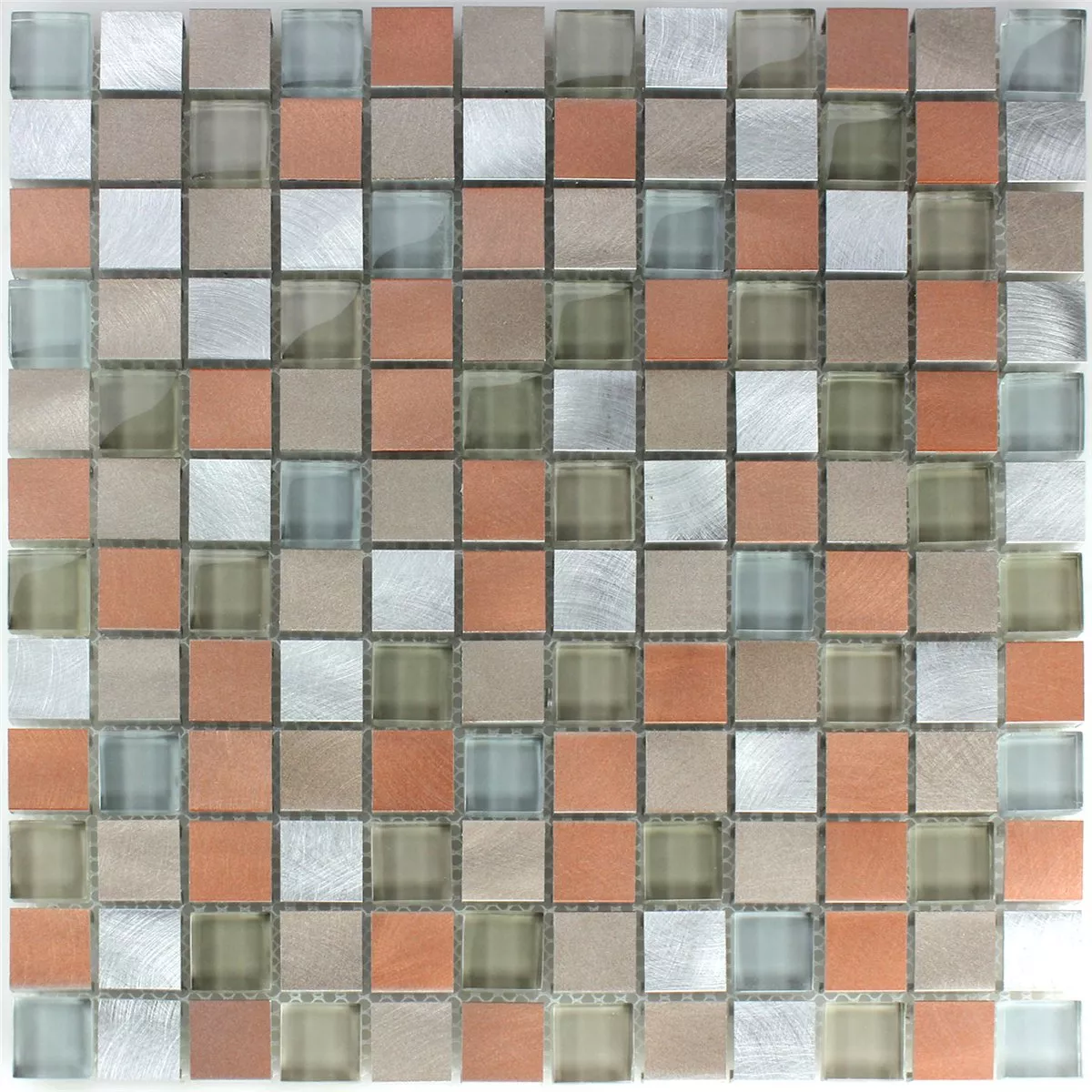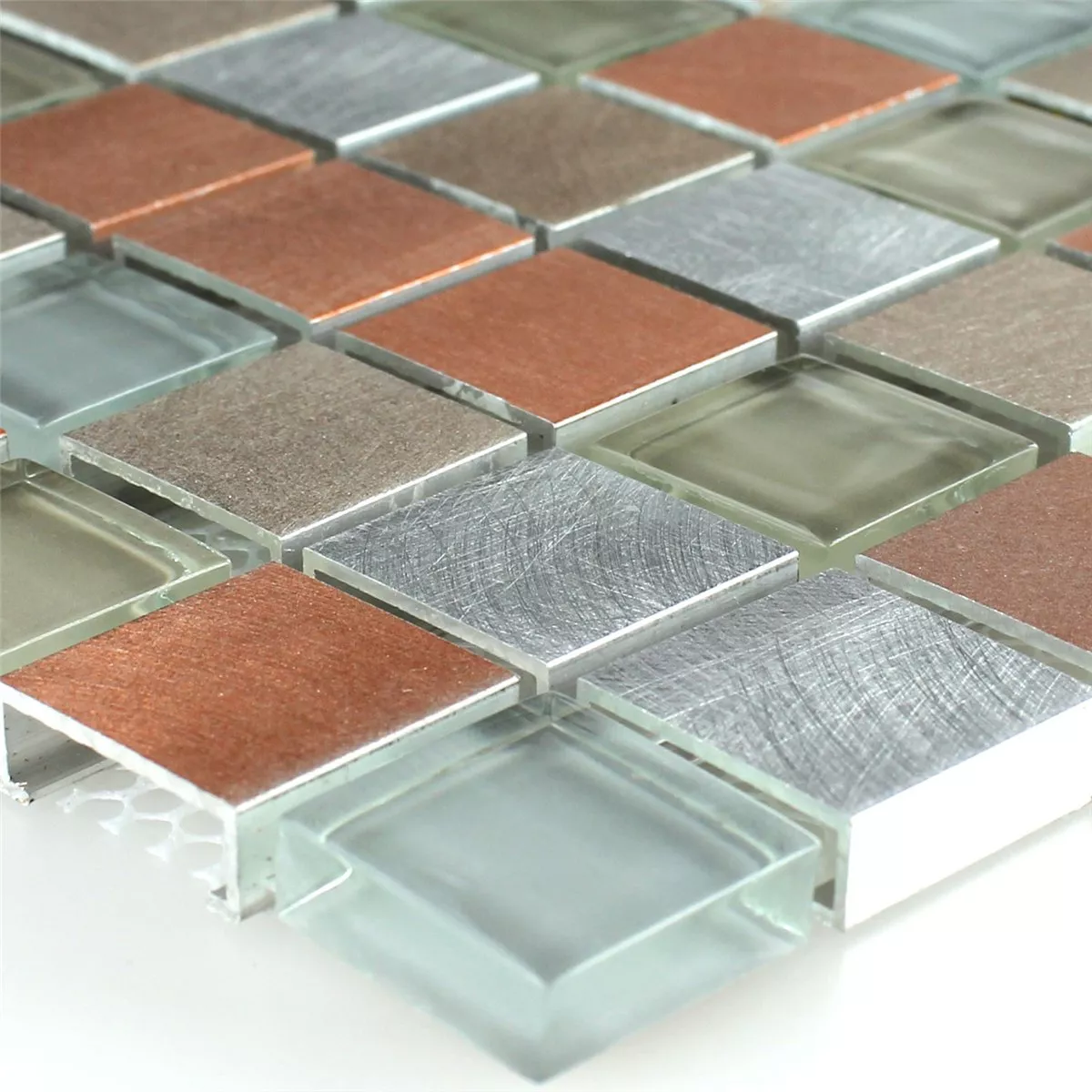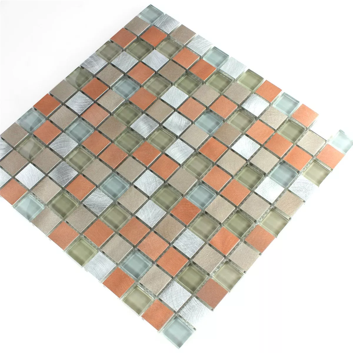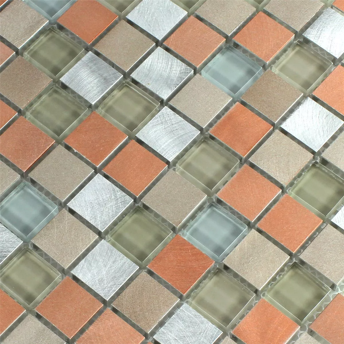 Mosaikfliesen Glas Aluminium Metall Orange Silber Mix