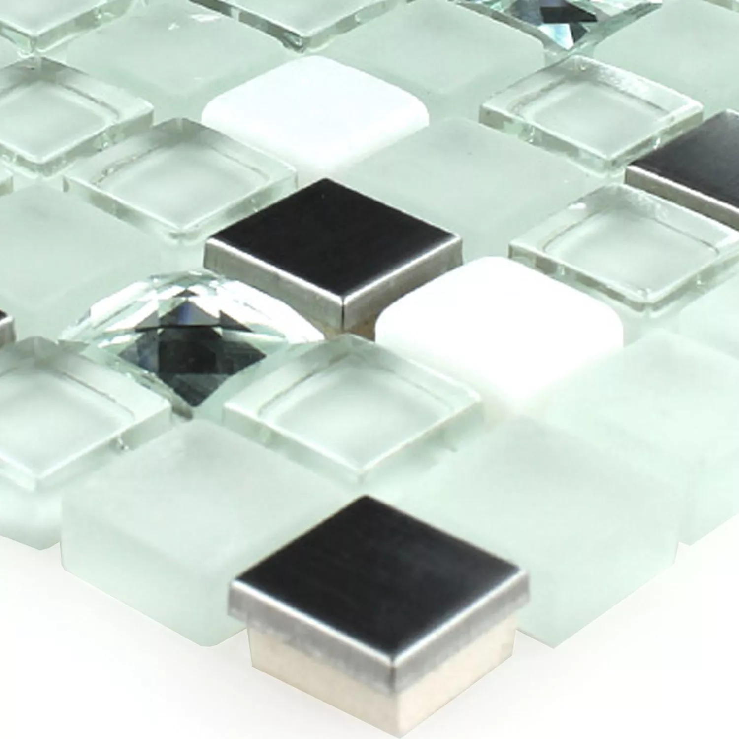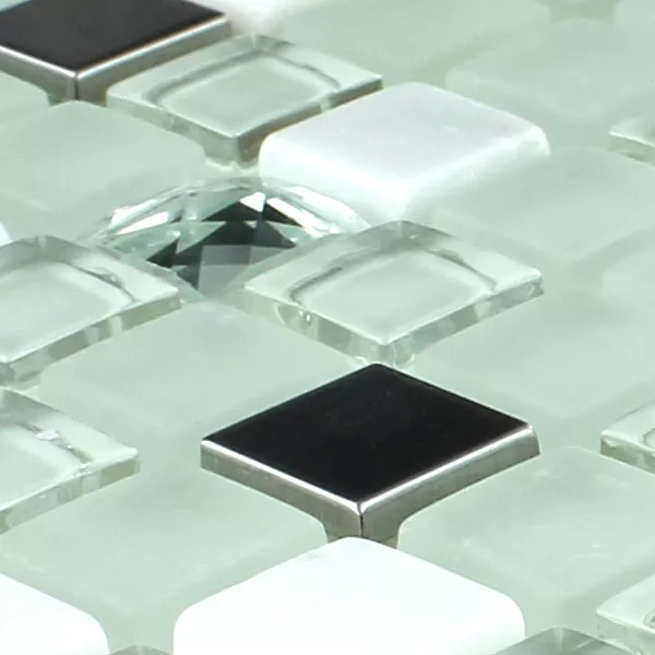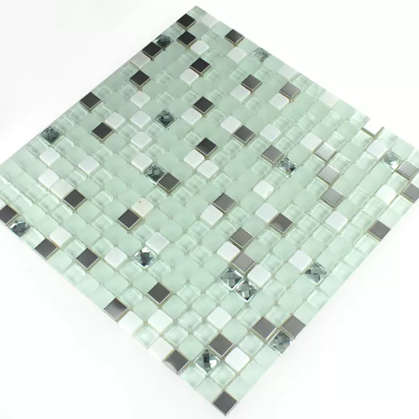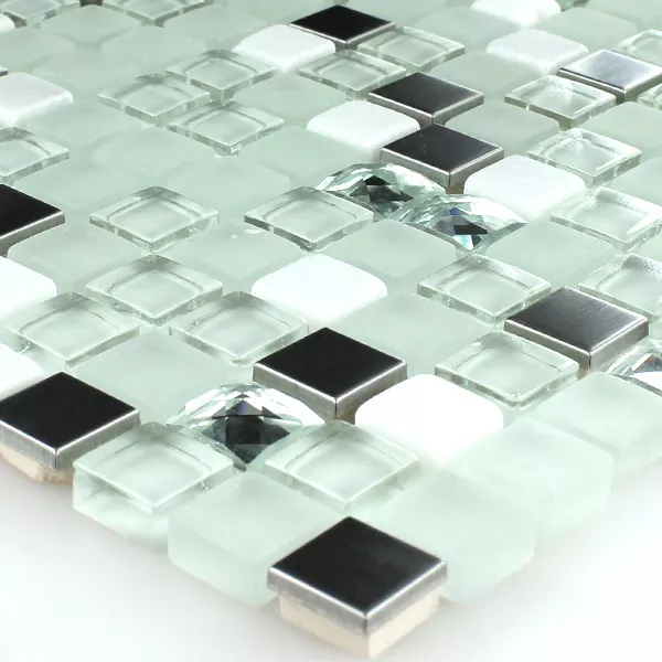 Mosaikfliesen Glas Edelstahl Türkis Diamant