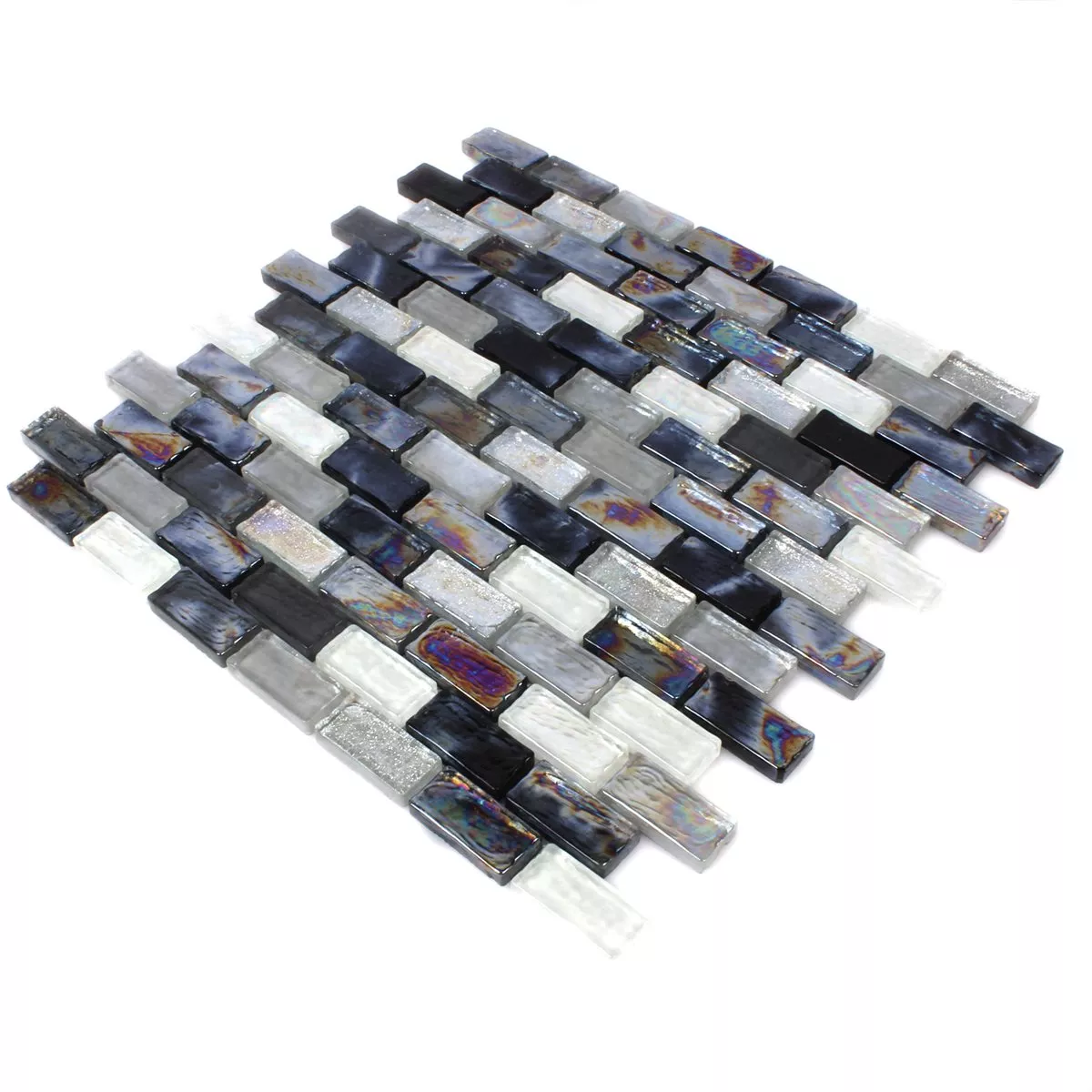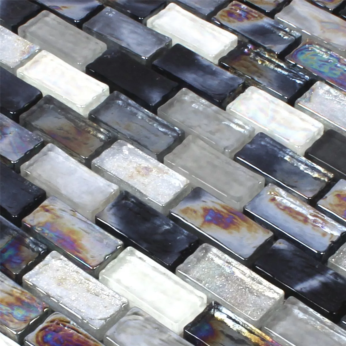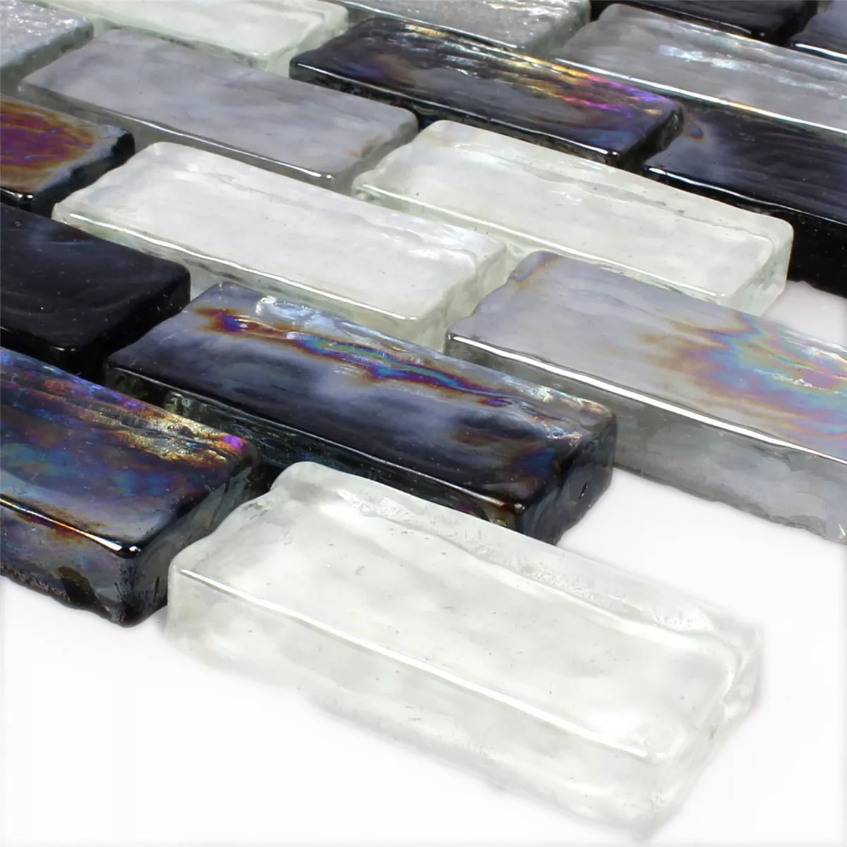 Mosaikfliesen Glas Effekt Petrol Black Mix 20x42x8mm