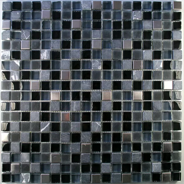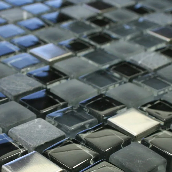 Mosaikfliesen Glas Marmor Edelstahl Schwarz Mix
