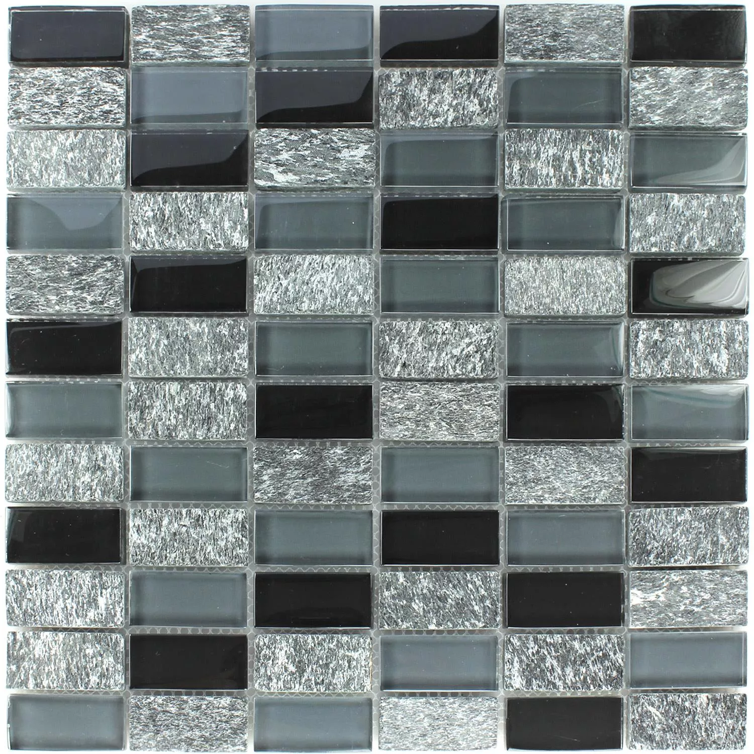 Glas Naturstein Mosaikfliesen Topolina Grau Schwarz