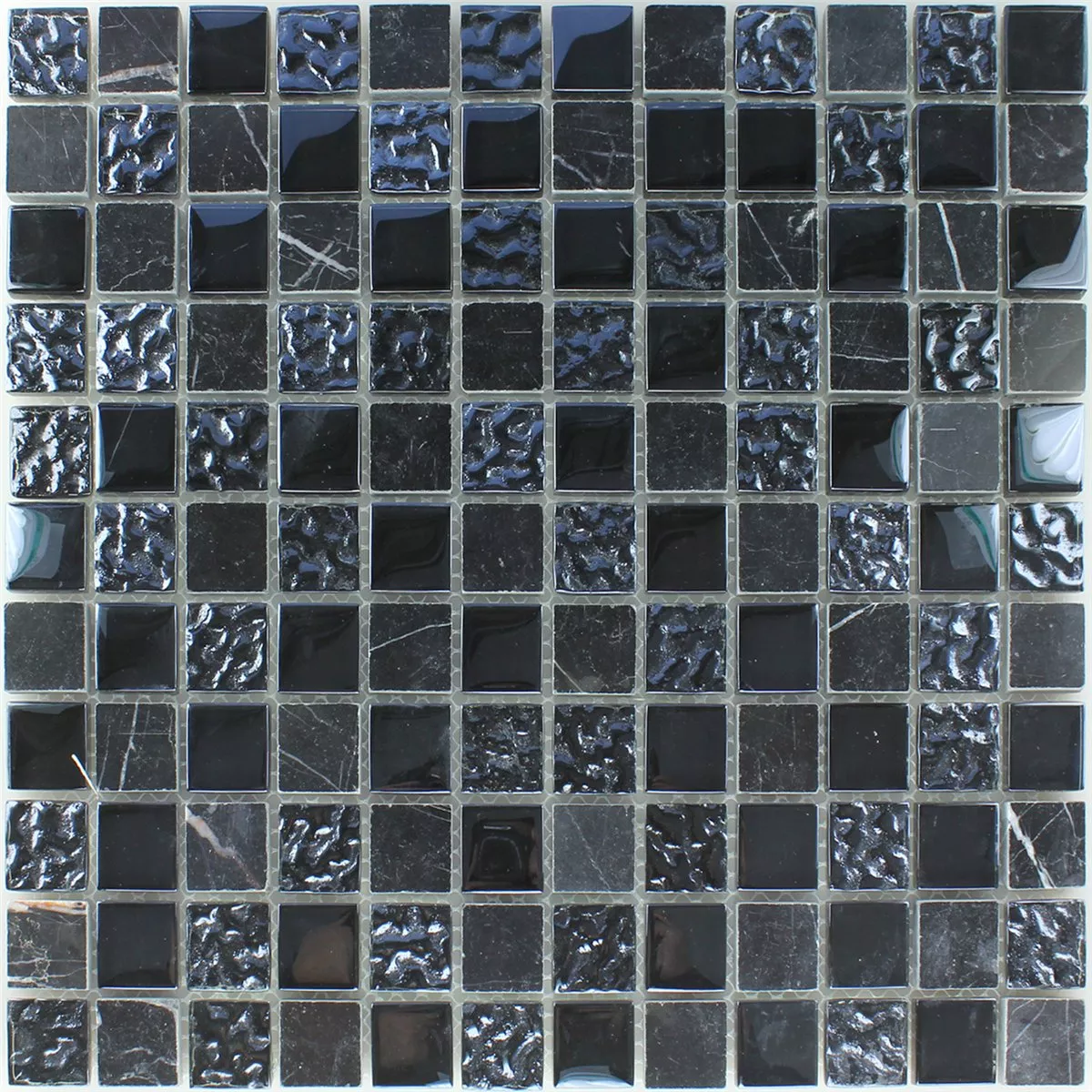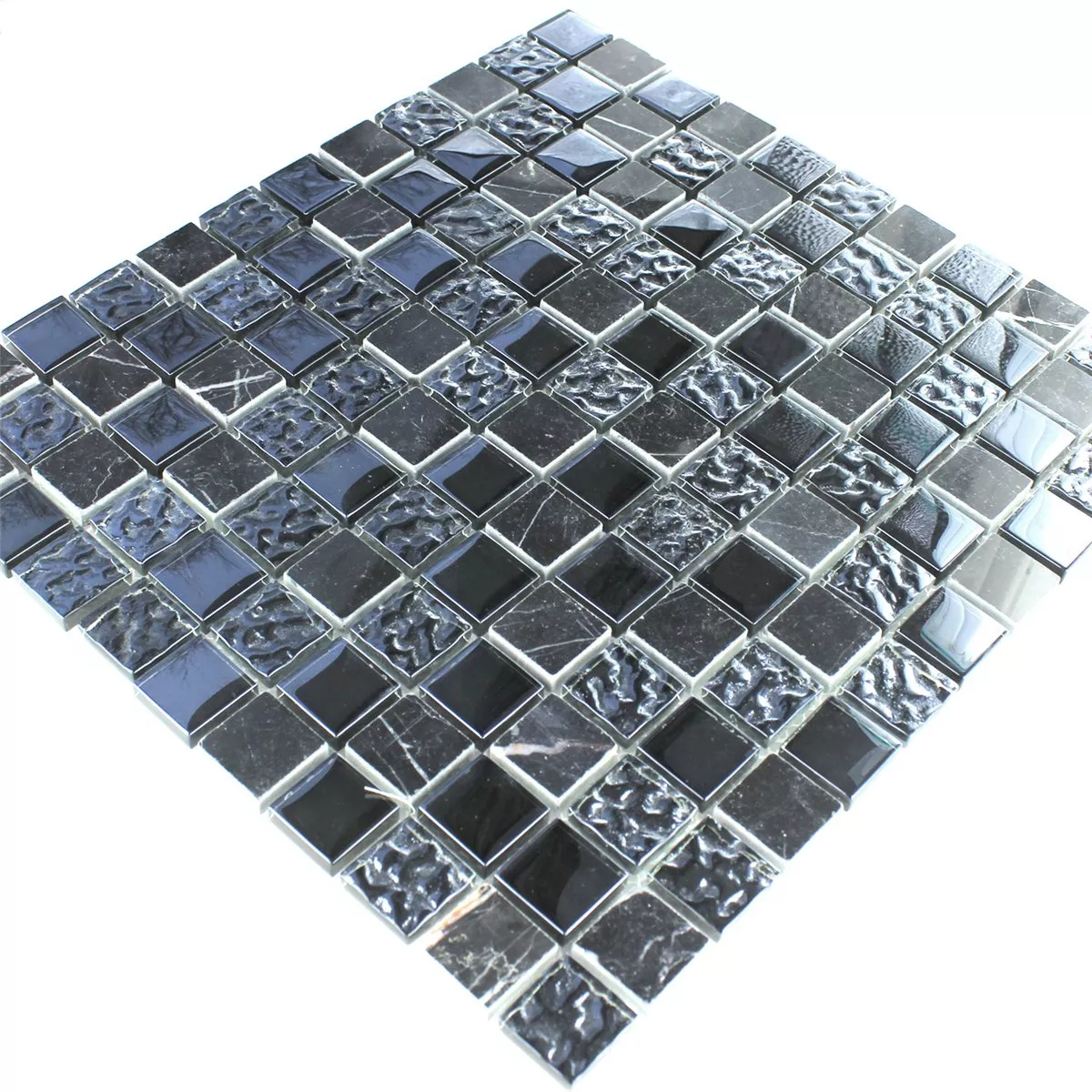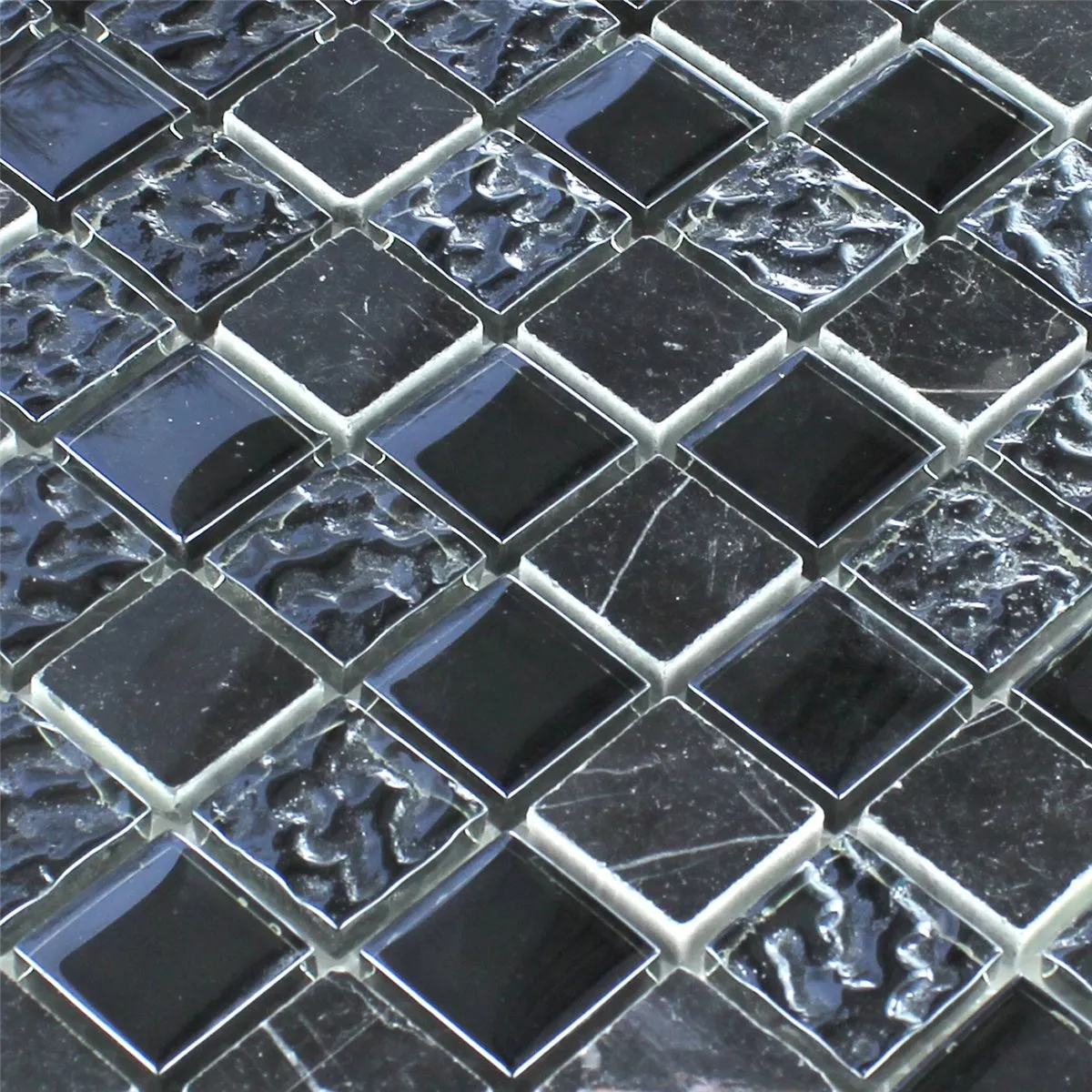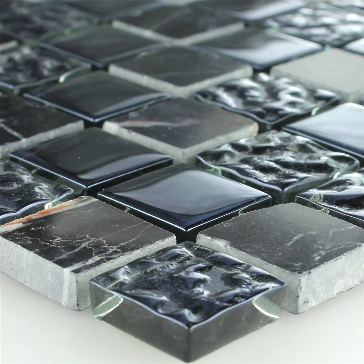 Mosaikfliesen Glas Marmor Naturstein Helsinki Schwarz Geriffelt 25