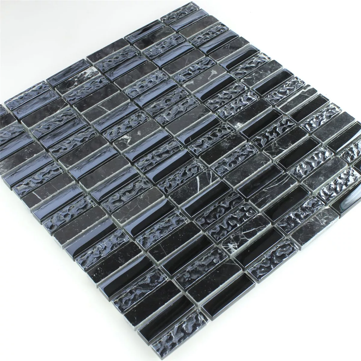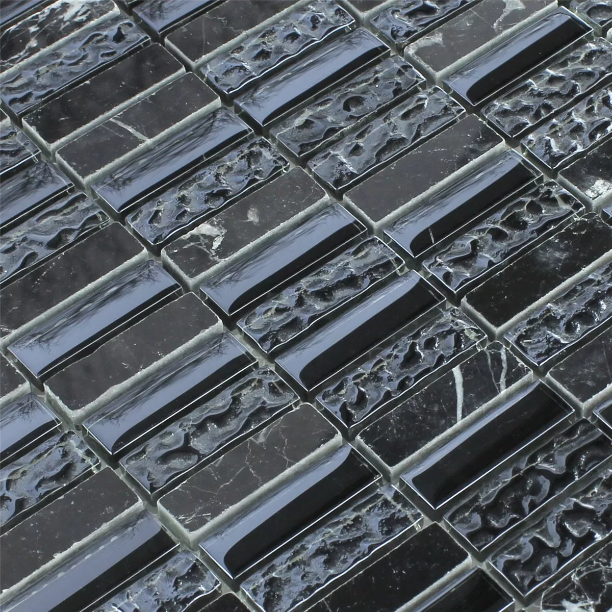 Mosaikfliesen Glas Marmor Naturstein Helsinki Schwarz Geriffelt Stäbchen