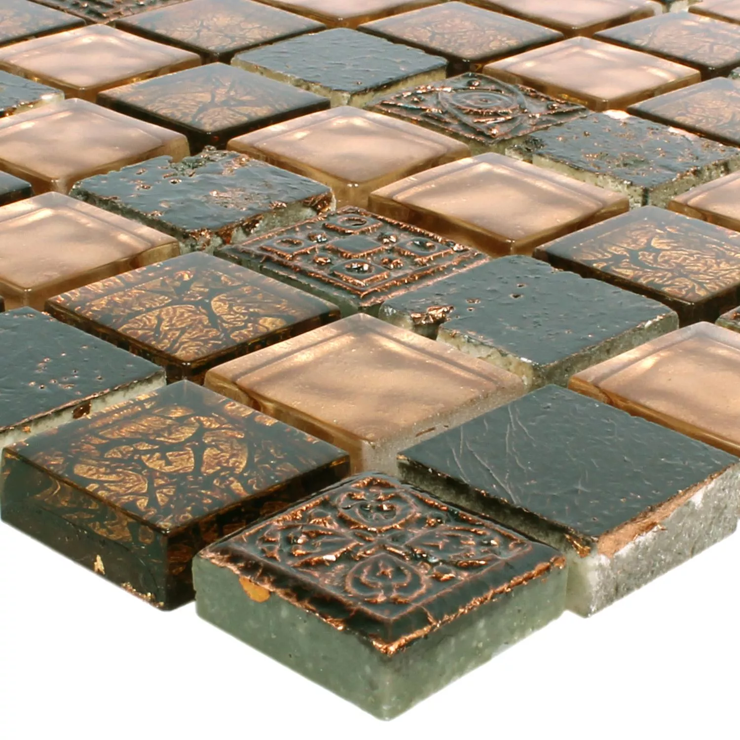 Die Mosaikfliesen Glas Naturstein Maya Brown Bögen sind netzverklebt. Verwendet werden können dieses Fliesen als Bordüren, wie auch als breitflächig angebrachte Wandfliesen. Als Bordüre verlegt sorgen die Fliesen für ein trendiges Highlight und lockern die Raumatmosphäre auf. Als breitflächig angebrachte Wandfliesen verlegt sorgen diese Fliesen für einen rustikalen Flair. Vor der Verklebung dieser Fliesen sollten diese erst einmal angelegt werden an die Wand, um das gewünschte Farbspiel zu überprüfen. Die Farbintensität dieser Fliesen kommt besonders stark durch die Reflektion bei Lichteinfall zum Vorschein. Diese Mosaikfliesen Glas Naturstein Maya helfen dabei über WC, Waschbecken, Badewanne bzw. Dusche und als Wandverkleidung über der Arbeitsplatte hinter Spüle und Herd. in Form von Bordüren oder Wandfliesen Akzente zu setzen. Der Umsetzung von kreativen Ideen ist entsprechend groß.