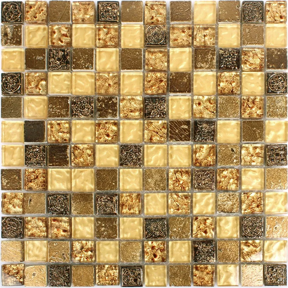 Mosaikfliesen Glas Naturstein Maya Gold