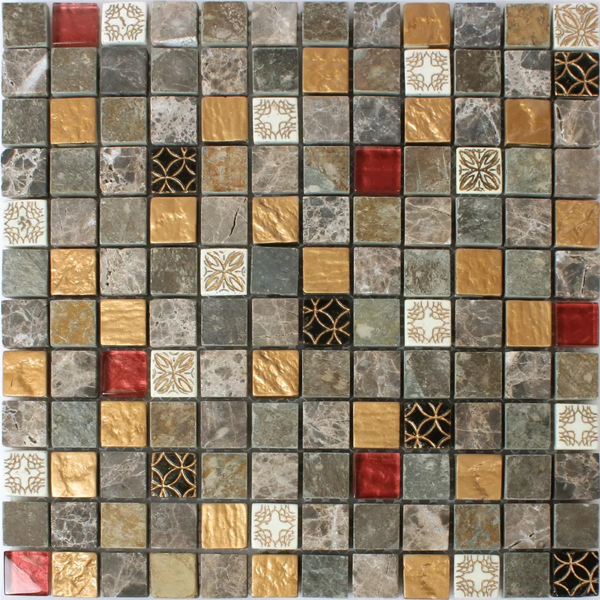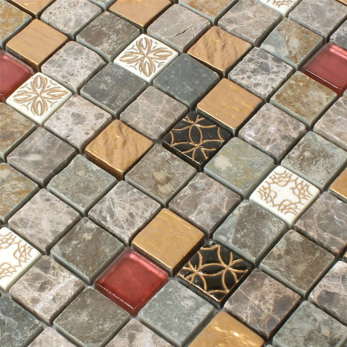 Mosaikfliesen Glas Naturstein Mix 23x23x8mm