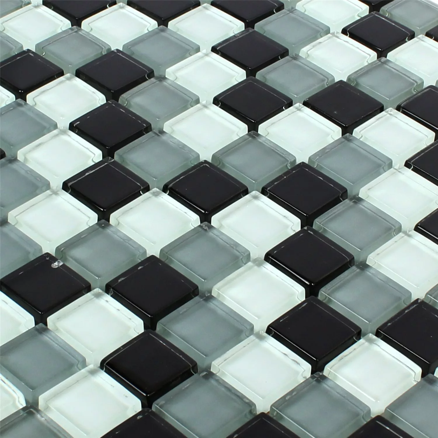 Mosaikfliesen Glas Palmas Schwarz Grau Weiss