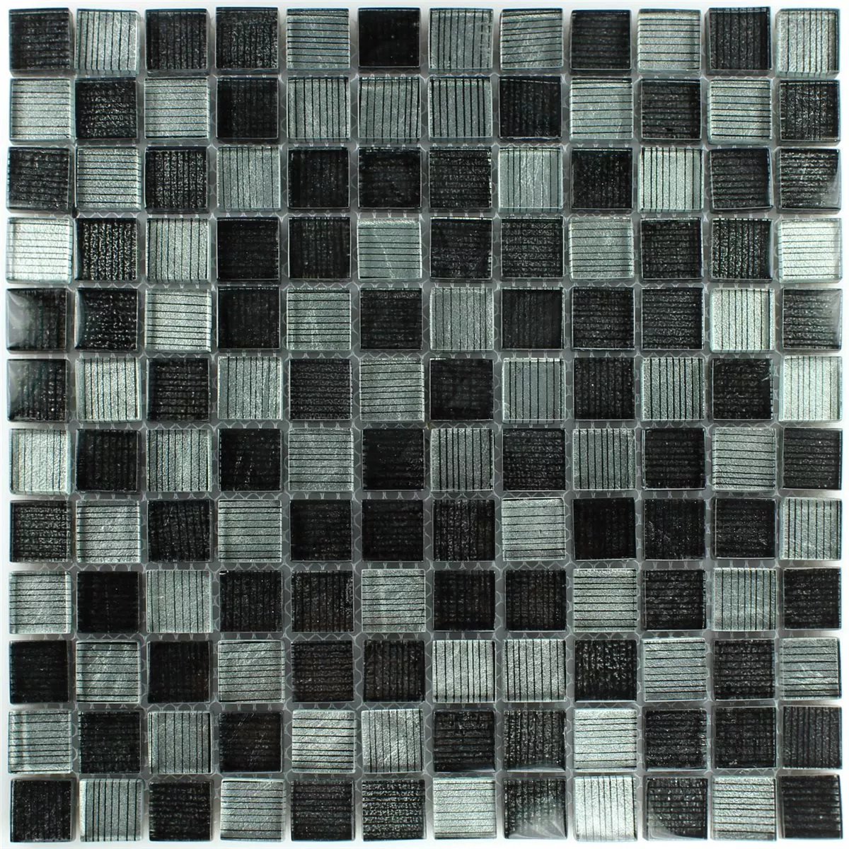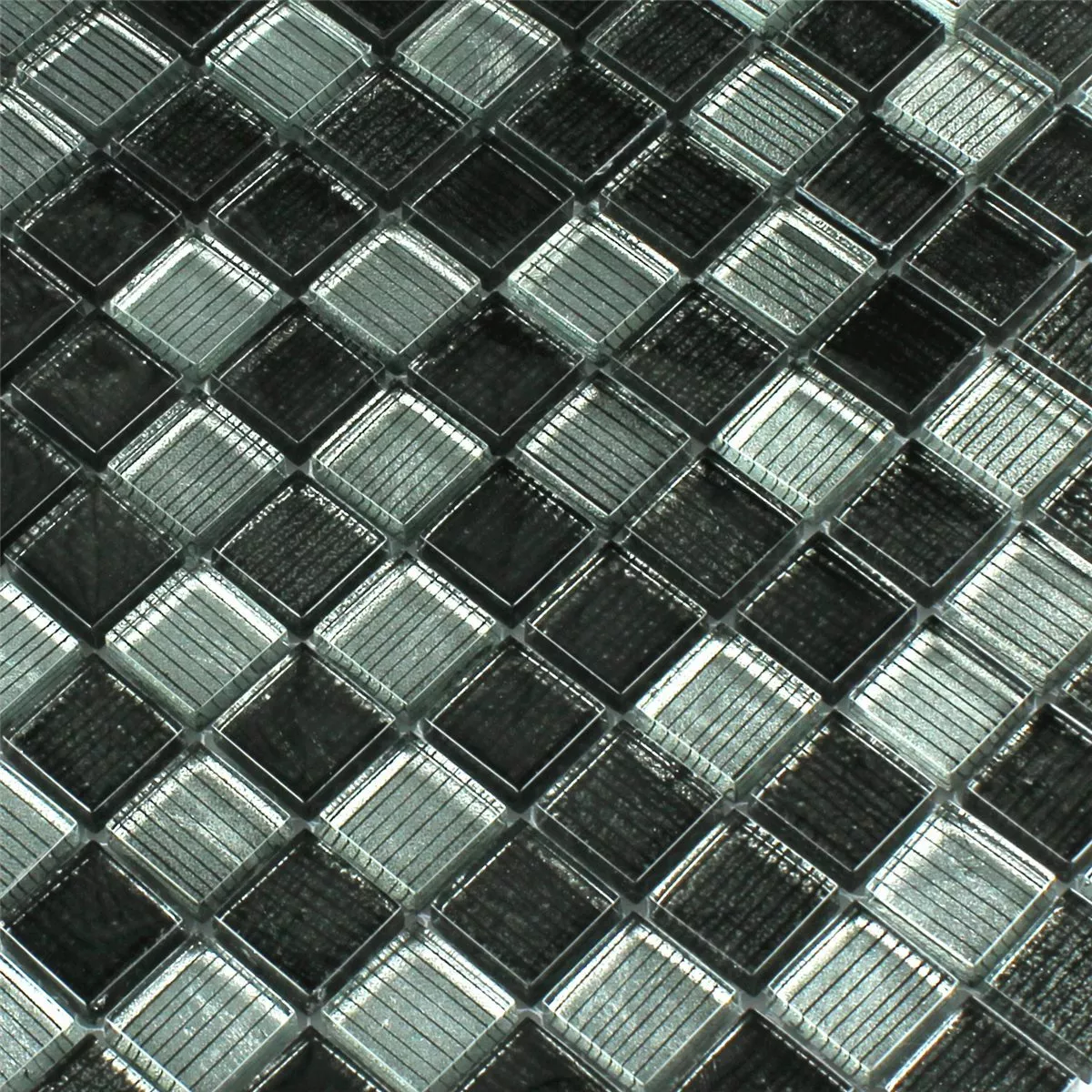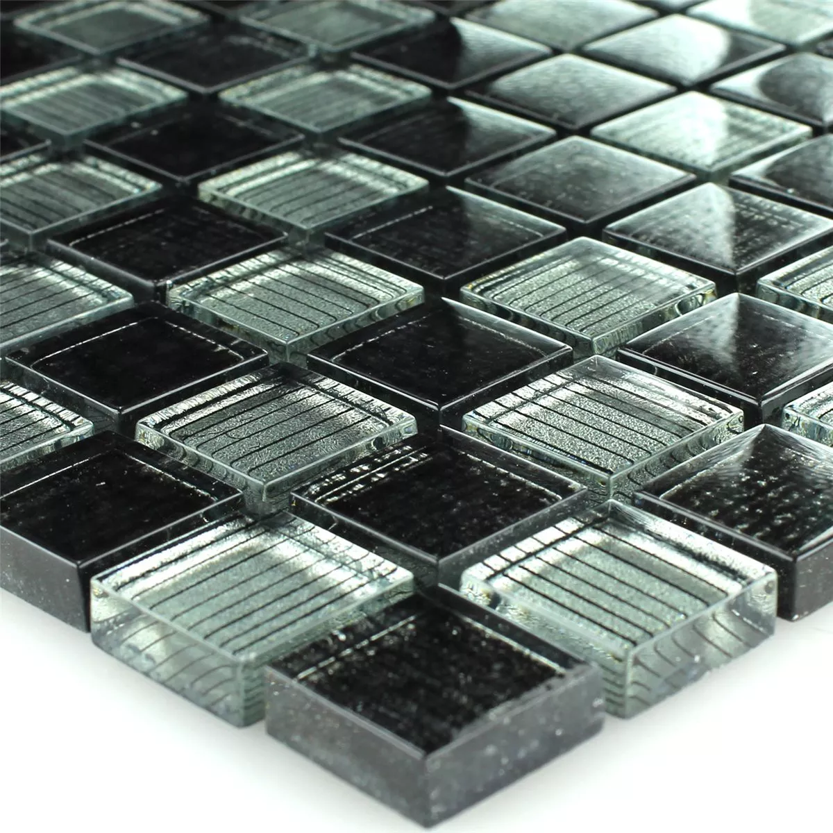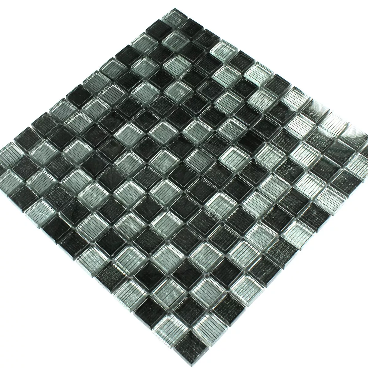 Mosaikfliesen Glas String Schwarz Grau Gestreift