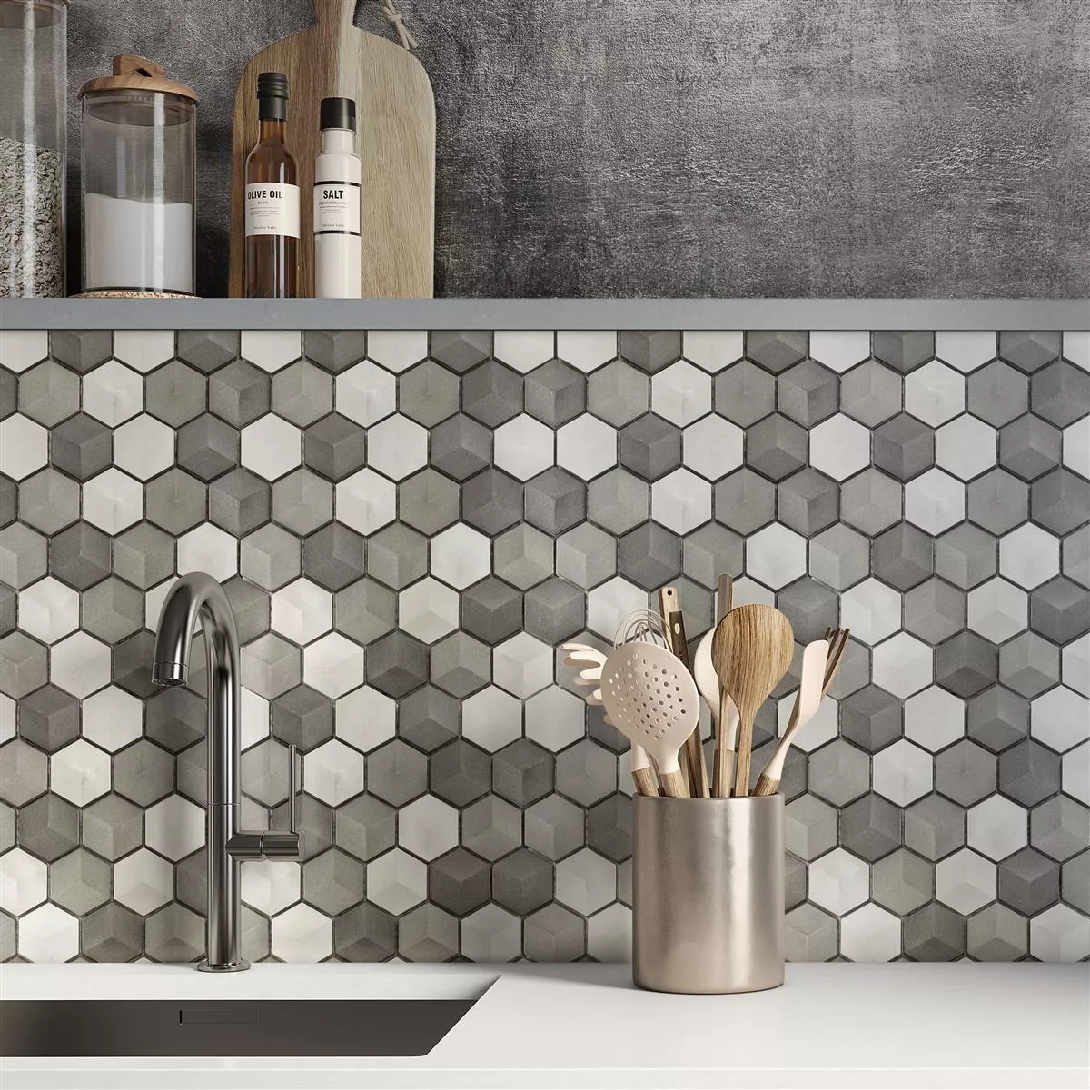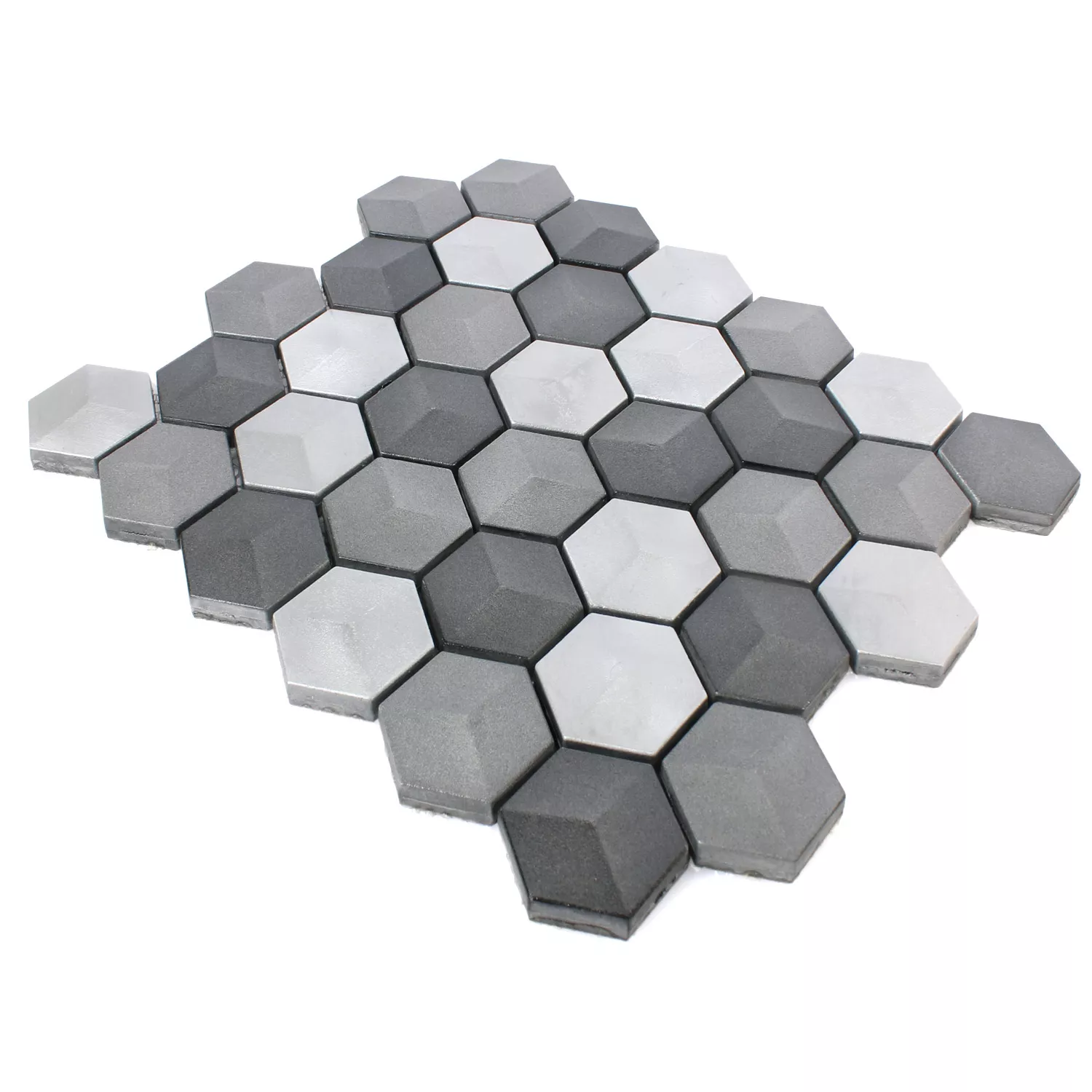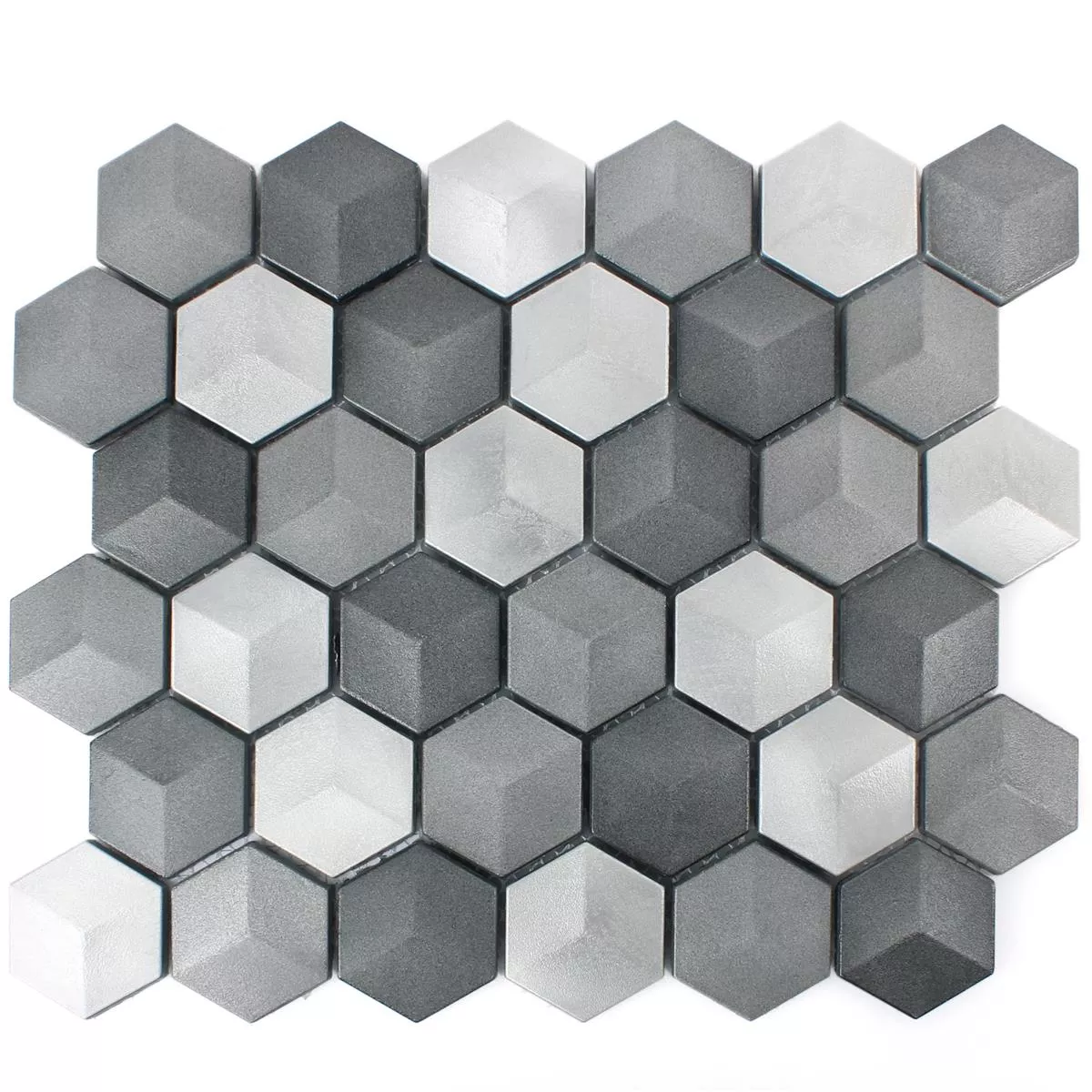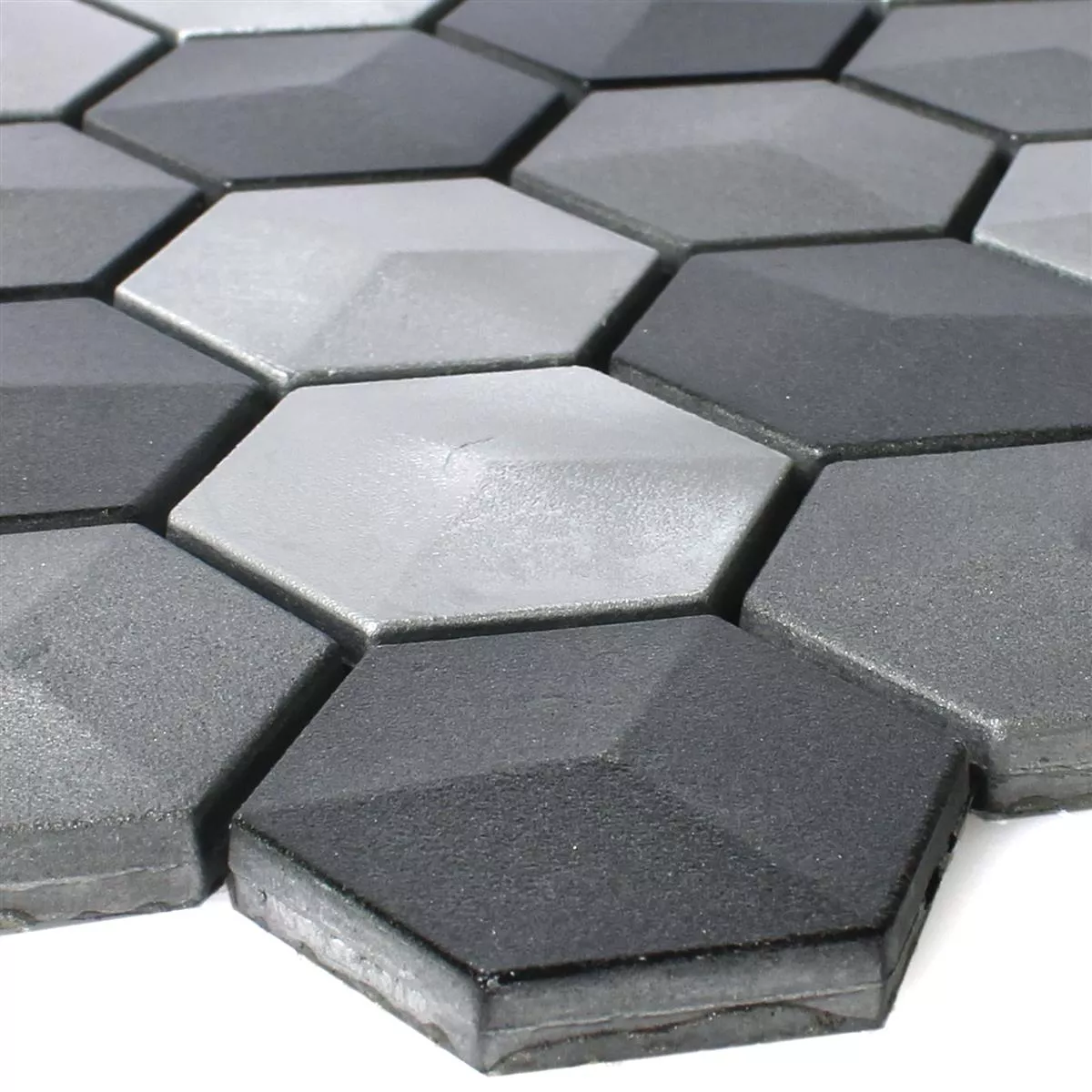 Mosaikfliesen Hexagon Kandilo Schwarz Silber