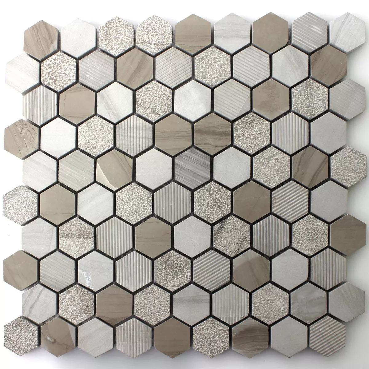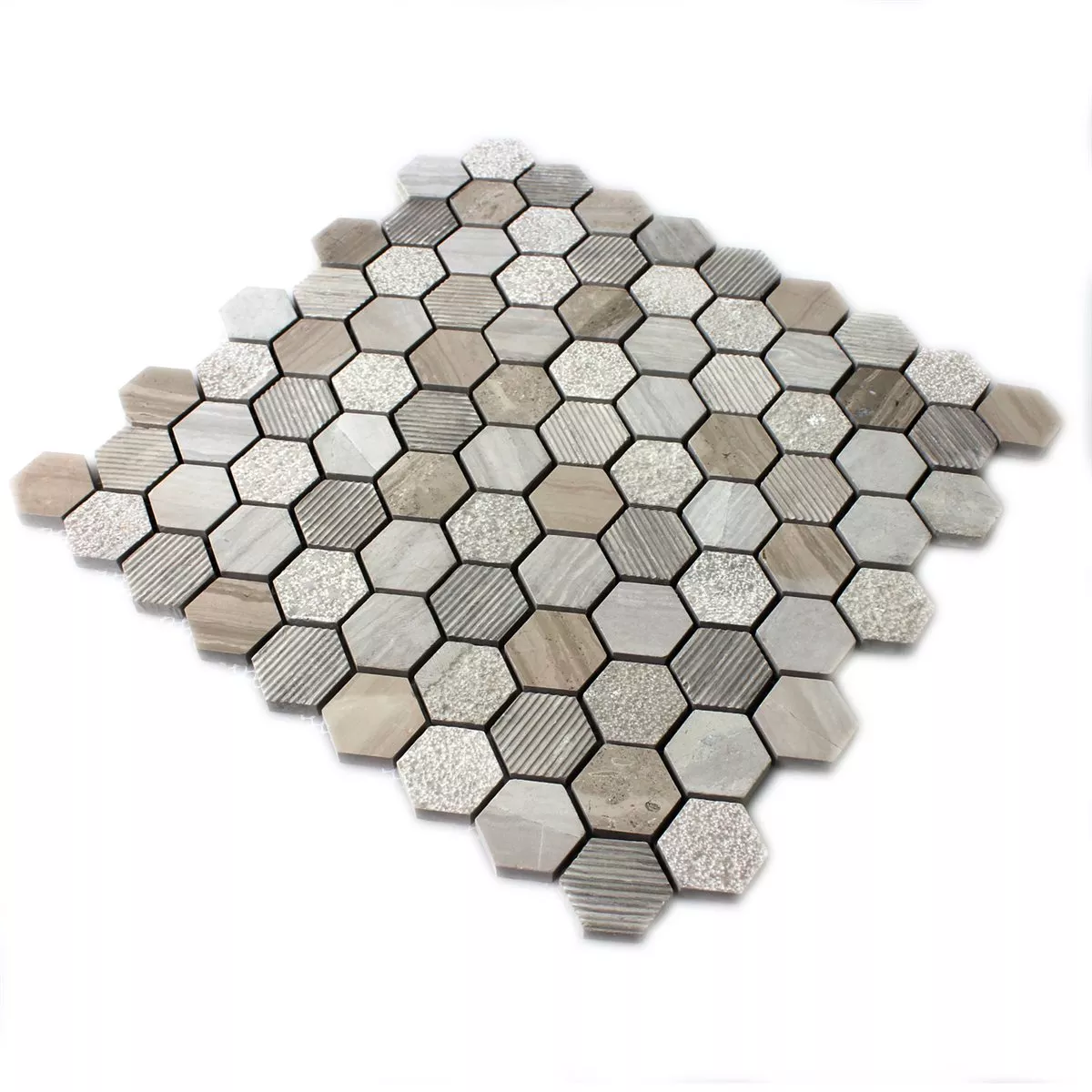 Mosaikfliesen Hexagon Naturstein Mocca Braun