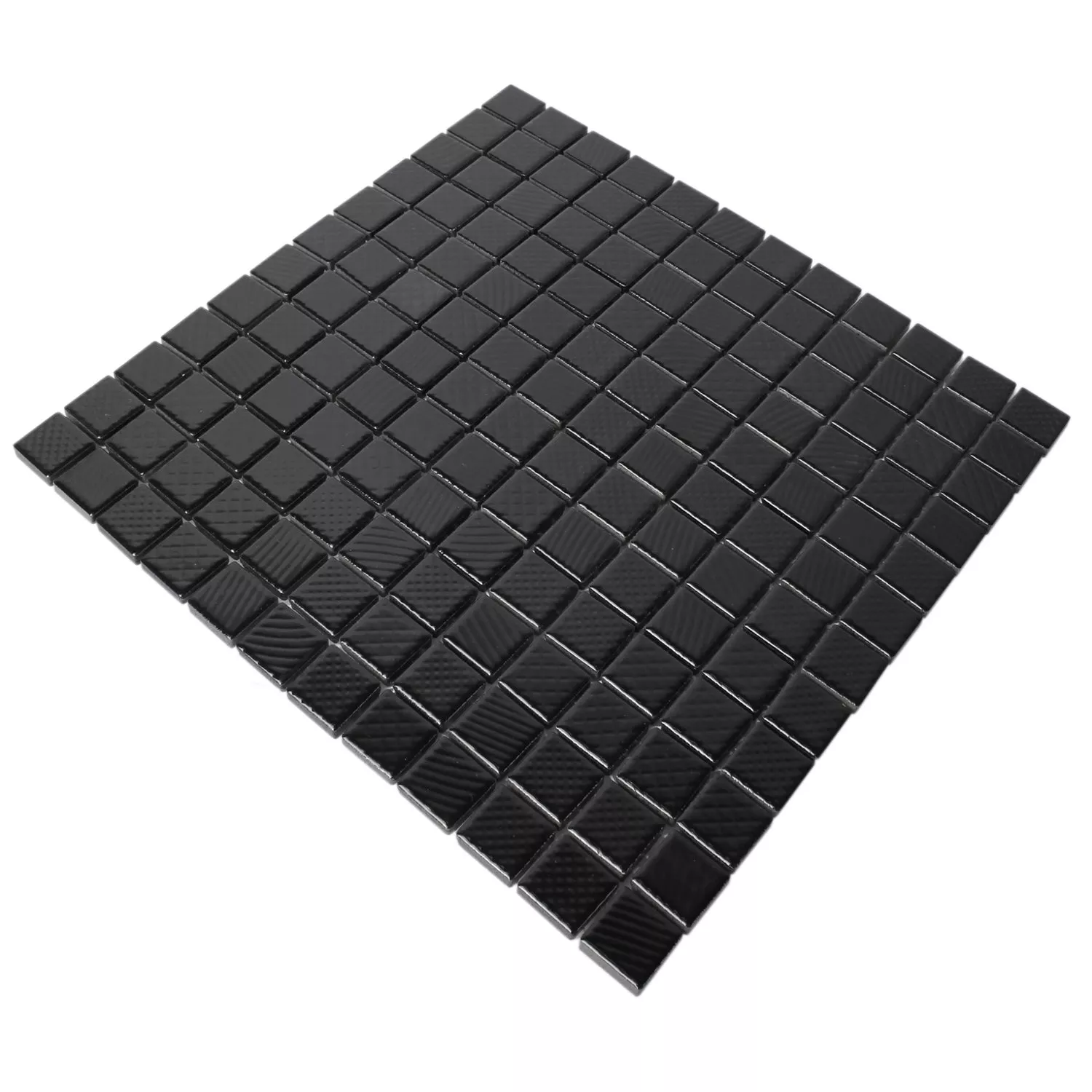 Die Mosaikfliese Keramik Carlson in Schwarz erzeugt in der Fläche eine eleganten Charme in der Optik. Mosaike sind eine traditionelle Art der Wand- und Bodenkeramik. Diese Fliesen sind als Wand- und Bodenbelag geeignet. Sie bieten in ihrer Struktur eine sehr hochwertige Qualität- Es handelt sich um hochwertige Keramik Erzeugnisse. Jedes kleine Quadrat auf der Fliesen-Matte hat eine quadratische Größe von 2,3 x 2,3 cm und die Oberflächen sind matt glänzend gasiert. Zwei Farbvarianten sind verfügbar.