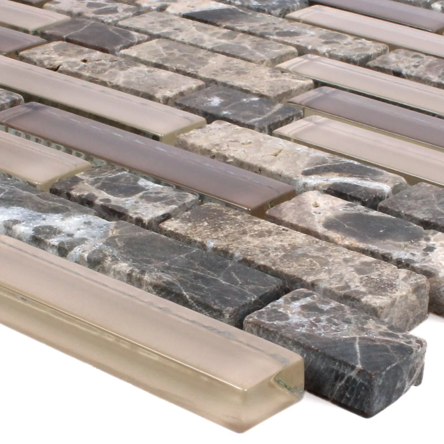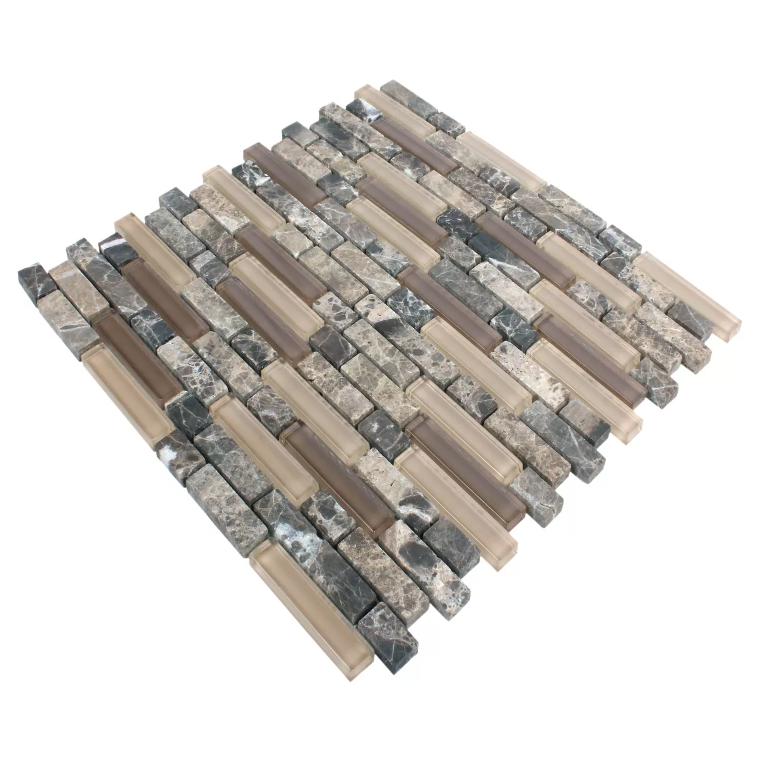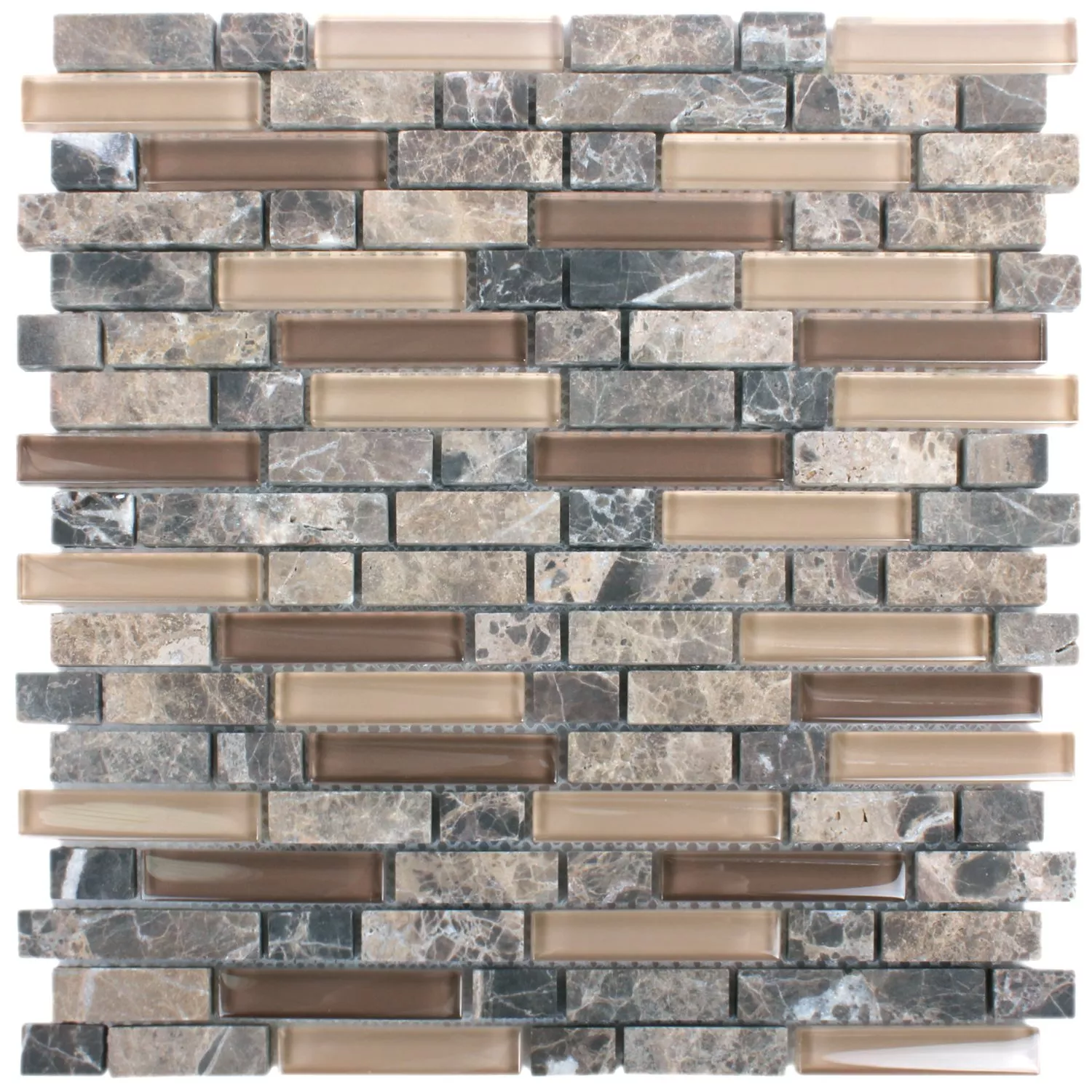 Mosaikfliesen Milos Glas Naturstein Mix Braun Verbund