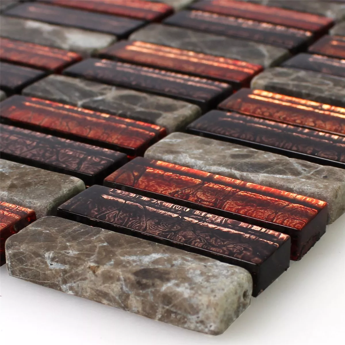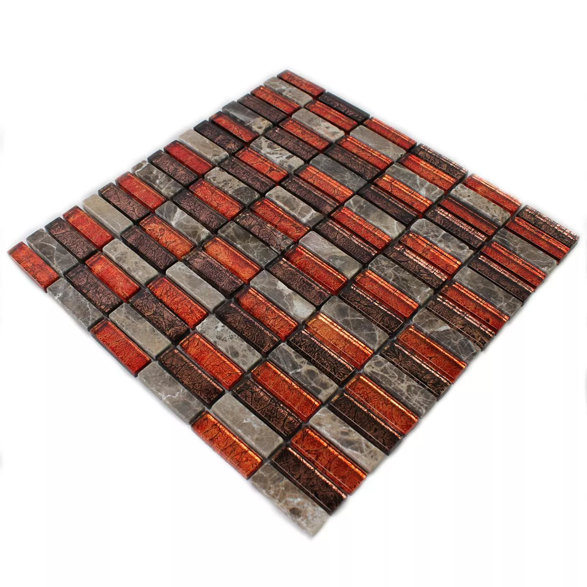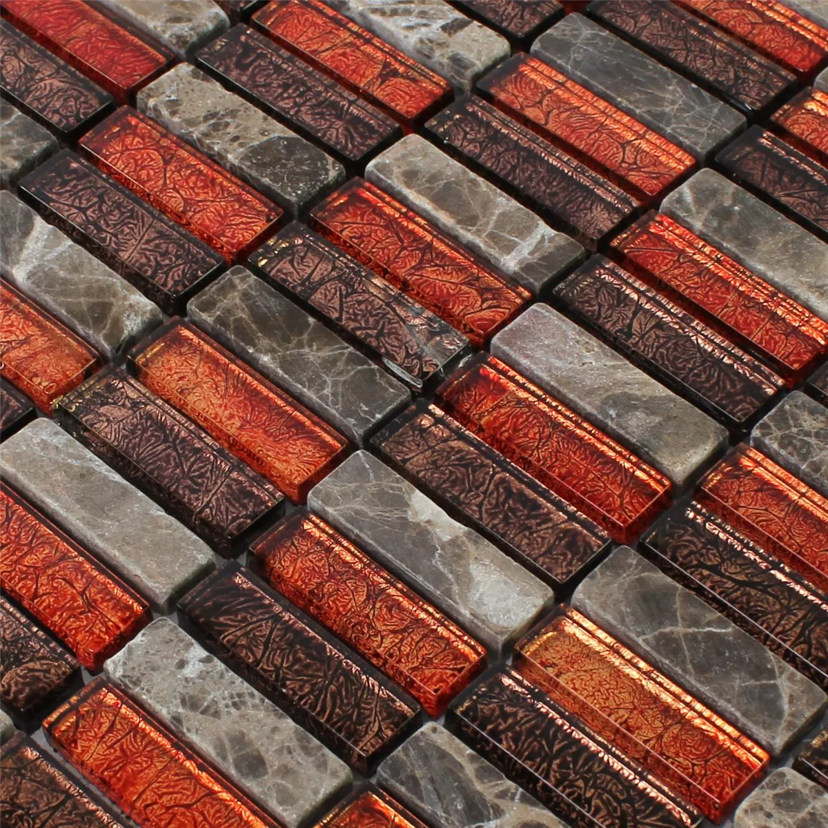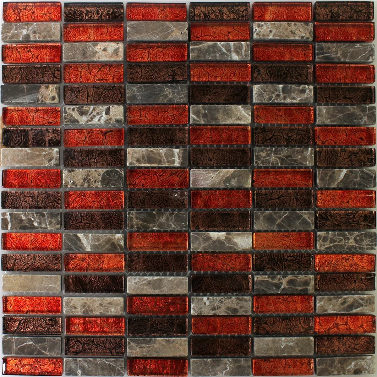Mosaikfliesen Naturstein Glas Rot Braun Stick