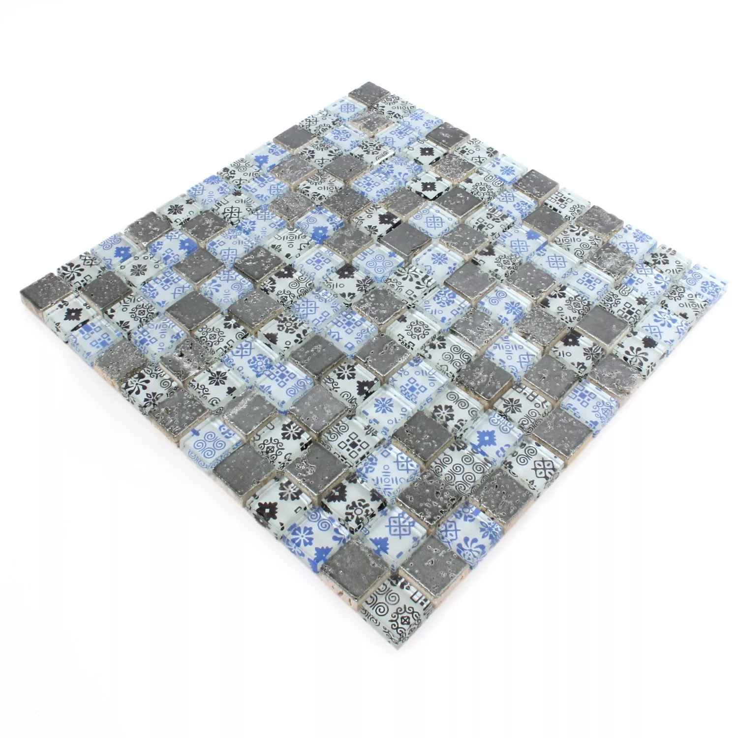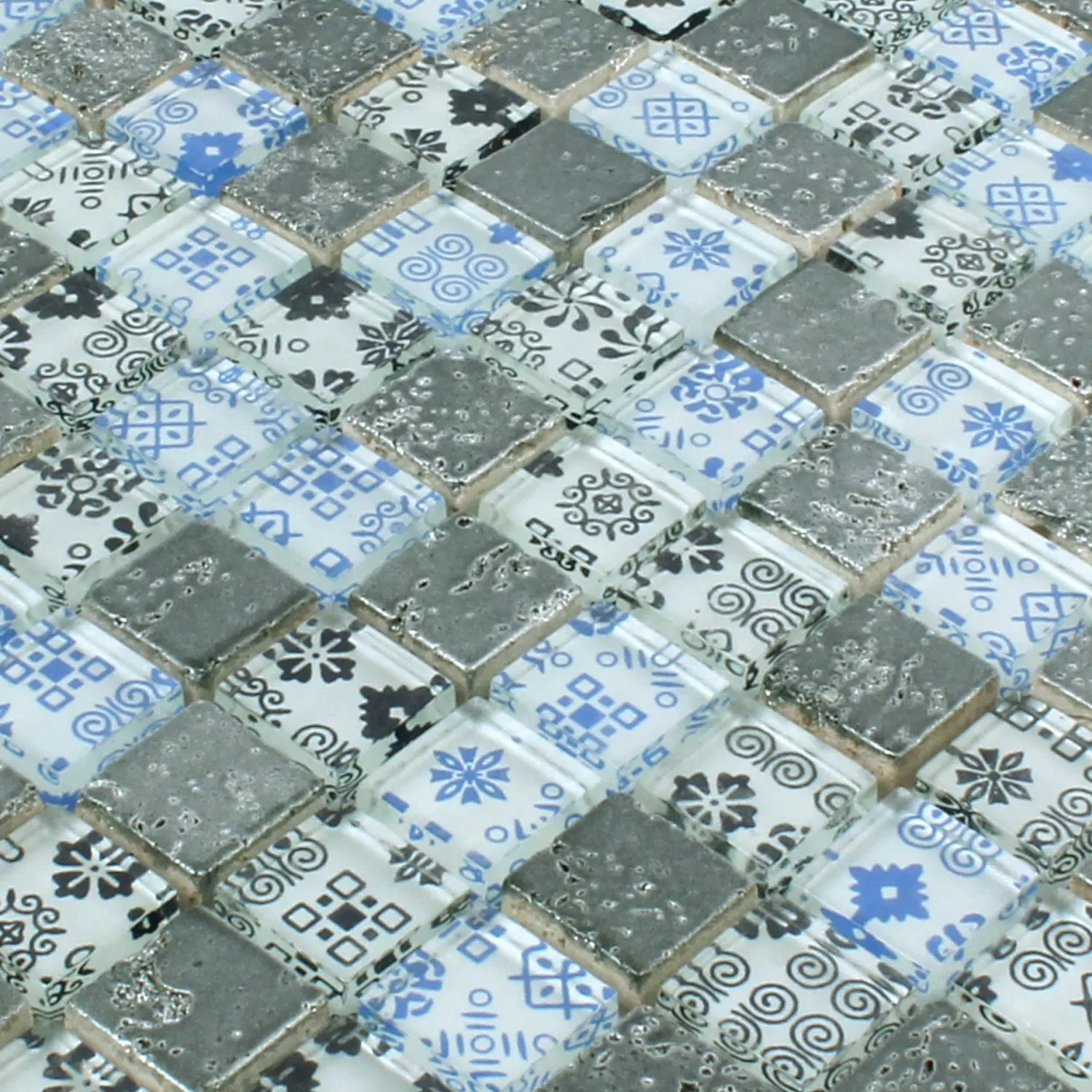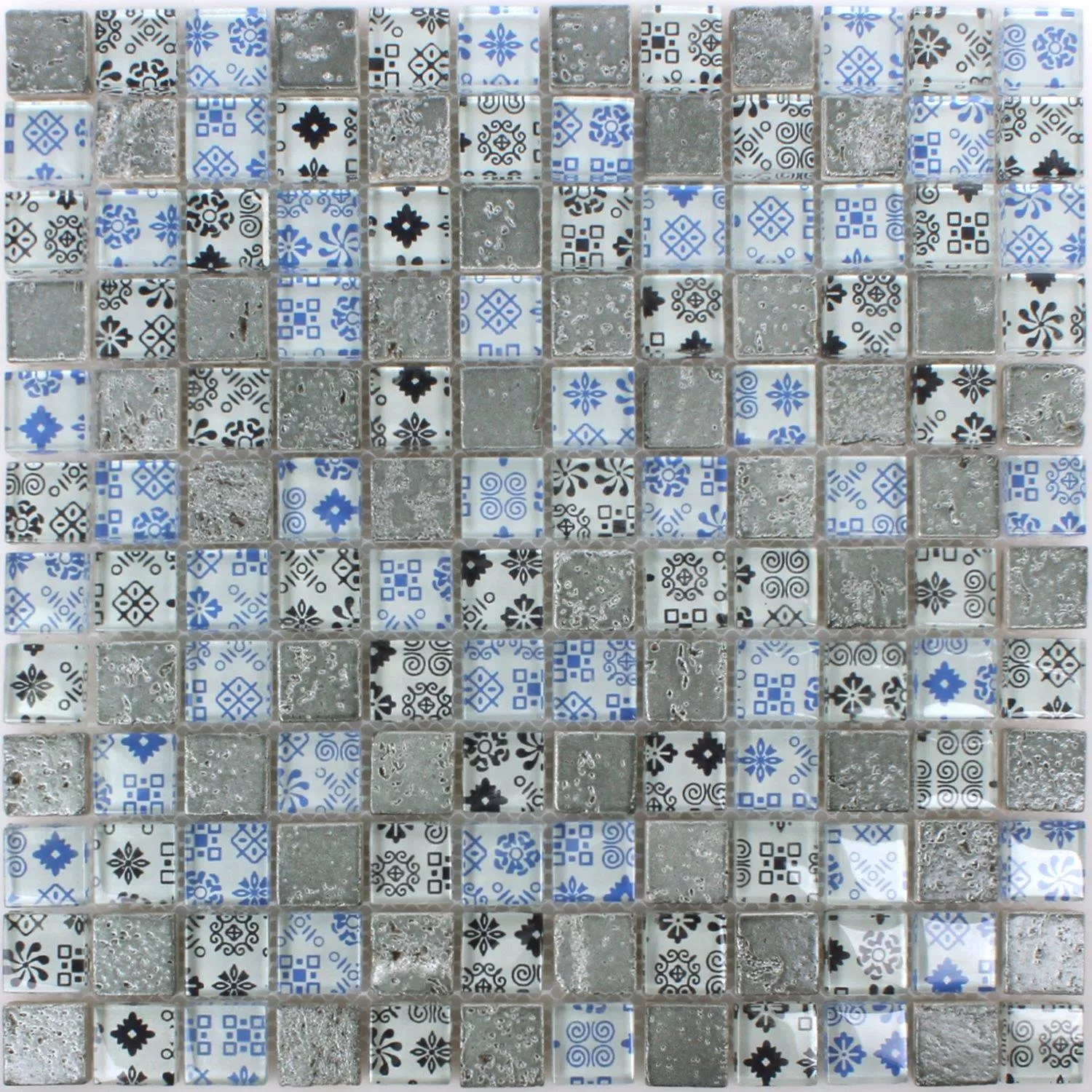 Mosaikfliesen Resin Glas Belmont Blau Silber