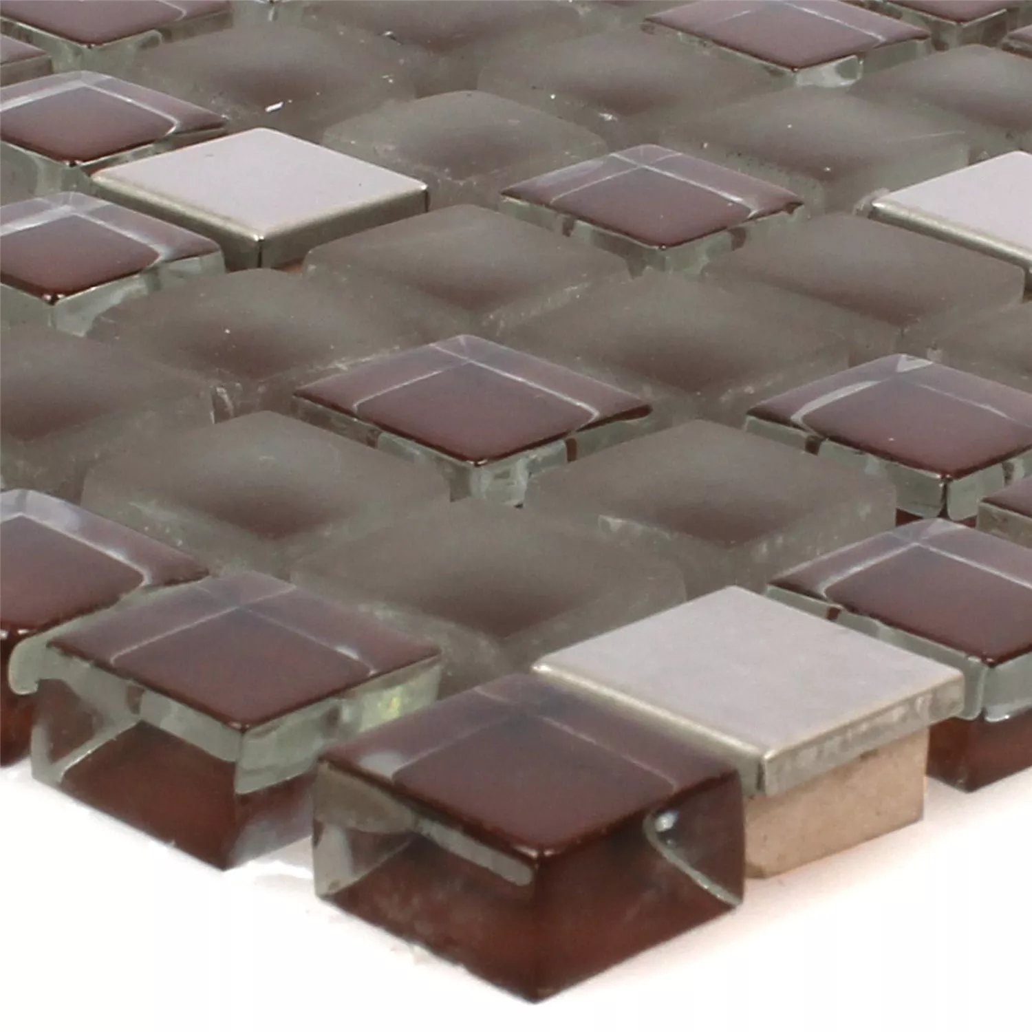 Mosaikfliesen Rotterdam Edelstahl Glas Mix Braun Silber