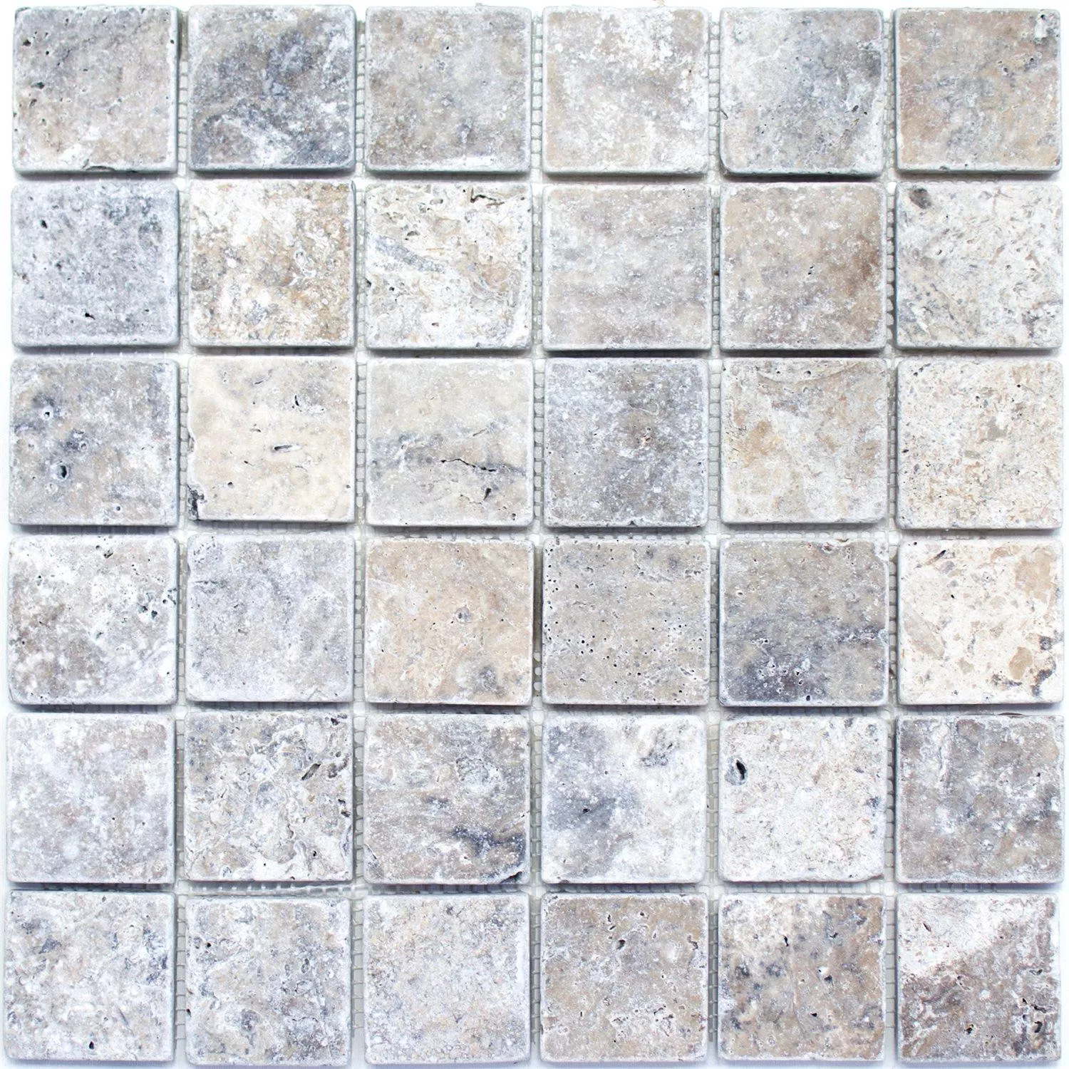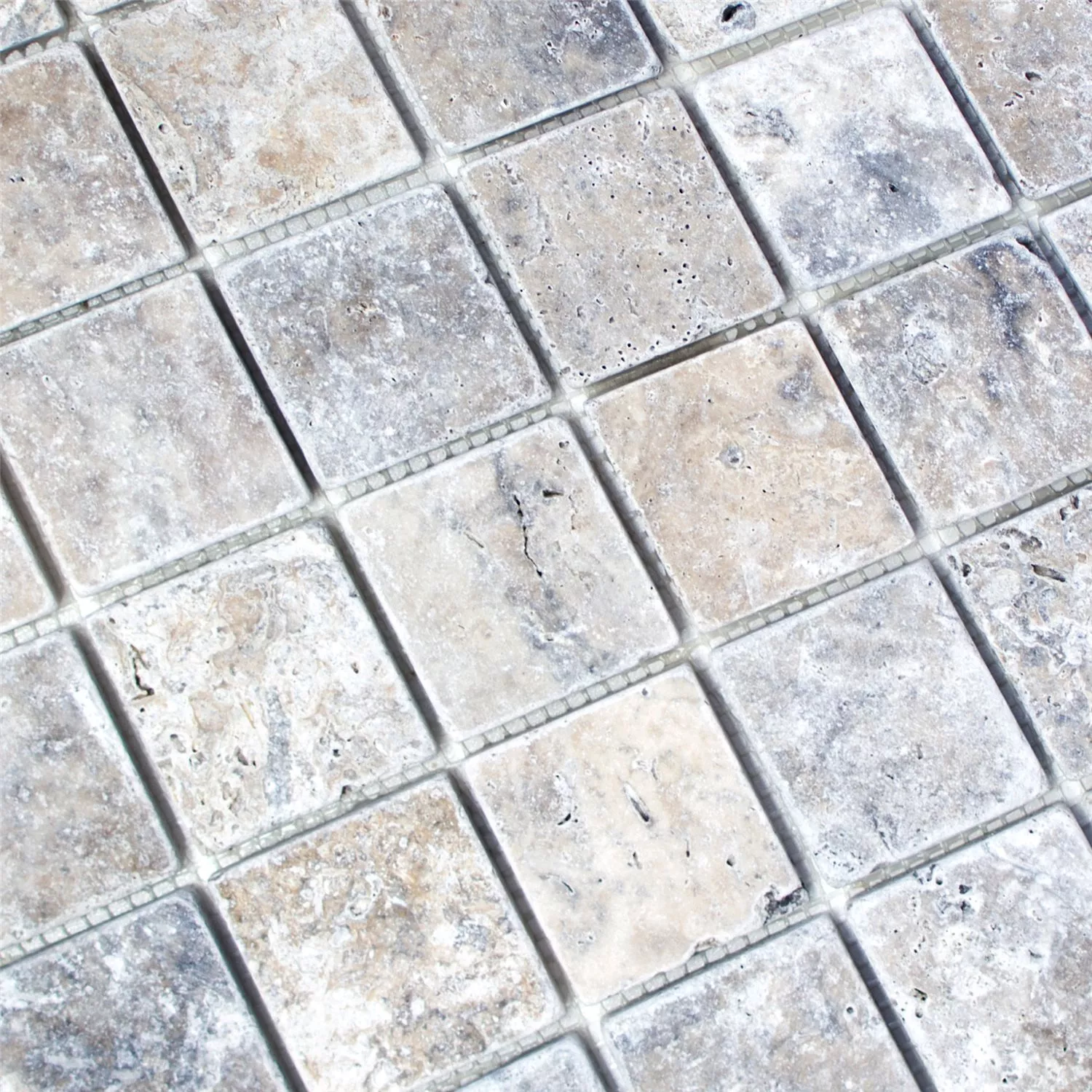 Diese Mosaikfliesen Nestor Silber 48 aus dem robusten Naturmaterial Travertin werden aus dem Stein direkt heraus geschnitten. Der Stein wirkt leicht silber schimmernd. Sie eignen sich exzellent für alle Außenbereiche. Das Material ist leicht strukturiert. Dies sorgt dafür, dass Wasser auf den Steinen schnell ablaufen kann und den Belag so schnell trittfest macht. Auch bei Frost wird der Stein bei leichter Feuchte nicht glatt sondern kann noch weiter genutzt werden.