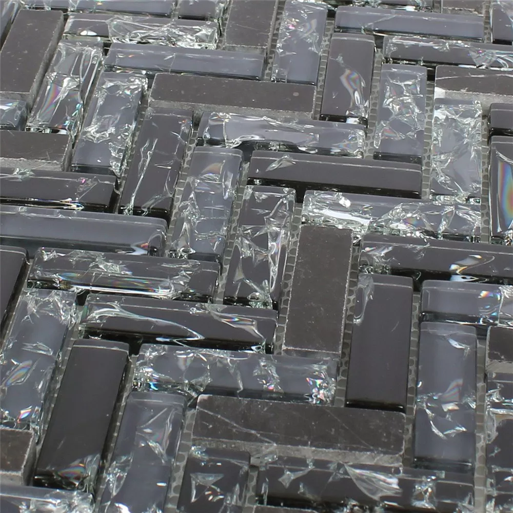 Muster Glas Naturstein Wand Mosaikfliesen Malawi Schwarz Fischgrät