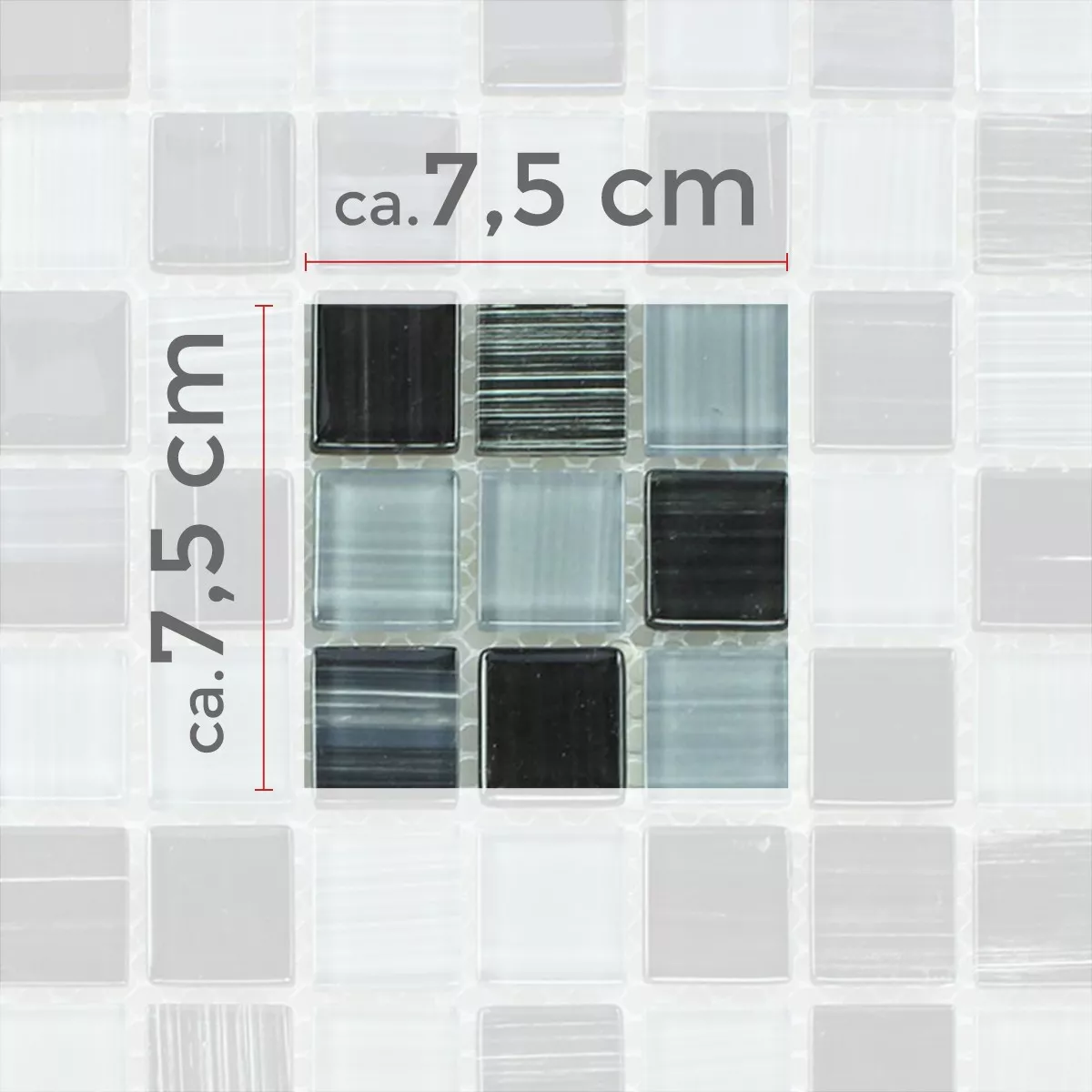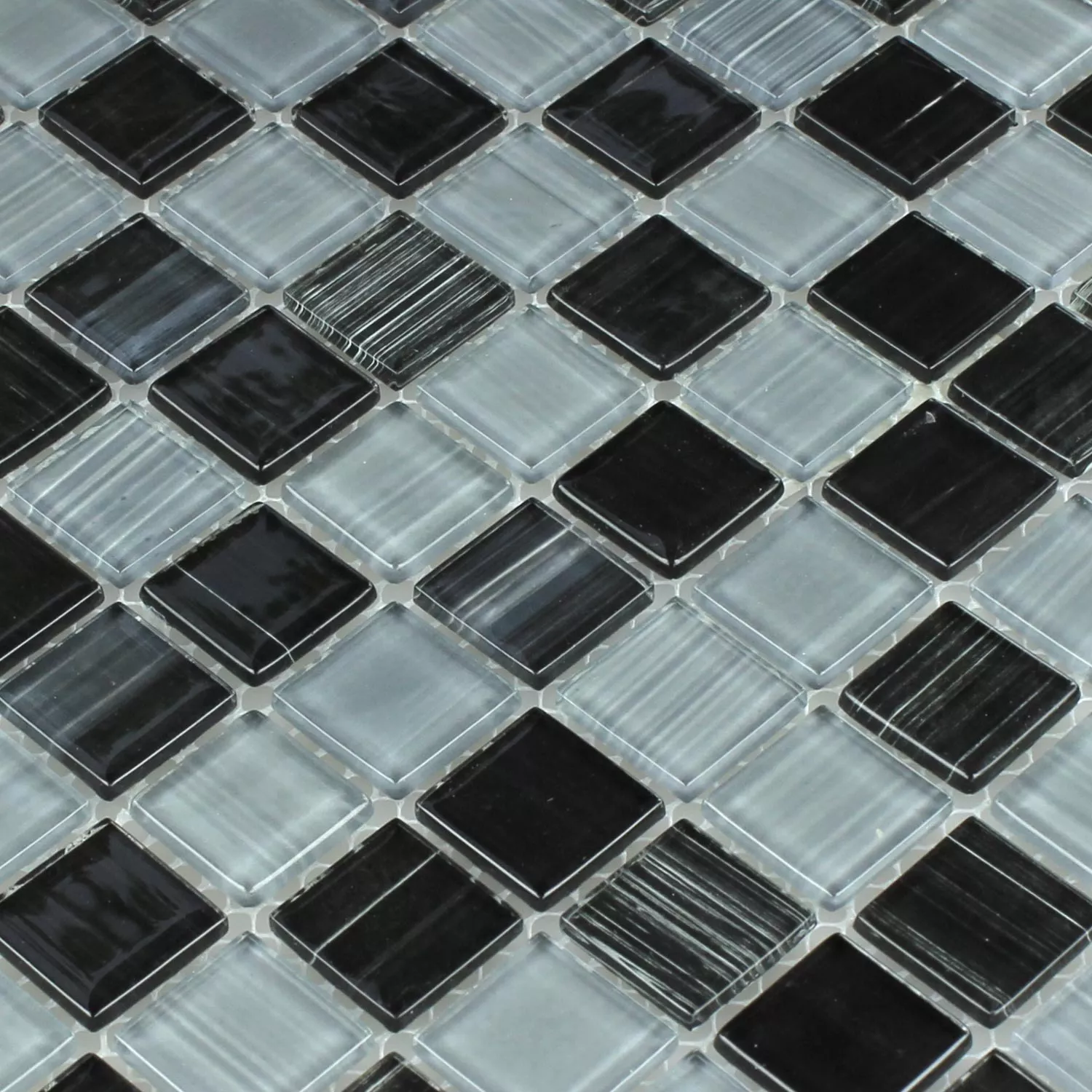 Muster Glasmosaik Fliesen Lafayette Schwarz Grau Gestreift