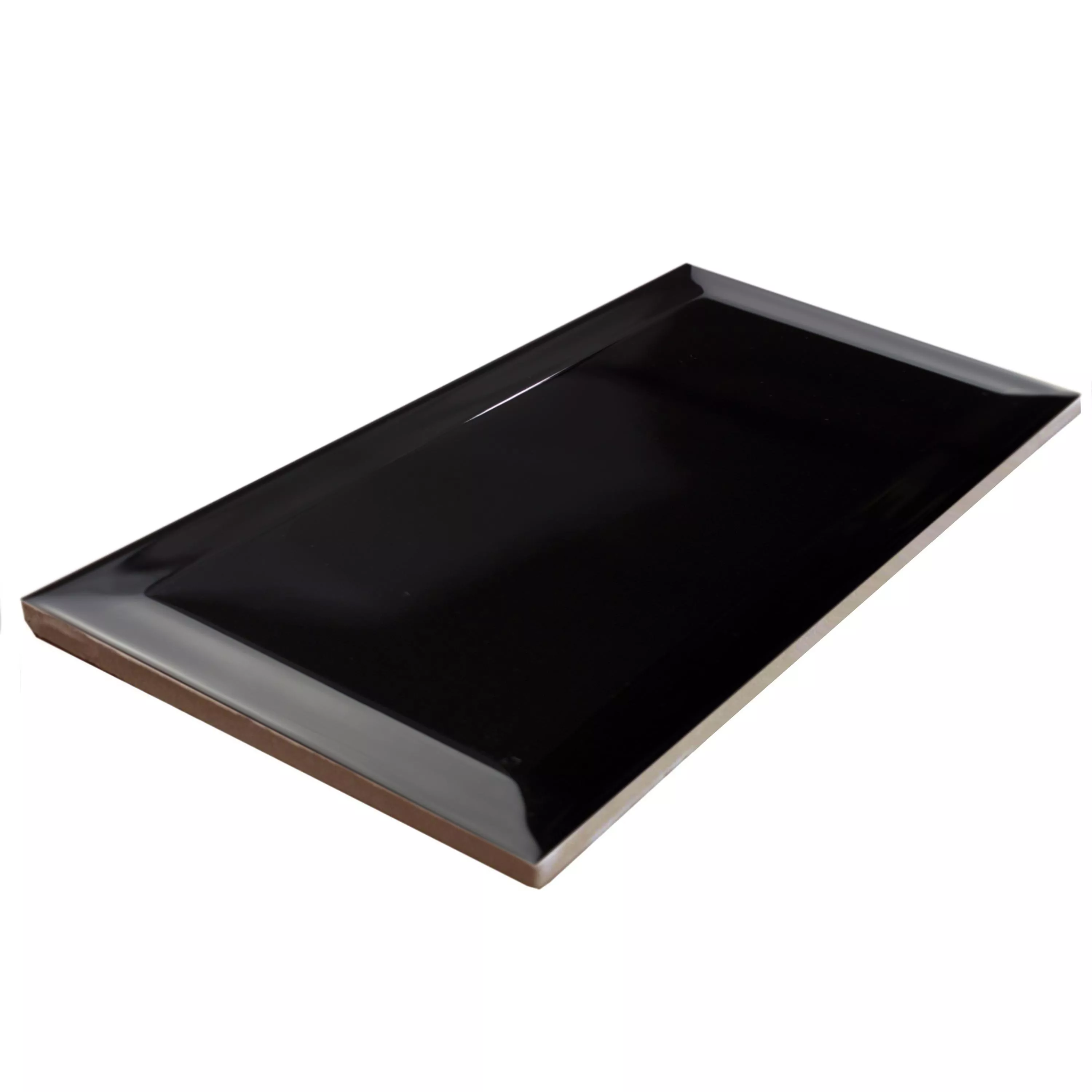 Muster Metro Wandfliesen Brasilia Facette 7,5x15x0,7cm Negro