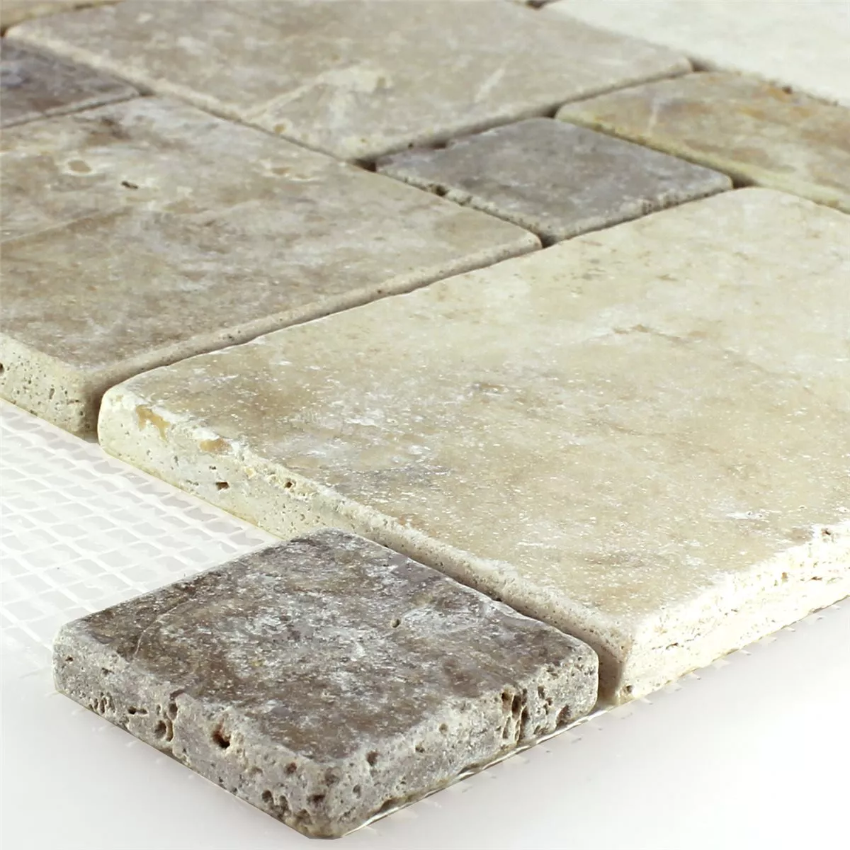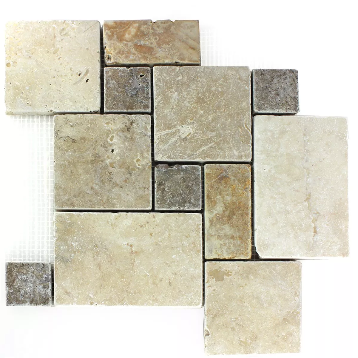Muster Naturstein Travertin Mosaikfliese Römischer Verband Deniz Braun Beige