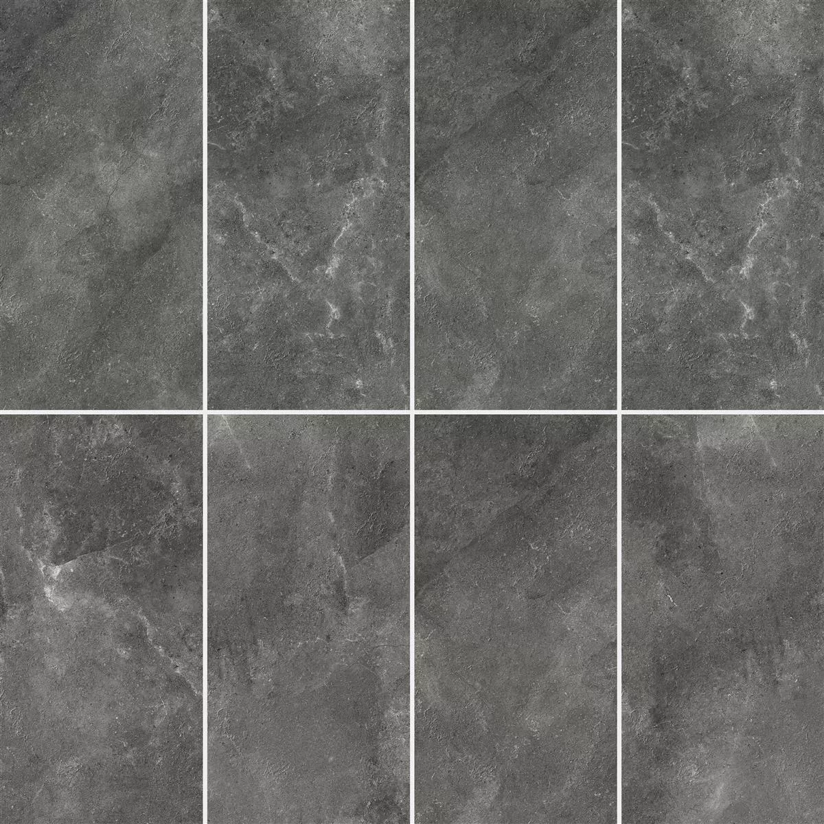 Muster von Bodenfliese Bangui Steinoptik Dunkelgrau 30x60cm