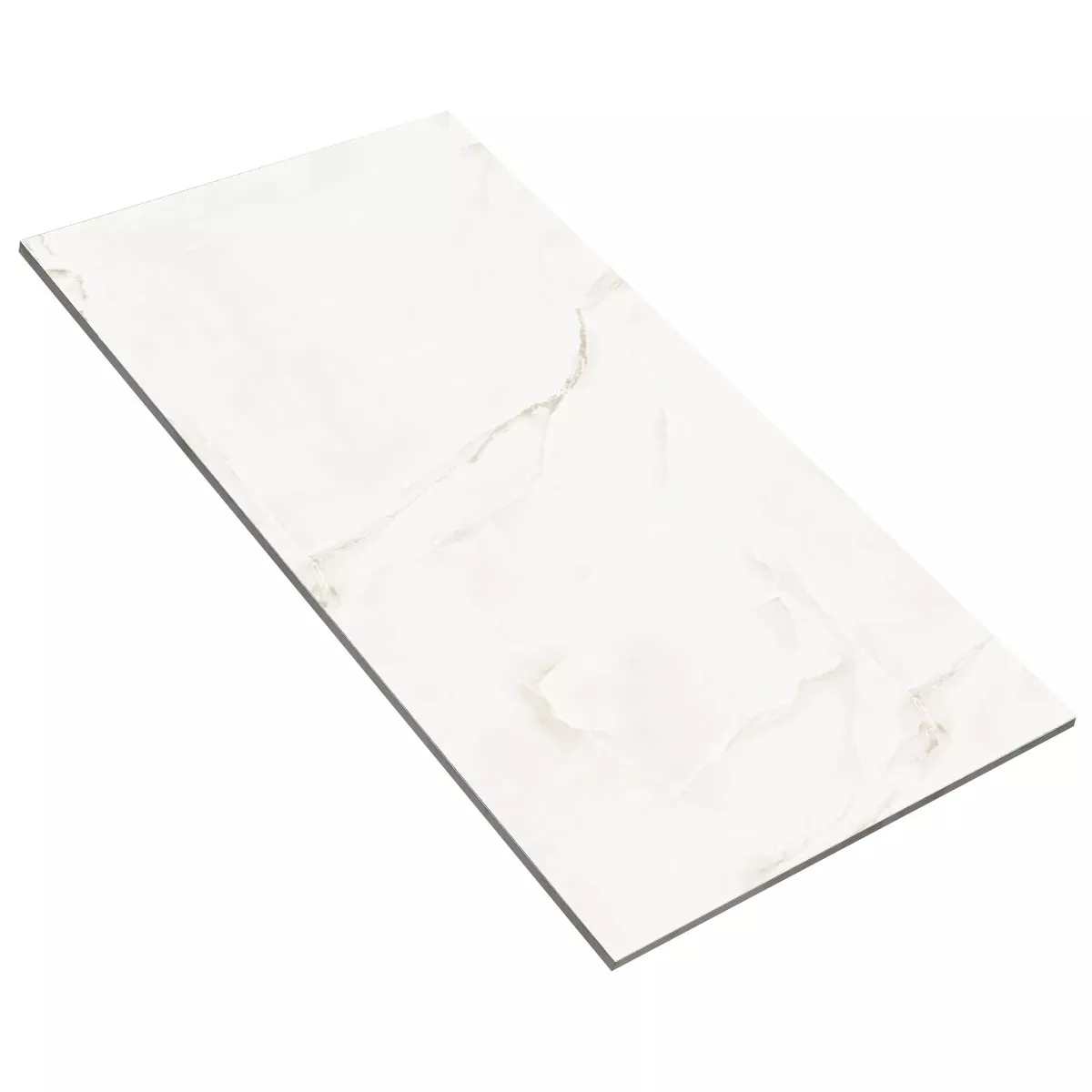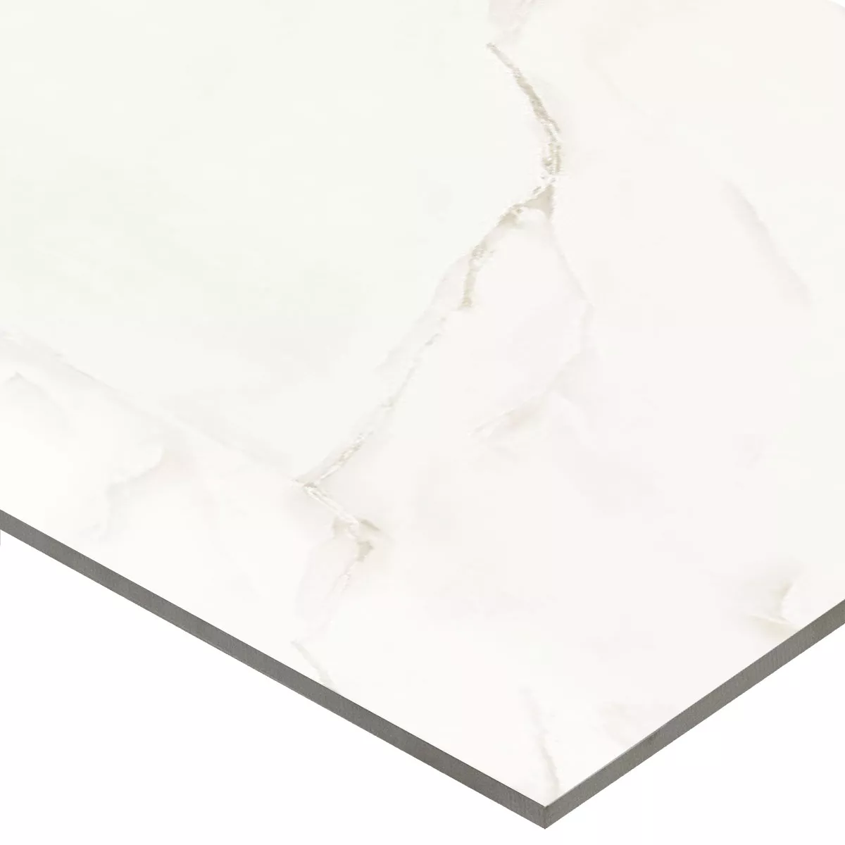 Muster von Bodenfliesen Konza Marmoroptik Poliert Glänzend Weiß 60x120cm