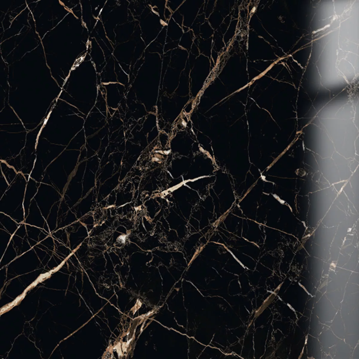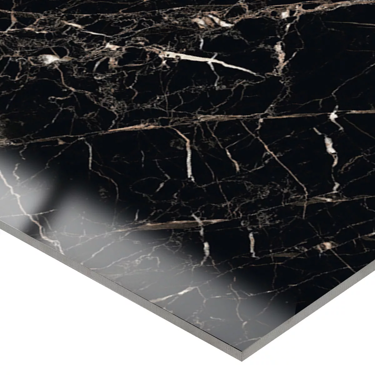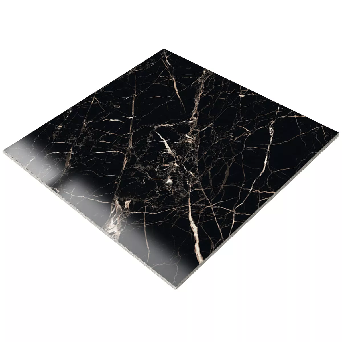 Muster von Bodenfliesen Trento Marmoroptik Schwarz Gold Poliert Glänzend 60x60cm