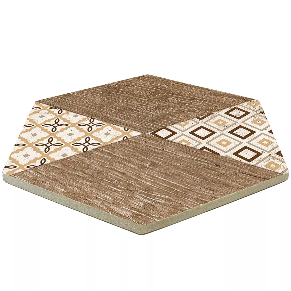 Muster von Feinsteinzeug Fliesen Isfahan Hexagon Beige 22,5 x 25,9cm
