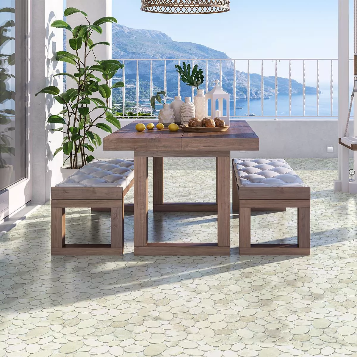 Jede Fliese und jedes Mosaik haben aufgrund individueller Materialeigenschaften und Anwendungsbedingungen unterschiedliche Anforderungen an das Zuschneiden, Verlegen und Verarbeiten. Fragen Sie einen örtlichen Experten für das korrekte und sichere Verlegen Ihrer Mosaike oder Fliesen. Wir haften nicht für unsachgemäßen Gebrauch und fehlerhafte Verarbeitung von Baumaterialien.