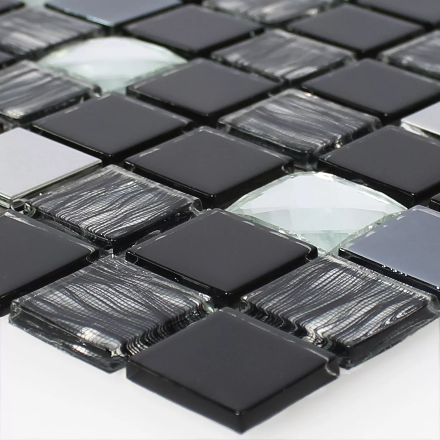 Muster von Glas Edelstahl Mosaik Amasya Selbstklebend Schwarz Silber