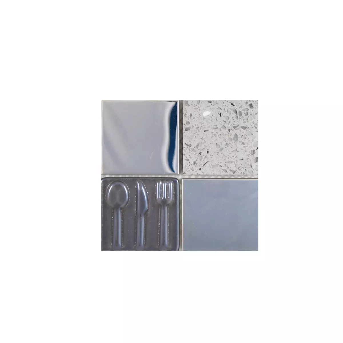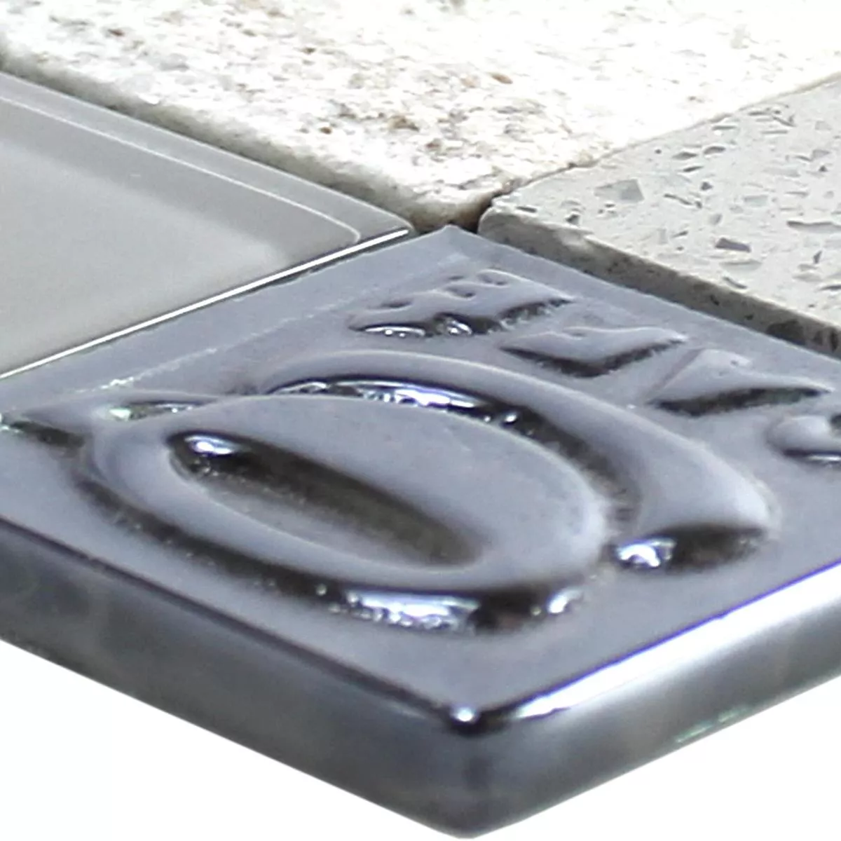 Muster von Glas Edelstahl Naturstein Mosaikfliesen Emporia Grau Silber