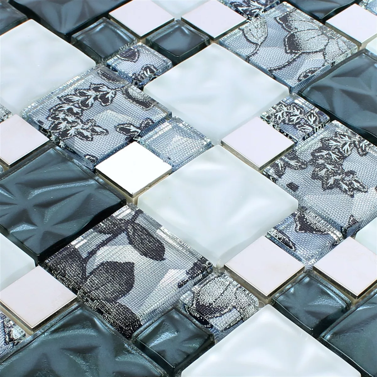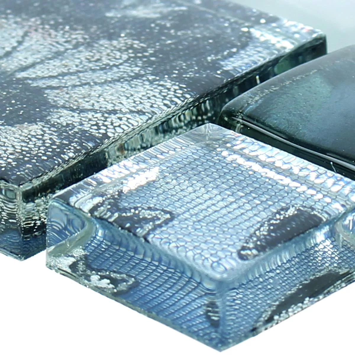 Muster von Glas Metall Edelstahl Mosaikfliesen Zadar Grau Blau