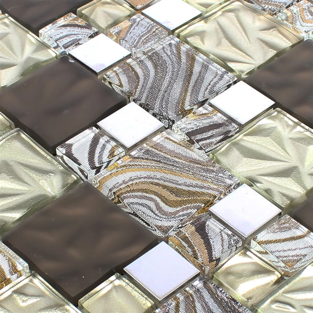 Muster von Glas Metall Edelstahl Mosaikfliesen Zadar Beige Braun