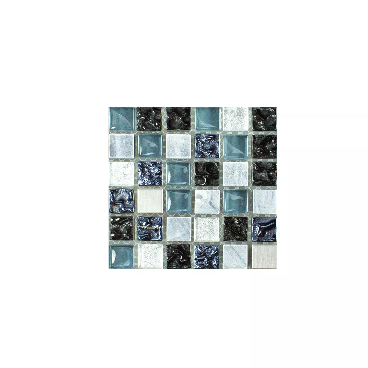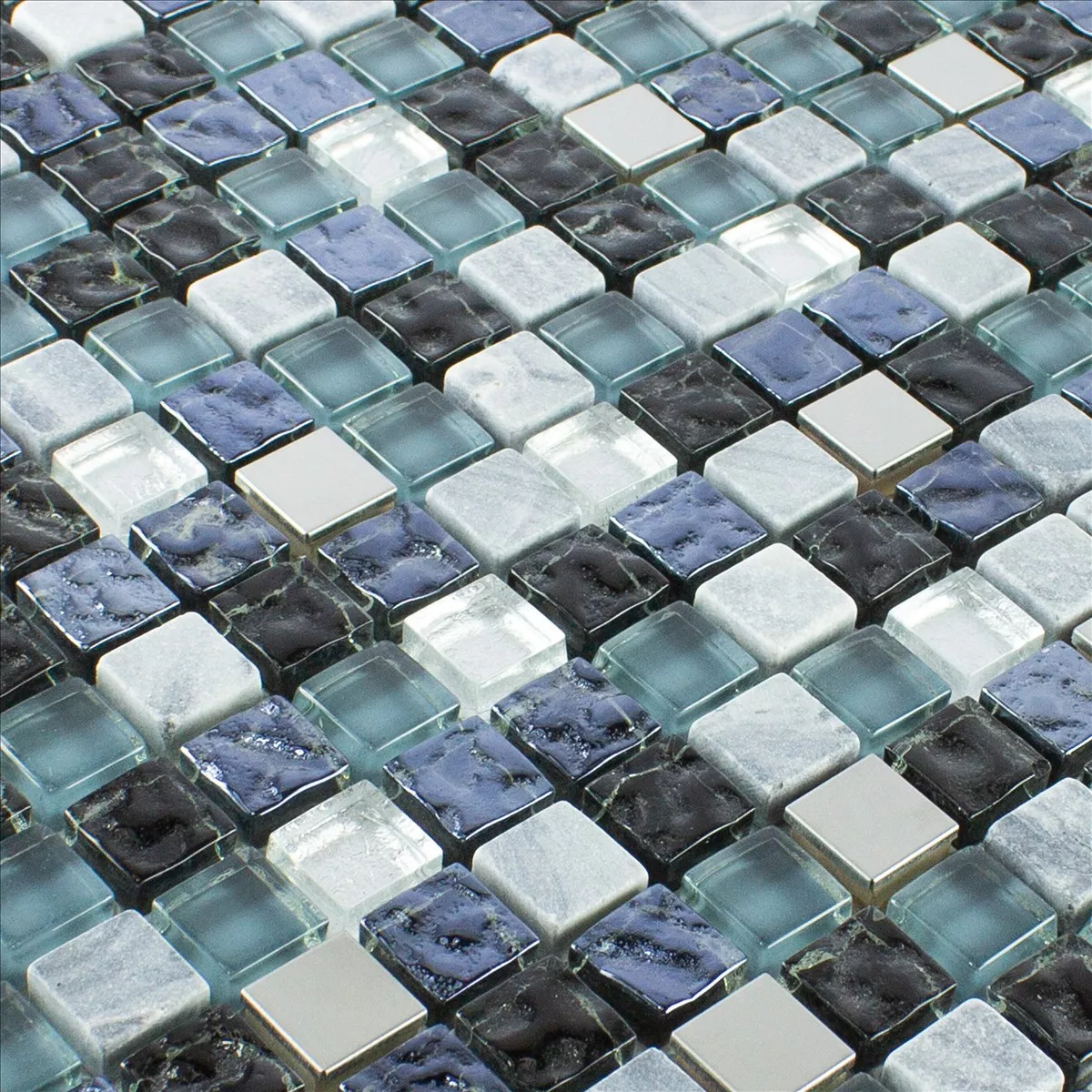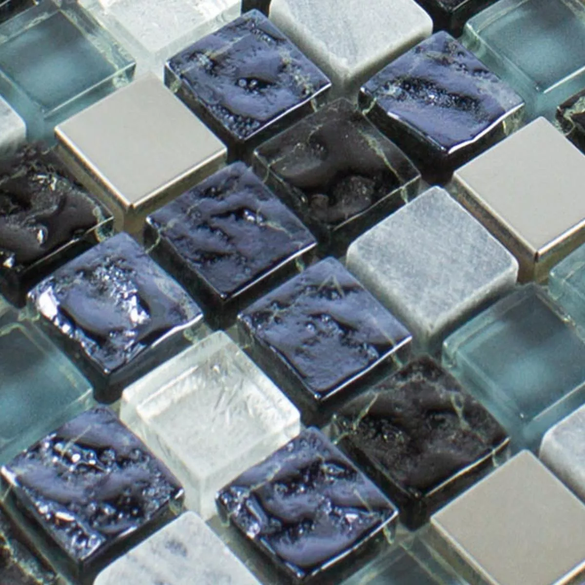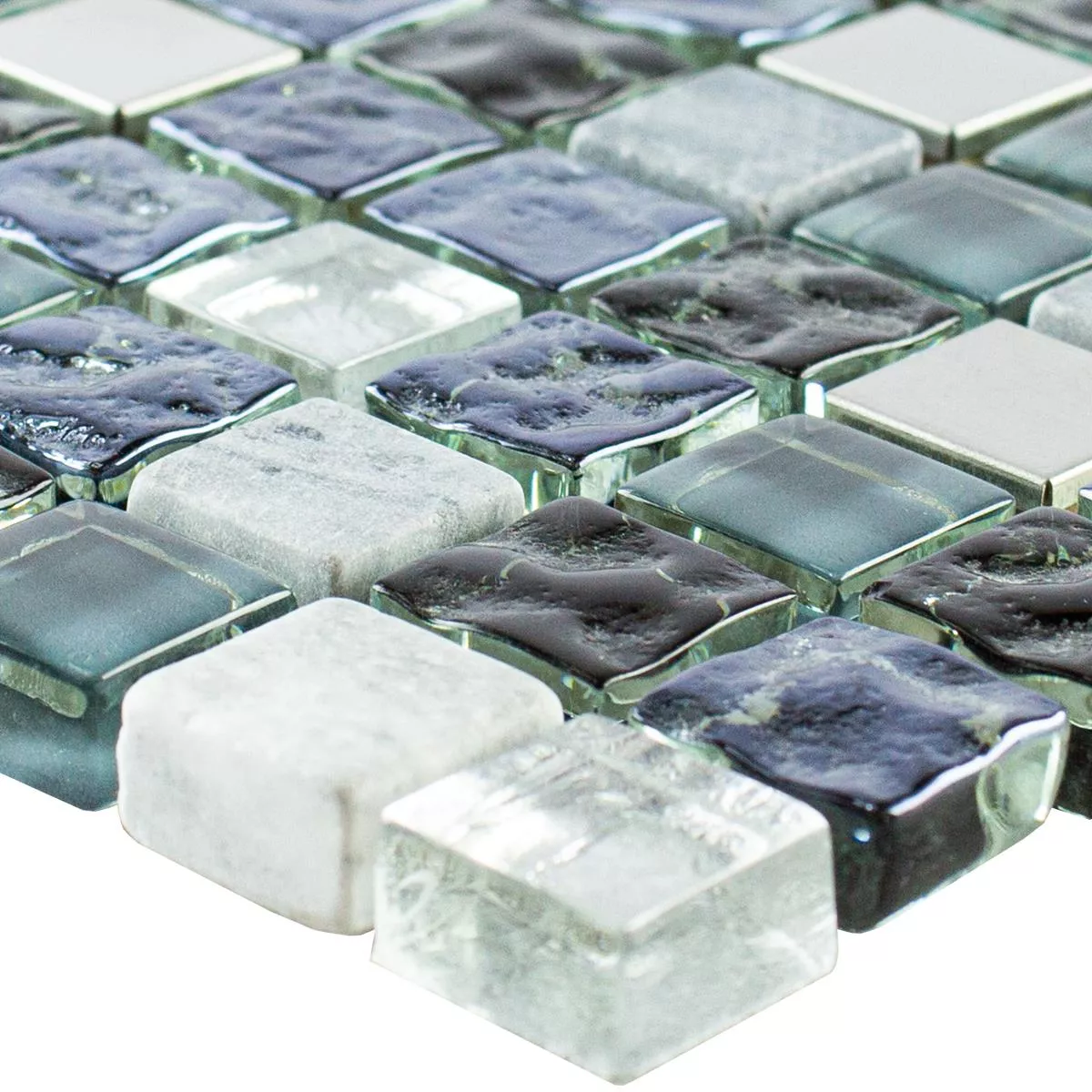 Muster von Glas Naturstein Edelstahl Mosaik Dysart Grau Blau Silber