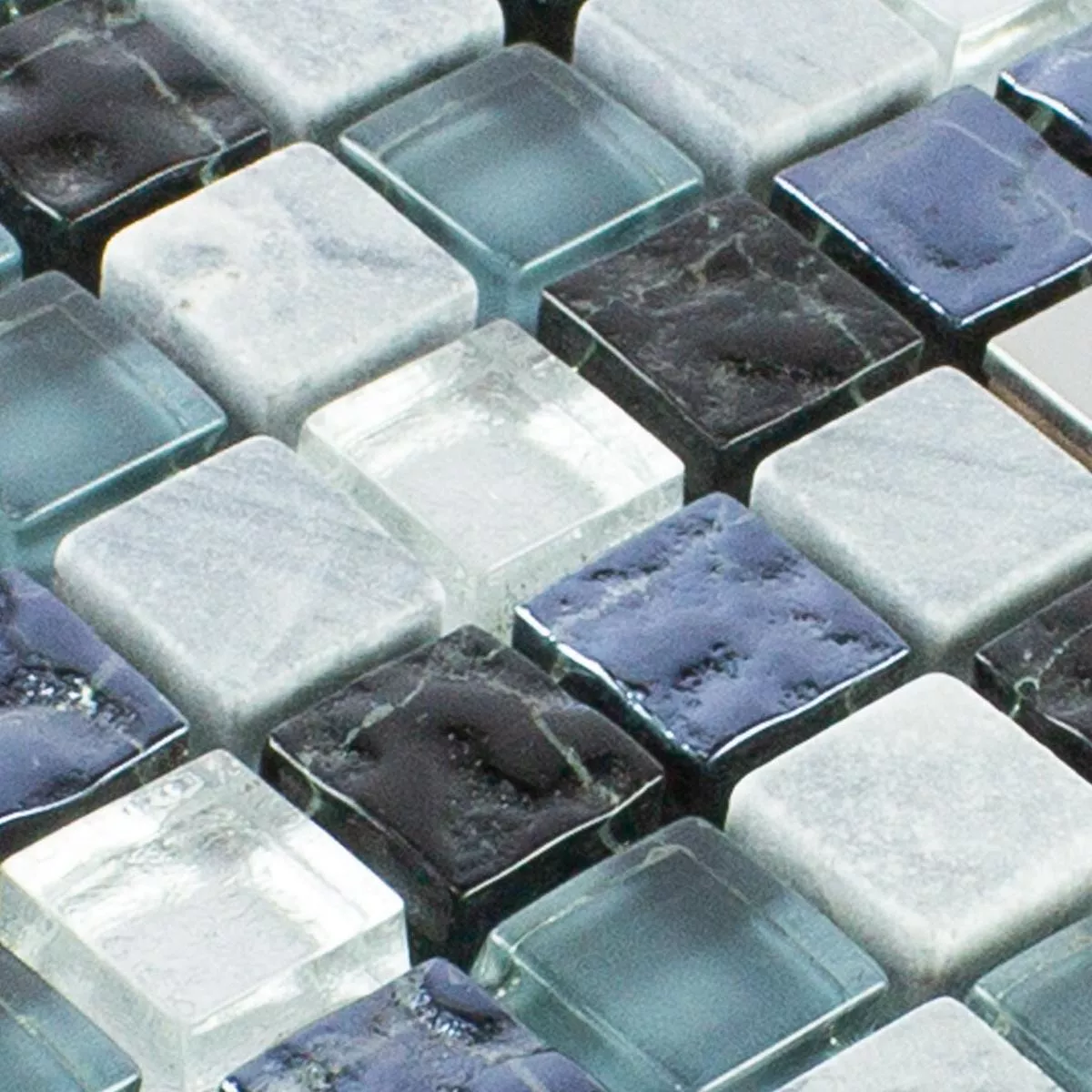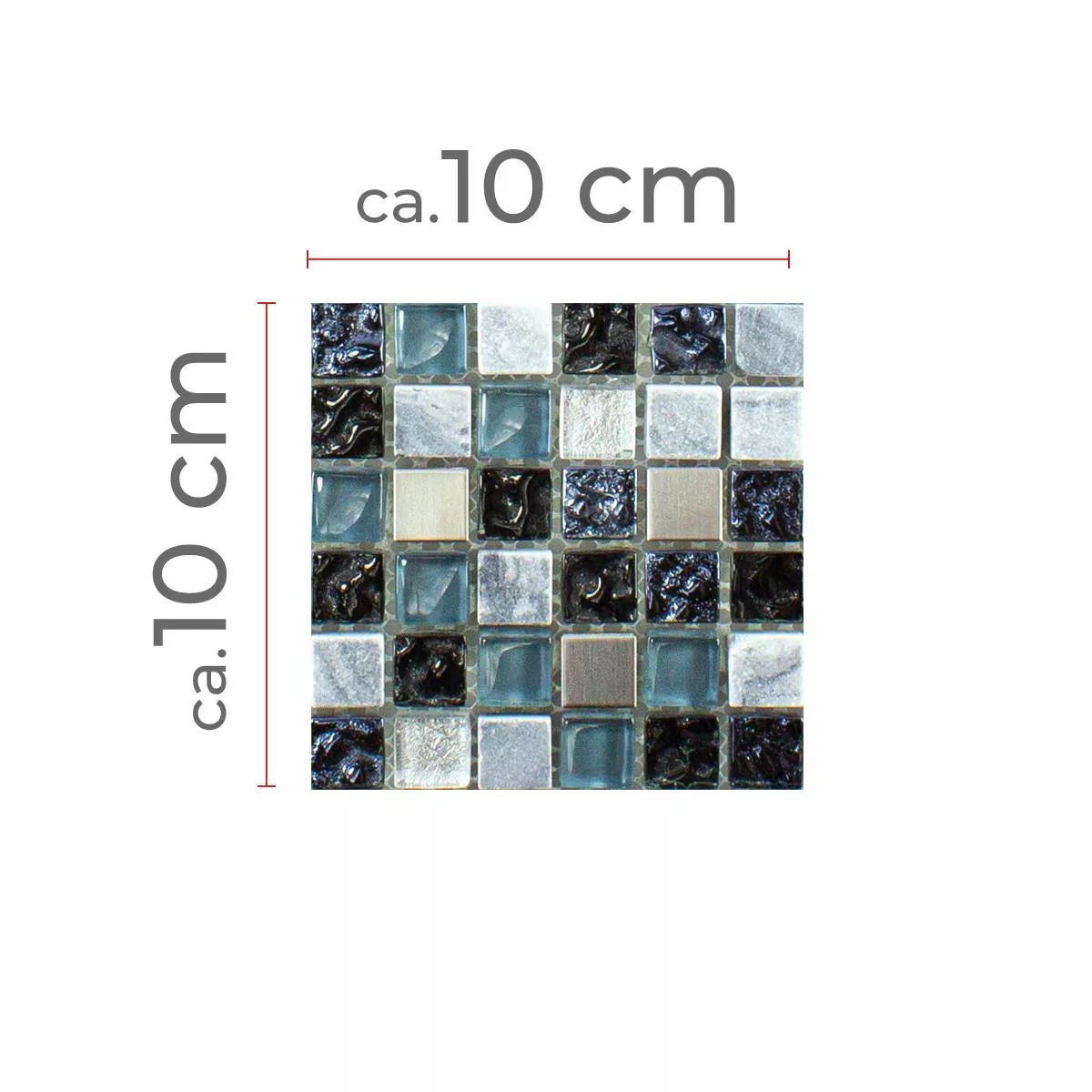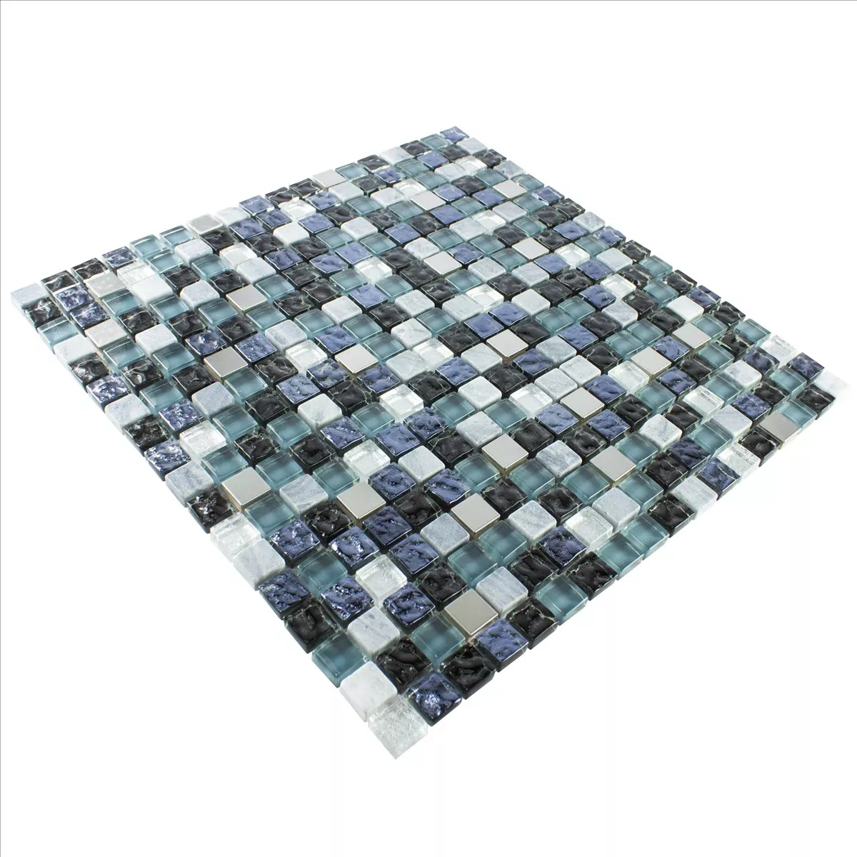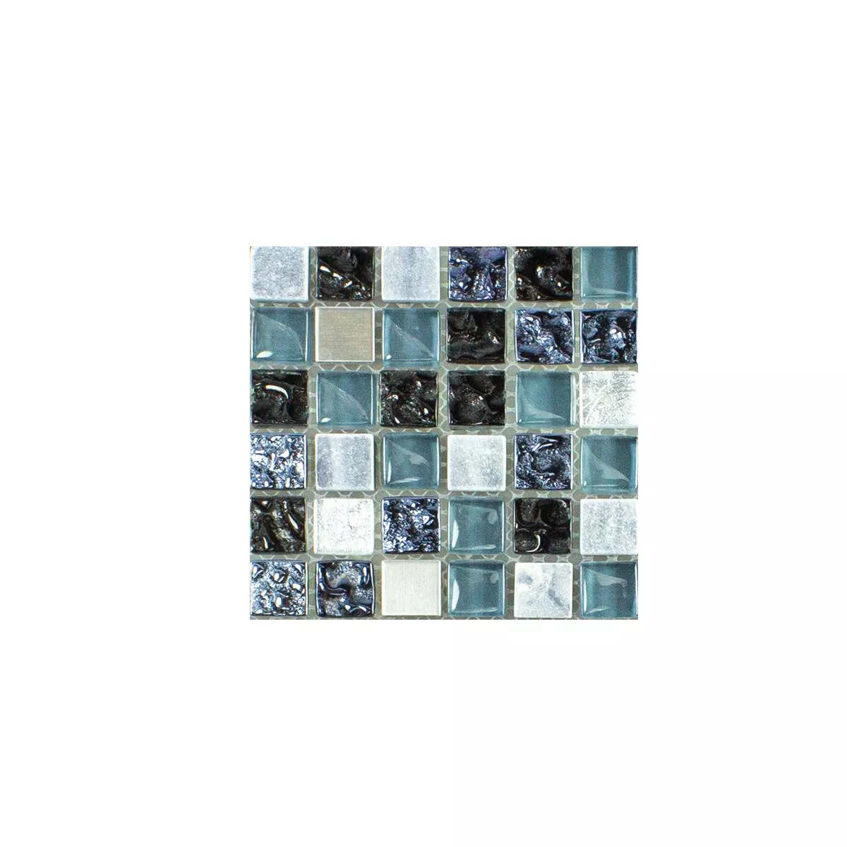 Muster von Glas Naturstein Edelstahl Mosaik Dysart Grau Blau Silber