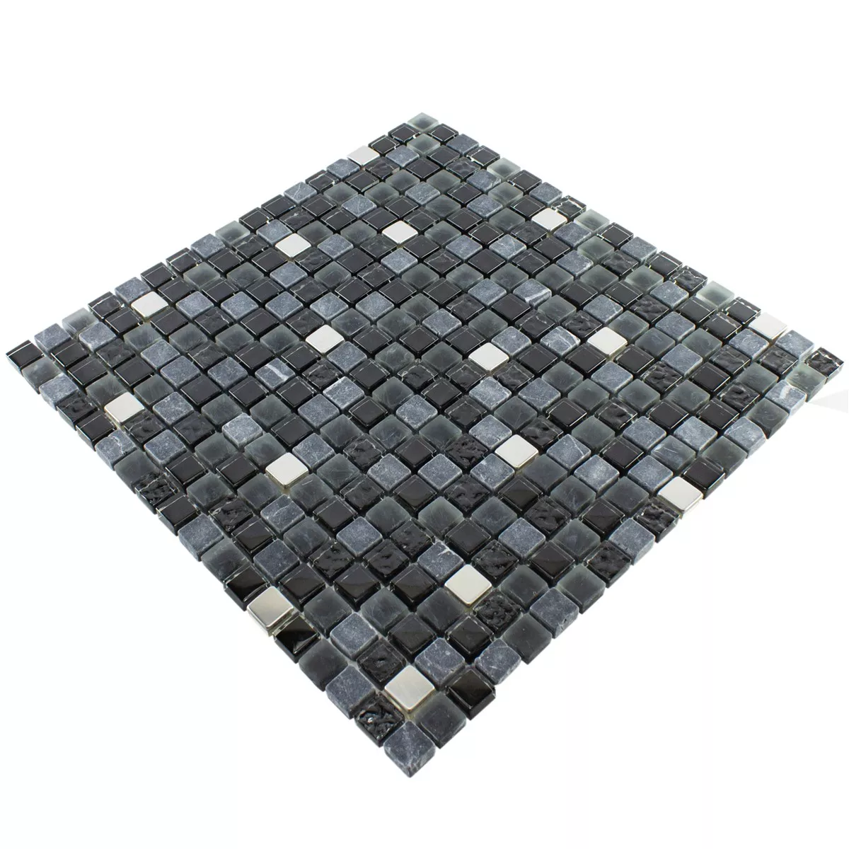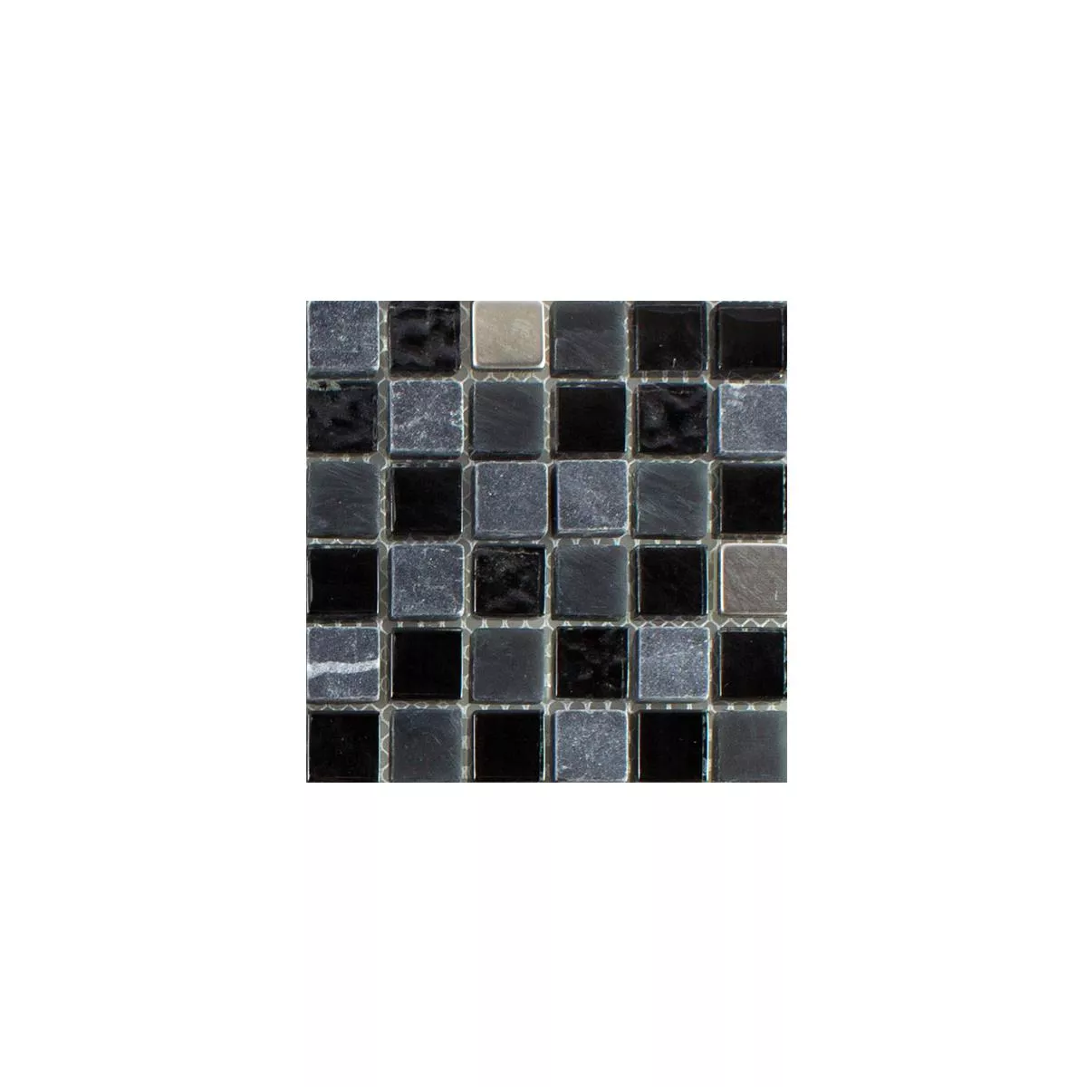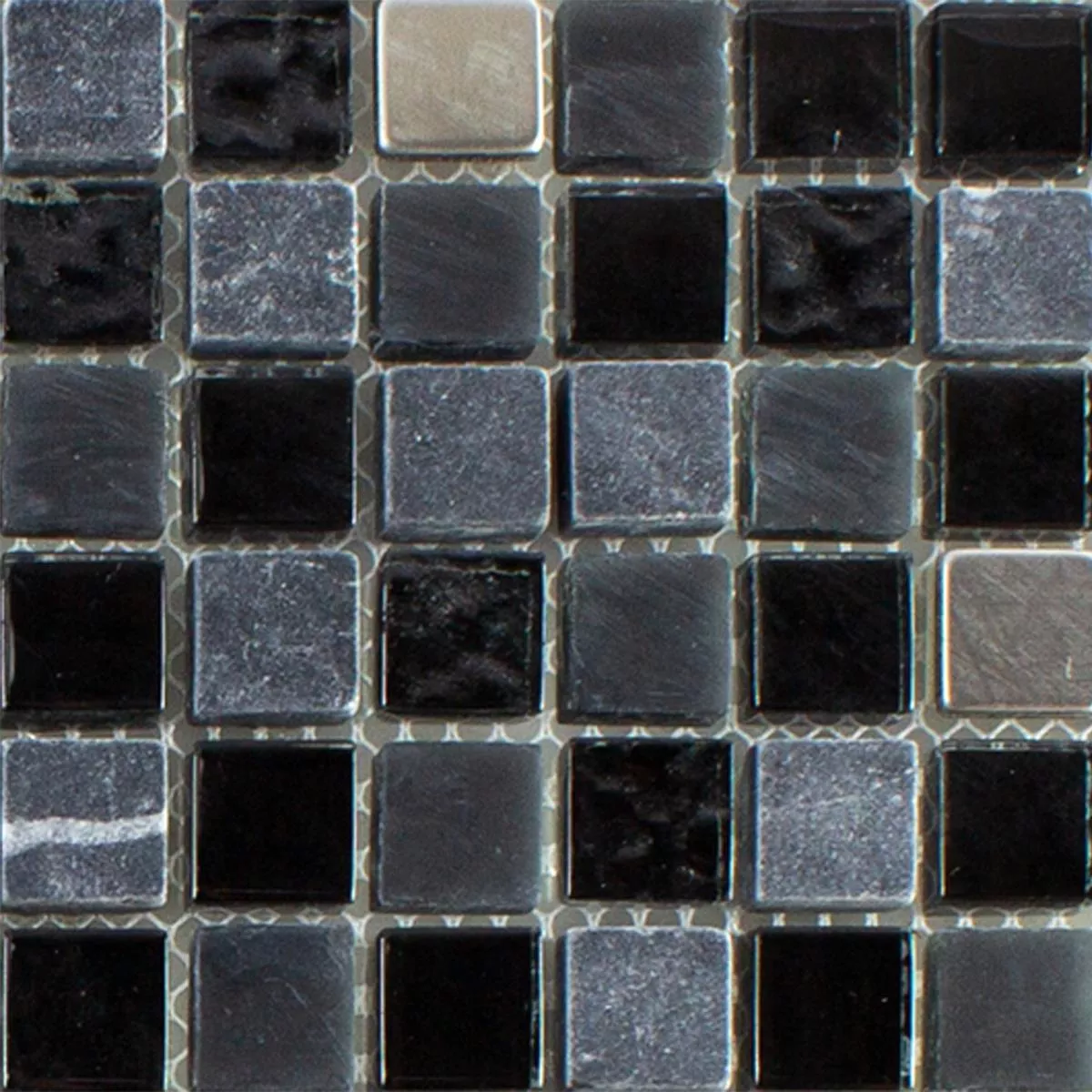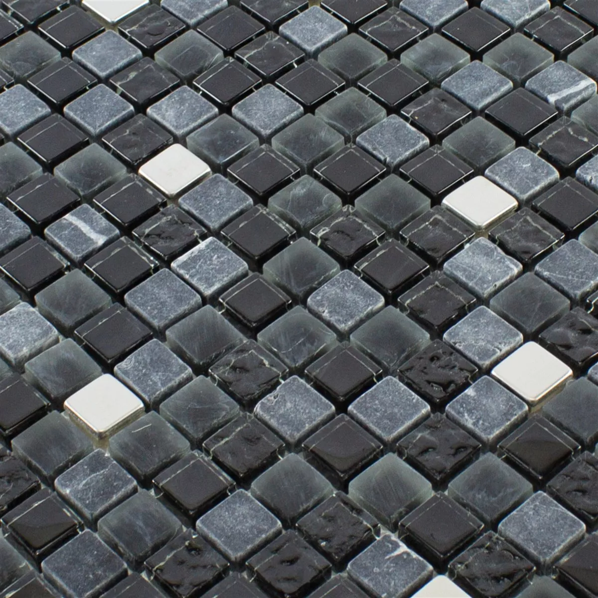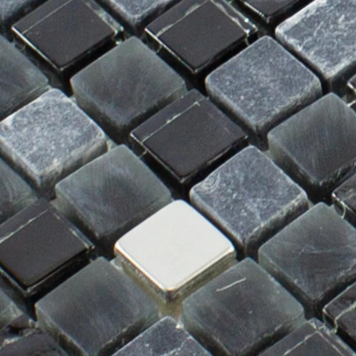 Muster von Glas Naturstein Edelstahl Mosaik Kosovo Schwarz Silber
