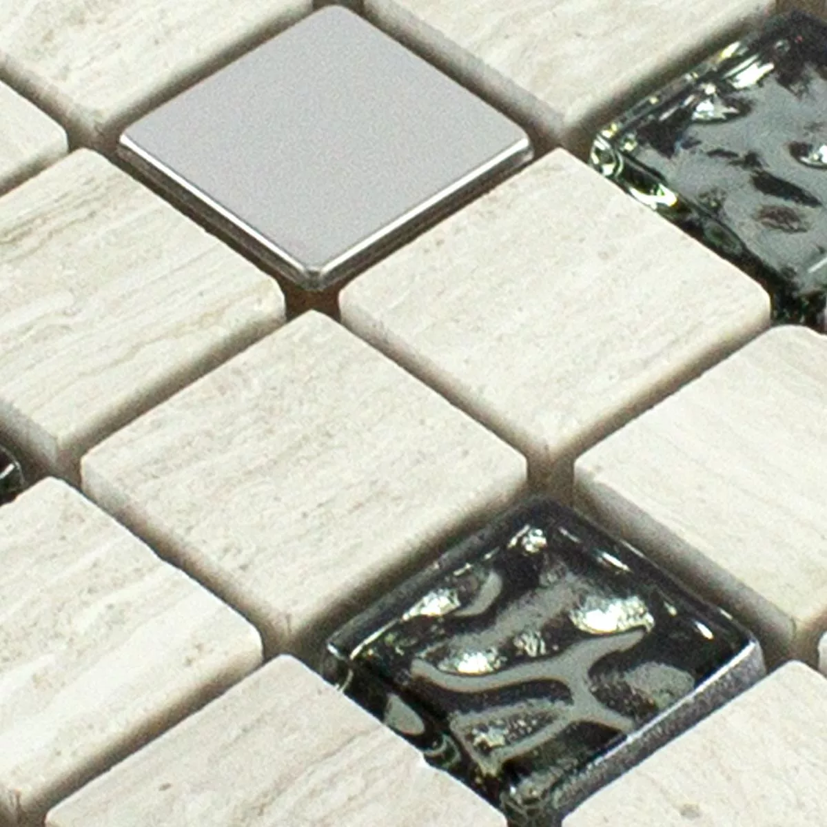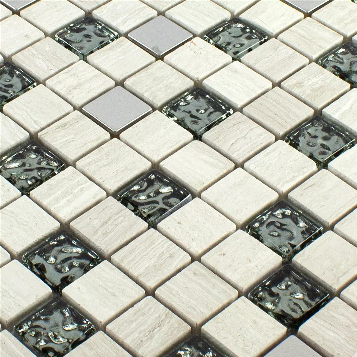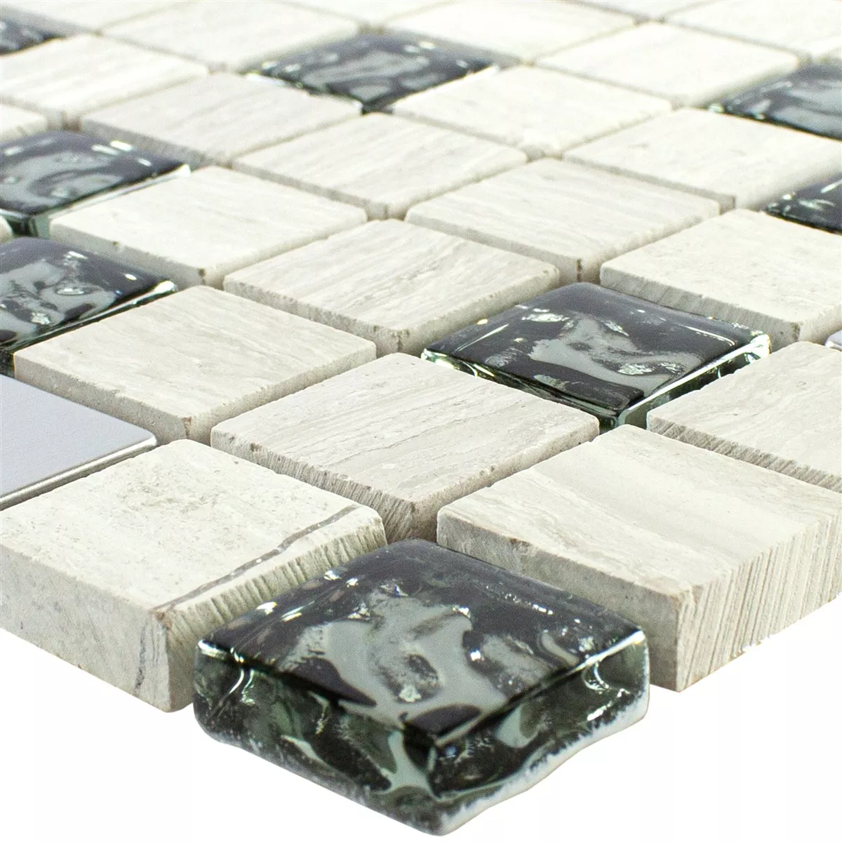 Muster von Glas Naturstein Metall Mosaikfliese Fulda Grau Silber
